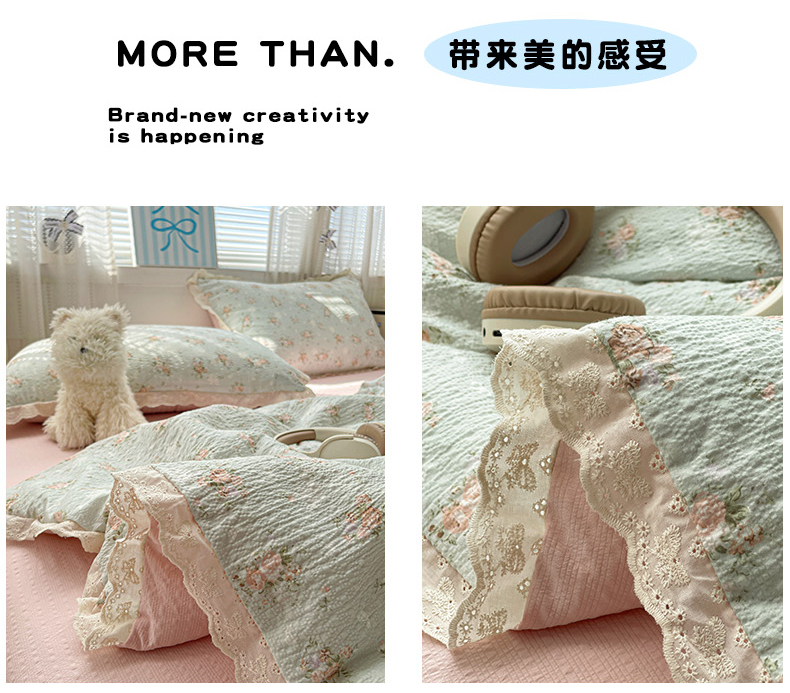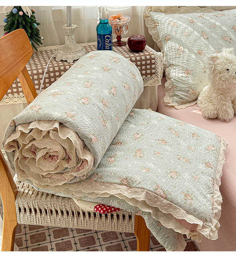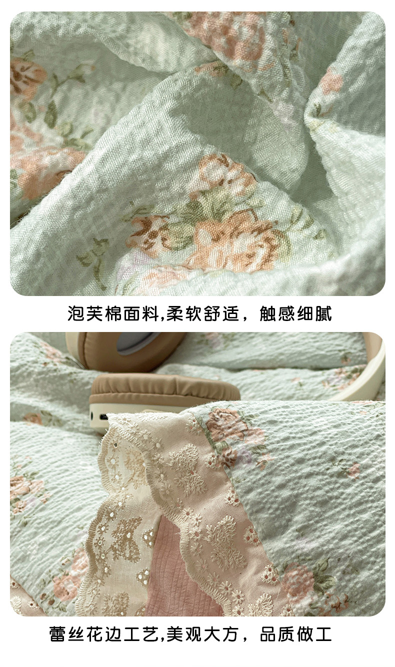 优承佳生活馆 2026新款超柔高克重泡芙纱蝴蝶结全棉花边夏被套件单夏被 七里香