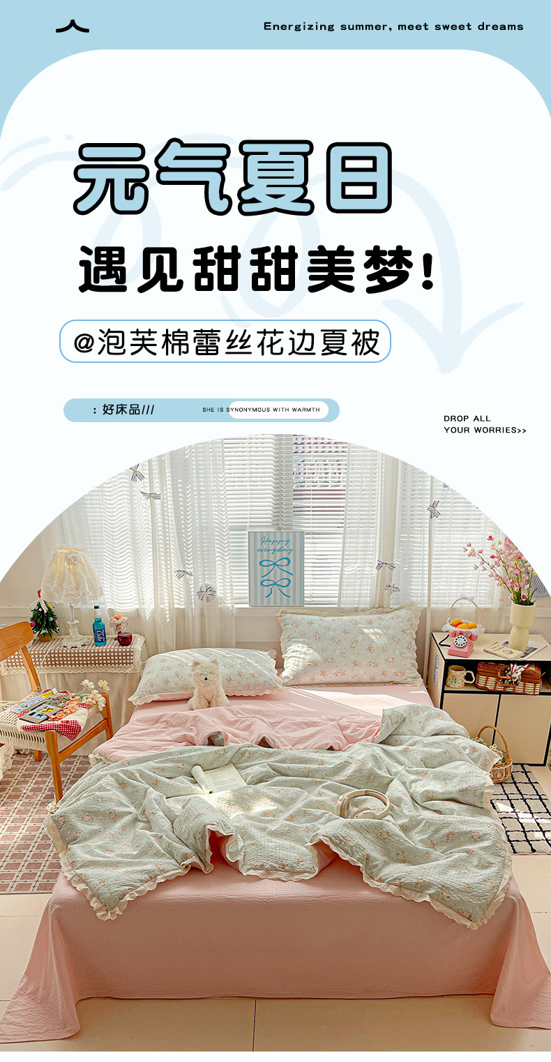 (总)优承佳生活馆 2026新款超柔高克重泡芙纱蝴蝶结全棉花边夏被套件单夏被,爱心条格,暗香疏影,芬芳馥郁,格子蝴蝶结,花清梦,花漾小窝,花屿兔,简夏,满满,曼塔庄园,木马彩虹,七里香,浅陌,蔷薇絮,甜昔花语,童趣乐园,星星木马,摇摇星人,枝蔓,紫萱,棕韵梦境,组合图