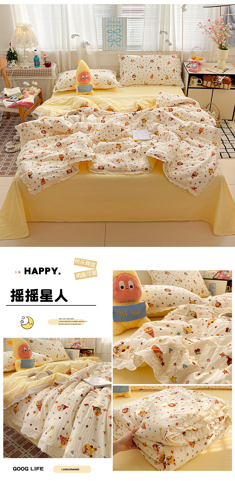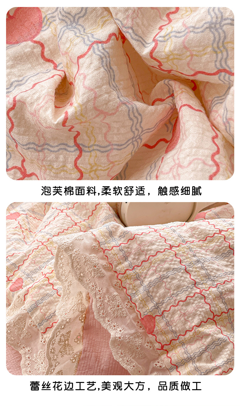 (总)优承佳生活馆 2026新款超柔高克重泡芙纱蝴蝶结全棉花边夏被套件单夏被,爱心条格,暗香疏影,芬芳馥郁,格子蝴蝶结,花清梦,花漾小窝,花屿兔,简夏,满满,曼塔庄园,木马彩虹,七里香,浅陌,蔷薇絮,甜昔花语,童趣乐园,星星木马,摇摇星人,枝蔓,紫萱,棕韵梦境,组合图