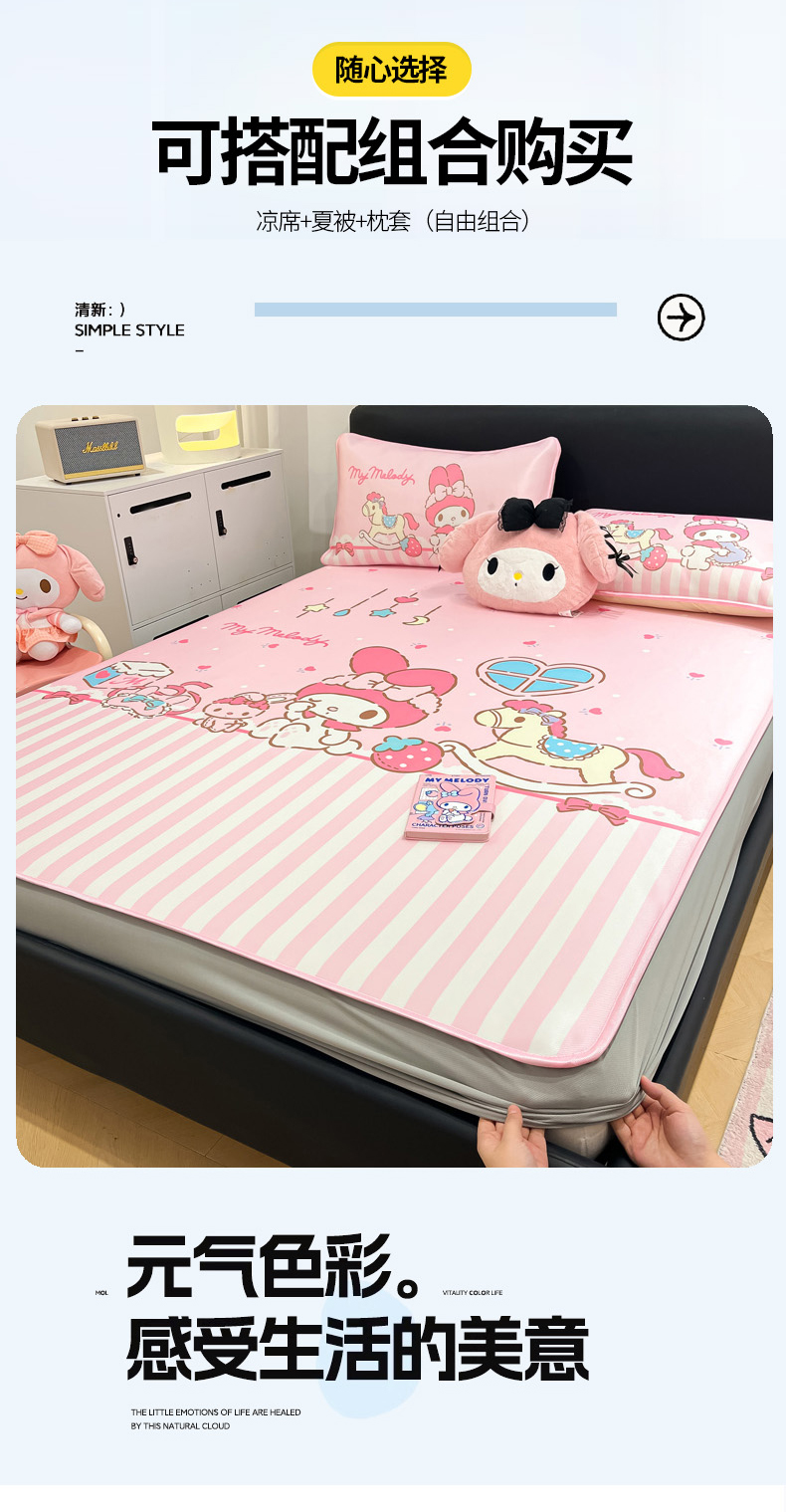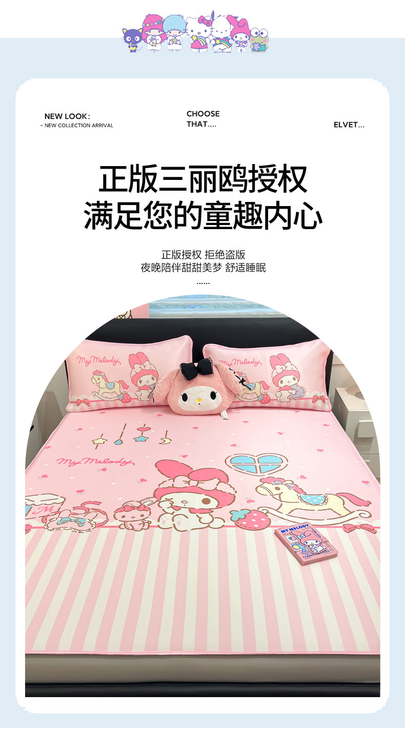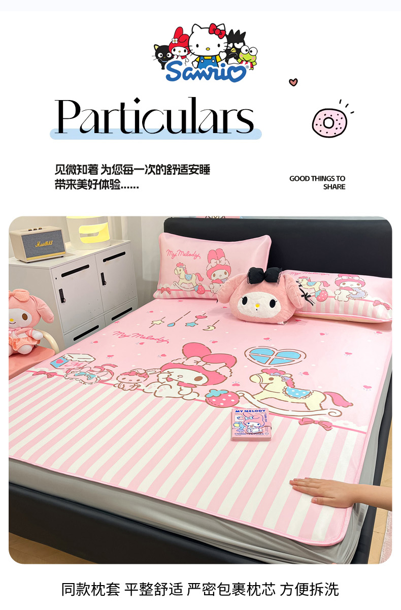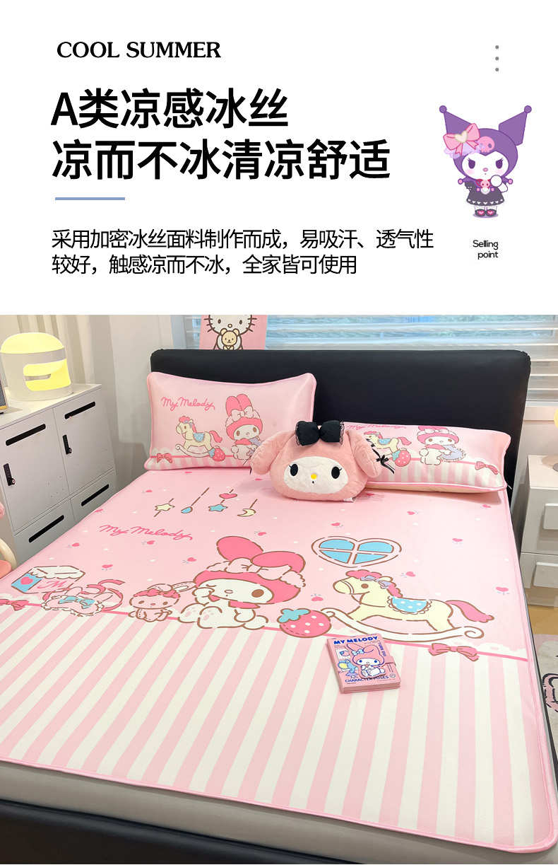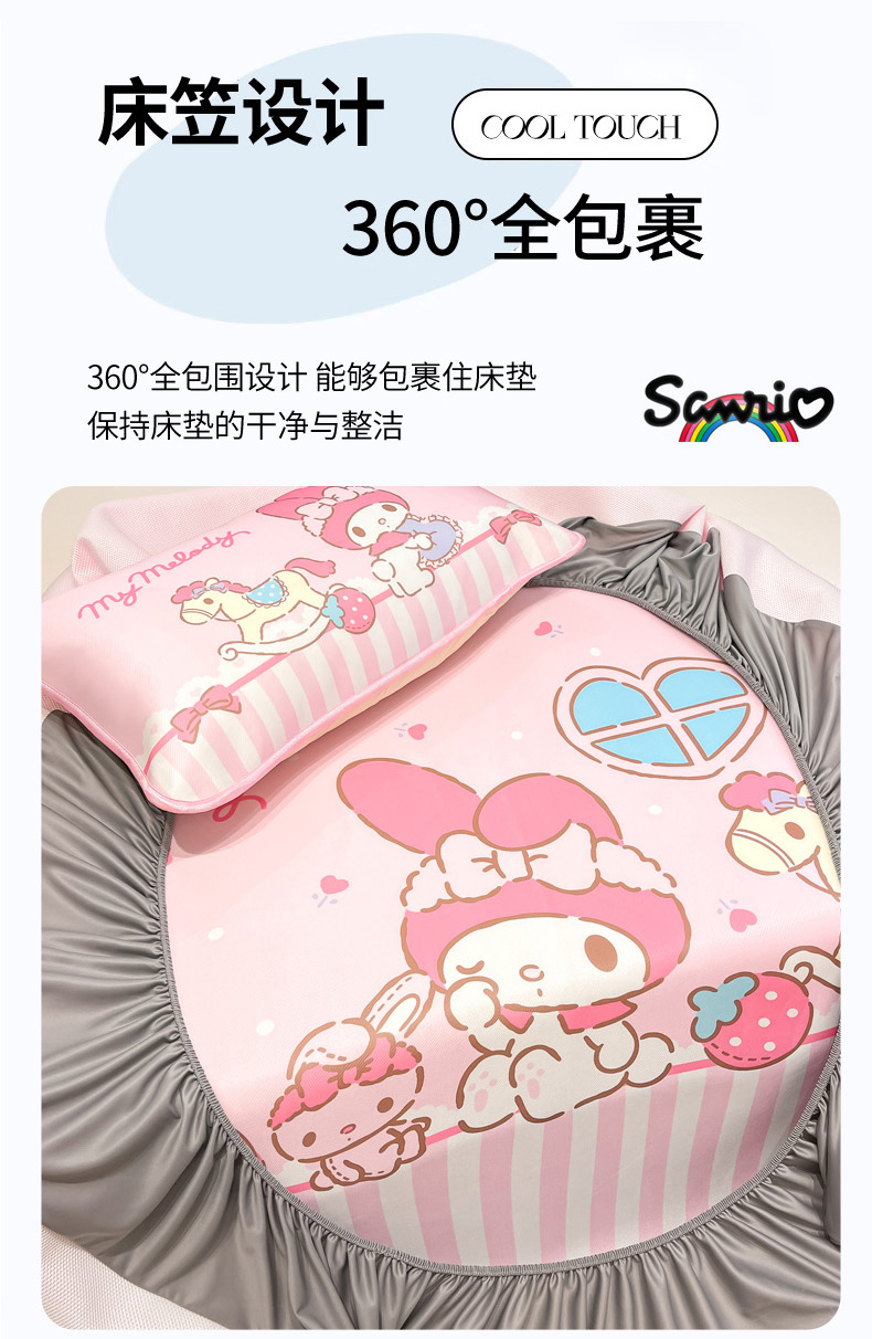 当前位置: 91家纺网 > 商品网购 > 床上用品 > 凉席 > 冰丝席 > 暮思家居 2026新款正版授权A类大版数码印花三丽鸥1200D冰丝凉席可组合仿锦氨夏被 床笠款-条纹美乐蒂