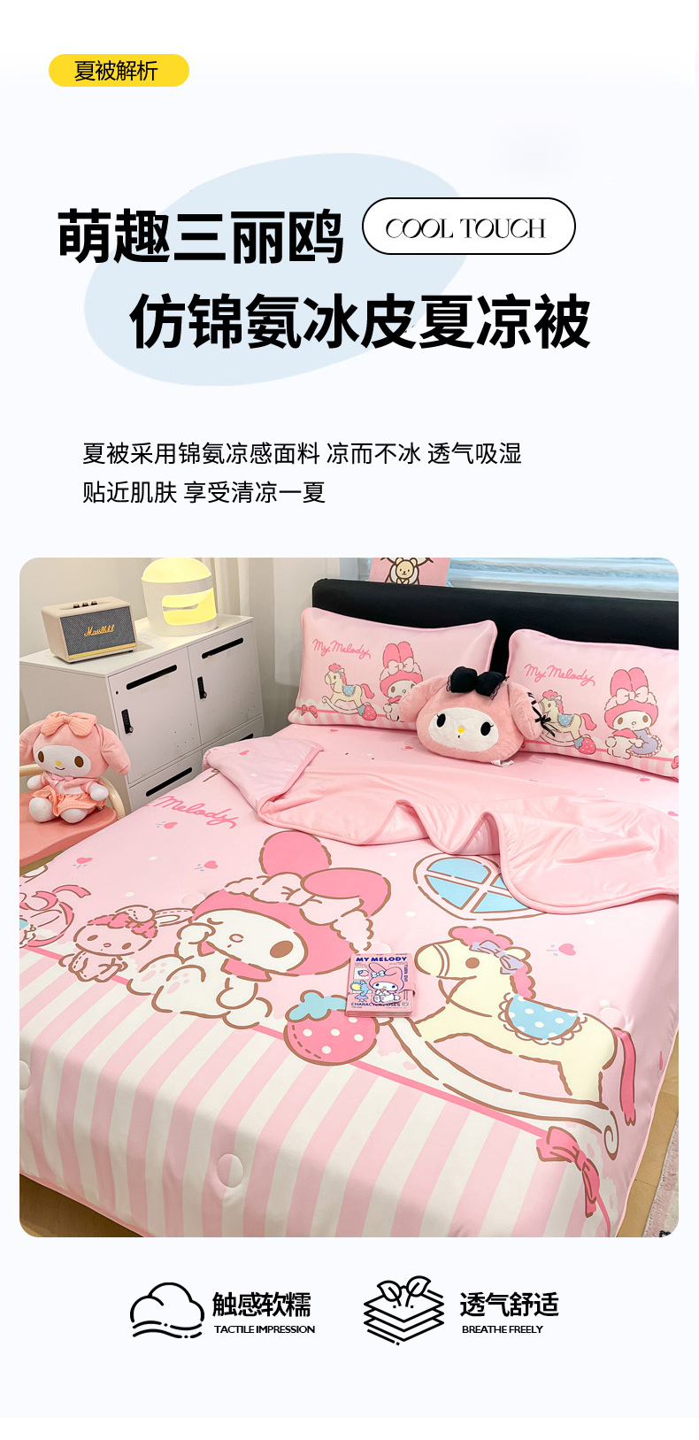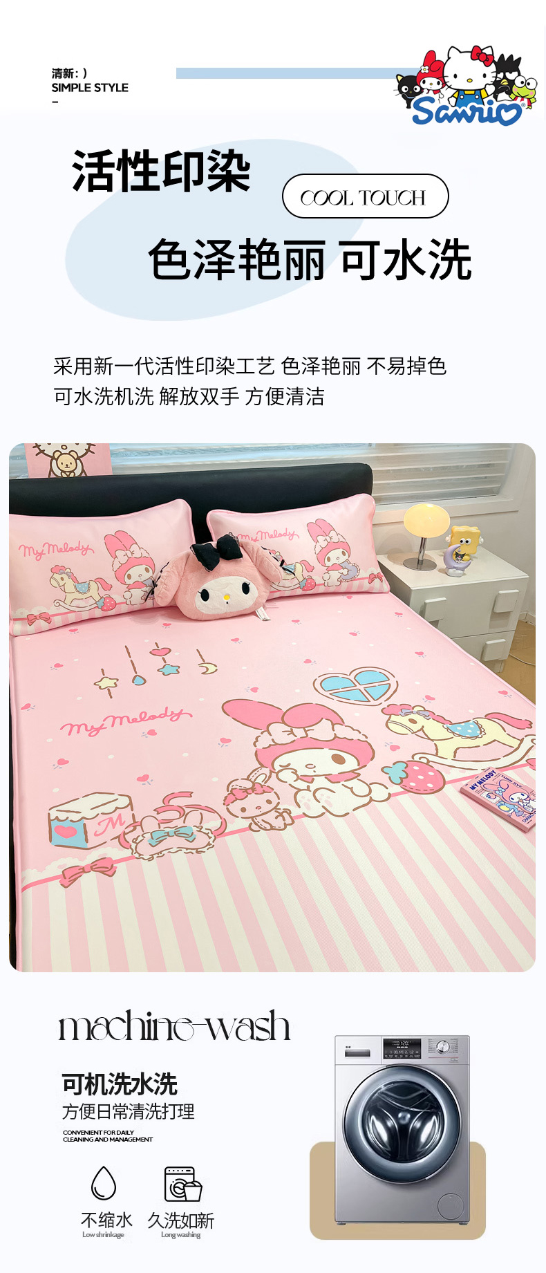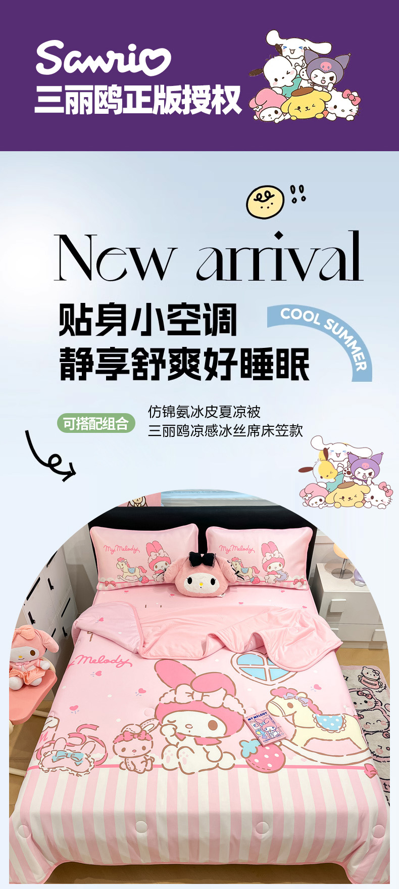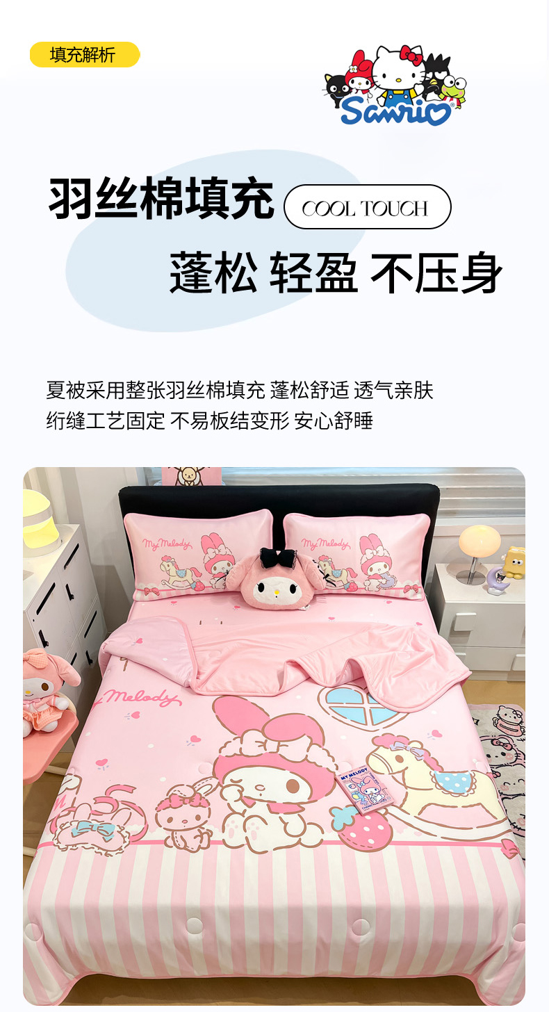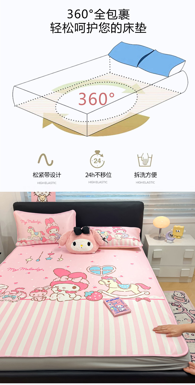 当前位置: 91家纺网 > 商品网购 > 床上用品 > 凉席 > 冰丝席 > 暮思家居 2026新款正版授权A类大版数码印花三丽鸥1200D冰丝凉席可组合仿锦氨夏被 床笠款-条纹美乐蒂