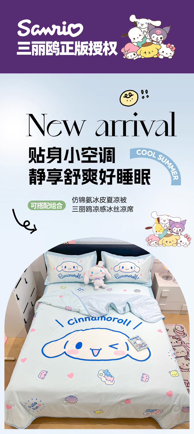 (总)暮思家居 2026新款正版授权A类大版数码印花三丽鸥可组合仿锦氨夏被夏凉被空调被,草莓KT,甜筒KT,豹纹KT猫,草莓美乐蒂,蛋糕美乐蒂,格子KT,公主美乐蒂,蝴蝶结KT,花园美乐蒂,开心玉桂狗,快乐玉桂狗,美美KT,梦幻KT,梦想库洛米,奶油KT,甜蜜库洛米,条纹美乐蒂,晚安玉桂狗,相框美乐蒂,香水KT,小兔美乐蒂,小熊玉桂狗,幸福KT,幸福大耳狗,炫彩库洛米,云朵玉桂狗