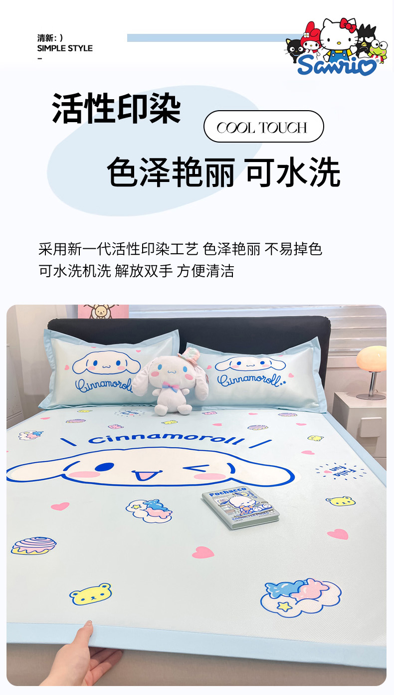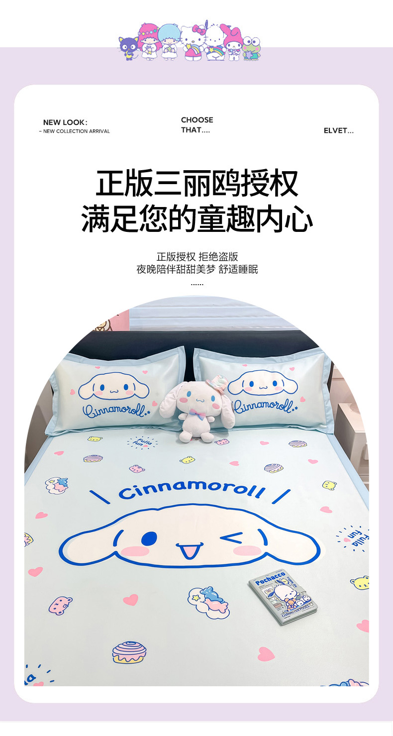 (总)暮思家居 2026新款三丽鸥正版授权数码印花A类可机洗1200D冰丝凉席三件套床笠款系列,床笠款-KT美乐蒂,床笠款-可爱KT,床笠款-巴库库洛米,床笠款-点点玉桂狗,床笠款-粉格KT,床笠款-公主KT,床笠款-乖巧KT,床笠款-蝴蝶结美乐蒂,床笠款-花花美乐蒂,床笠款-凯蒂乐园,床笠款-蓝格KT,床笠款-蓝色玉桂狗,床笠款-气球库洛米,床笠款-甜品玉桂狗,床笠款-甜甜库洛米,床笠款-甜筒KT,床笠款-洋娃娃美乐蒂,床笠款-云朵大耳狗