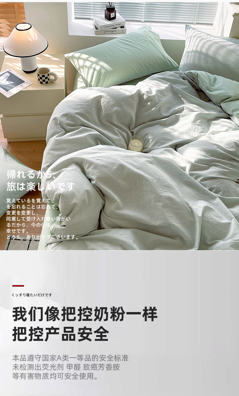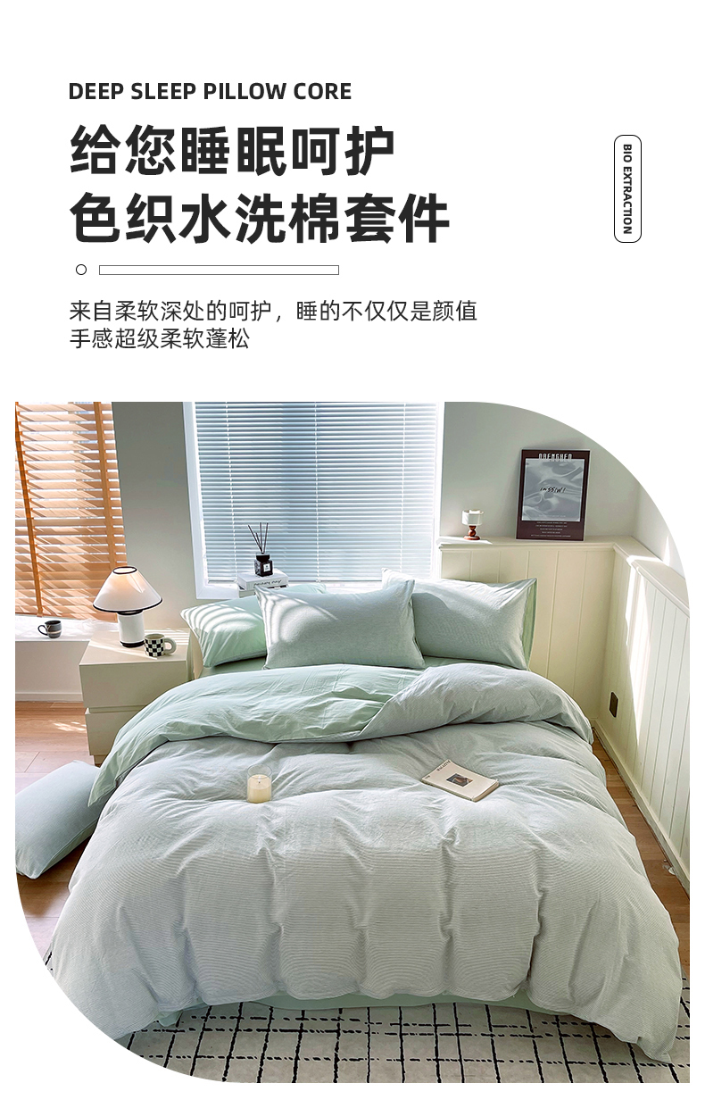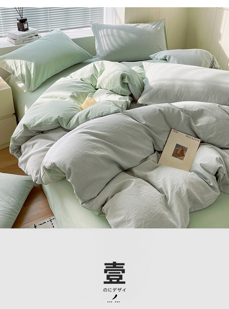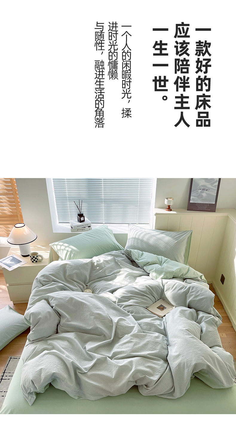 当前位置: 91家纺网 > 商品网购 > 床品套件 > 四件套 > 全棉普通四件套 > 春皖家纺 2026春夏新款全棉纯棉水洗棉四件套 细条绿