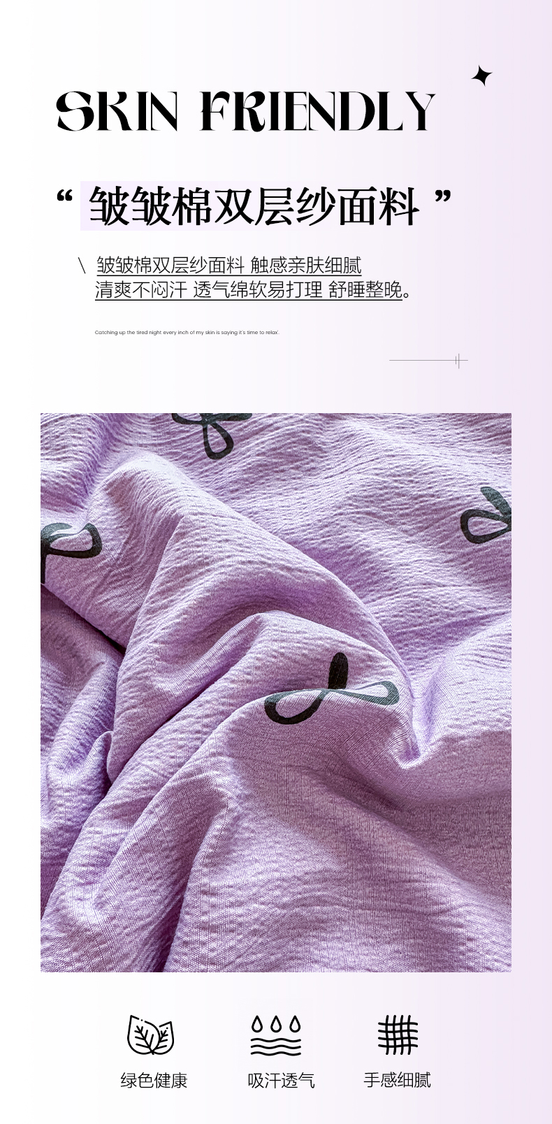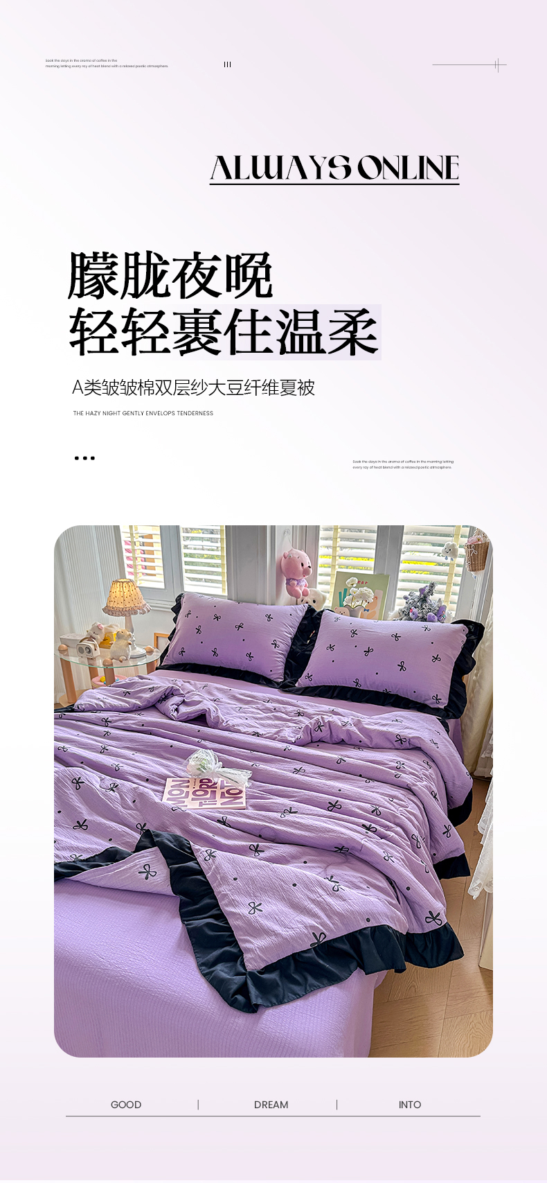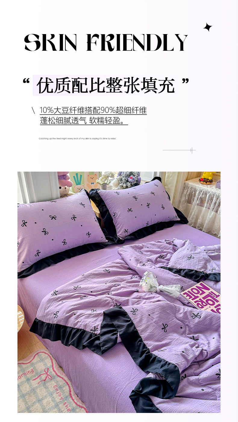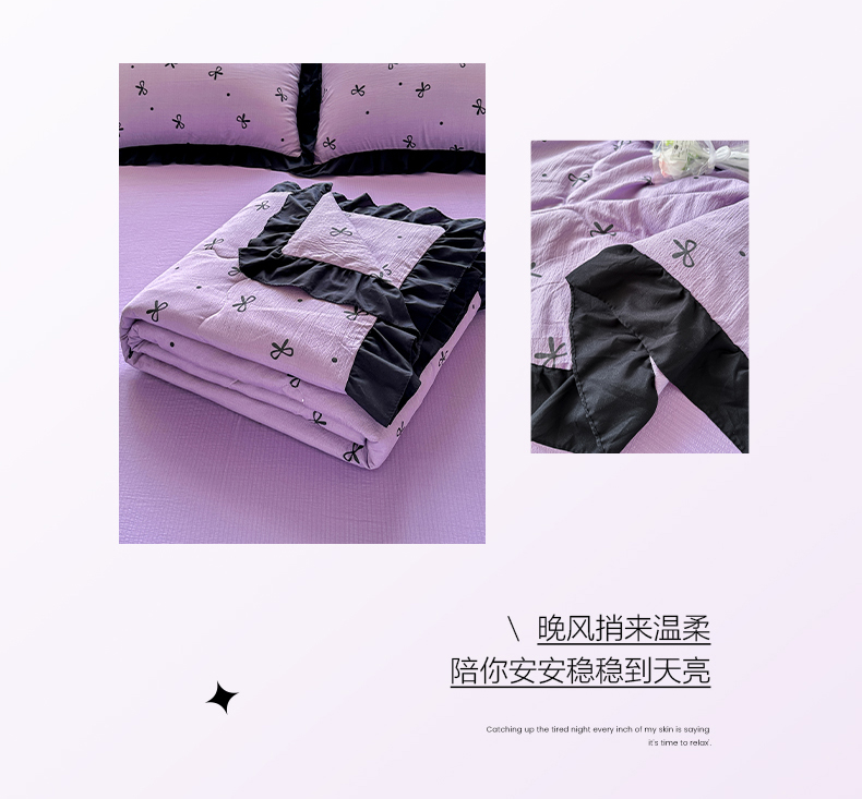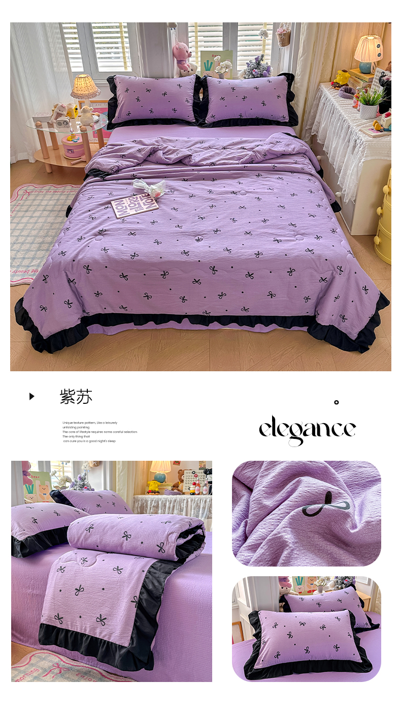 • 91家纺网 家纺一手货源 找家纺 优卡迪家纺馆 2026新款皱皱棉黑花边夏被四件套下载文件包含买家秀 紫苏(花边款)
