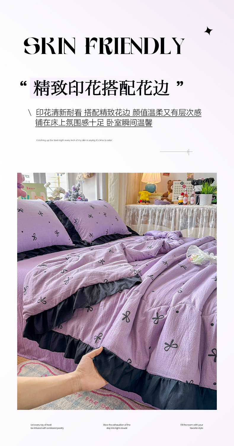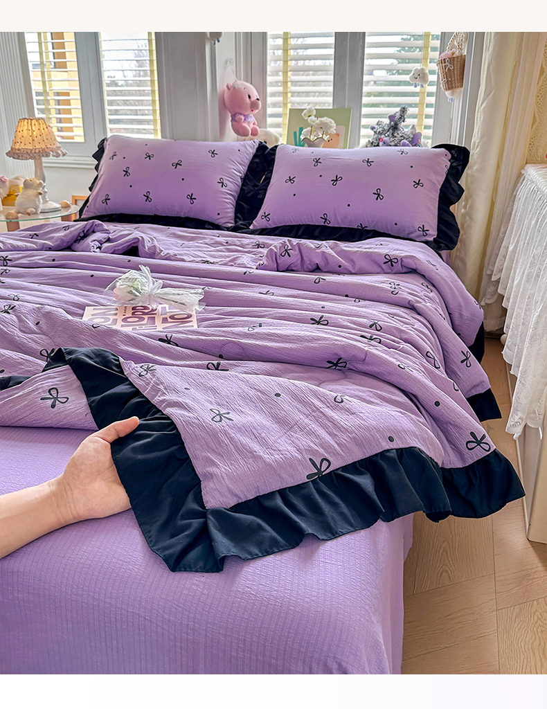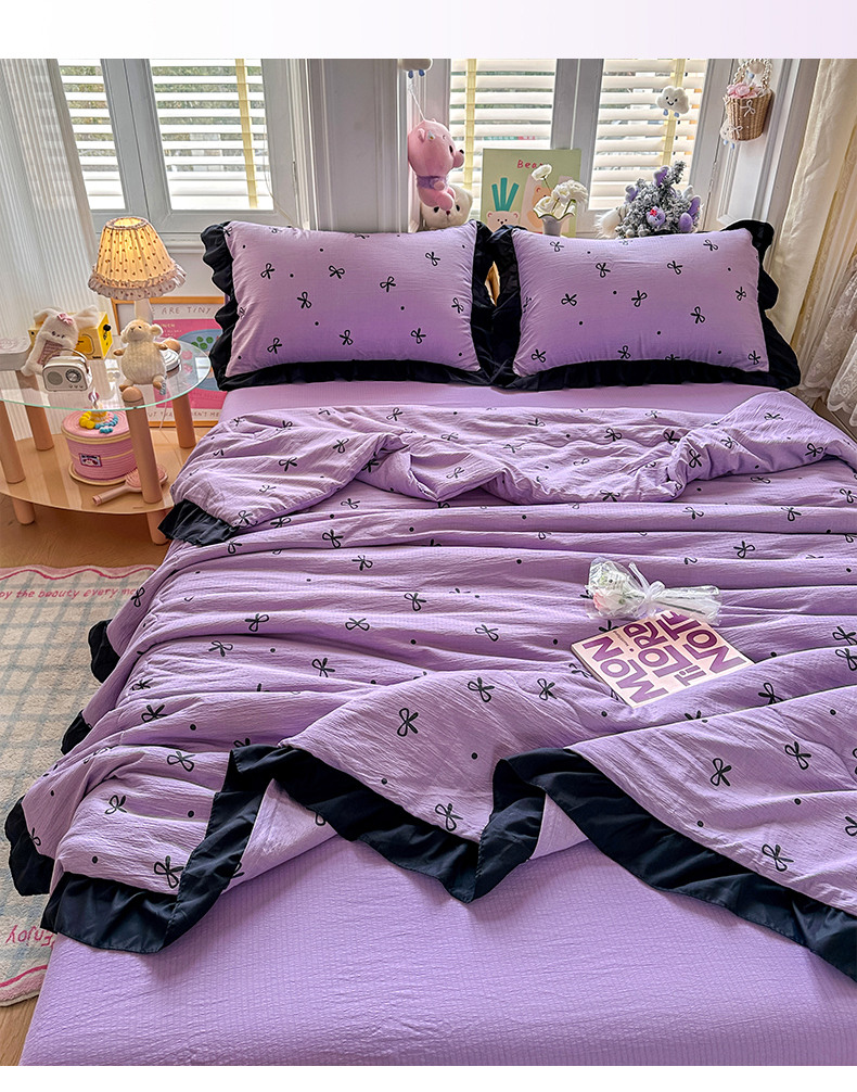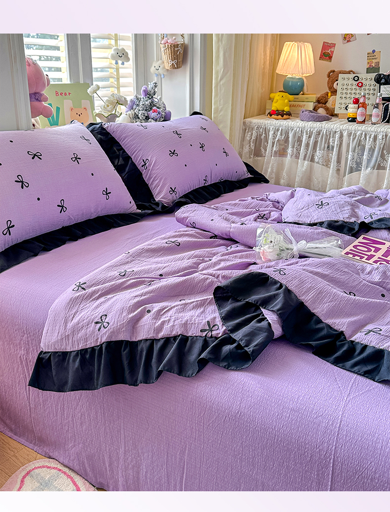 优卡迪家纺馆 2026新款皱皱棉黑花边夏被四件套下载文件包含买家秀 紫苏(花边款)