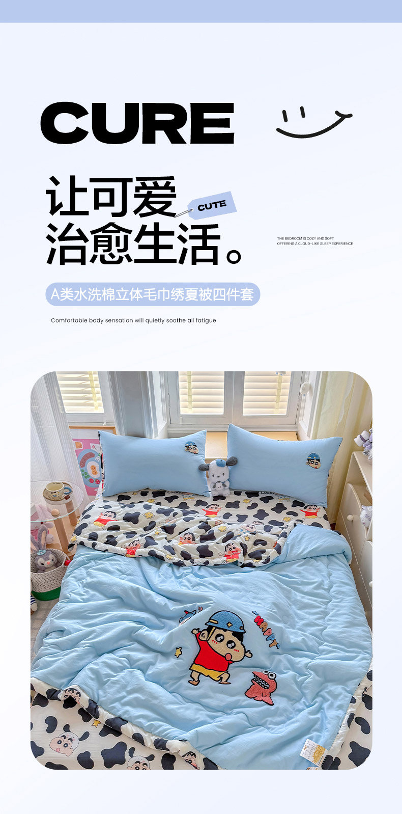• 91家纺网 家纺一手货源 找家纺 (总)优卡迪家纺馆 2026新款水洗云朵棉夏被四件套下载文件包含买家秀,机器猫,豹纹猫咪-粉,豹纹猫咪-咖,草莓女孩,蛋糕KT,动感涂鸭,海绵宝宝,花生布丁狗,卡皮巴拉,闪电宝宝,淘气小新,甜梦小喵