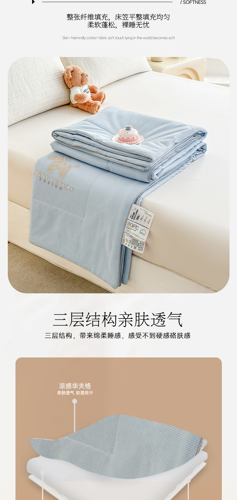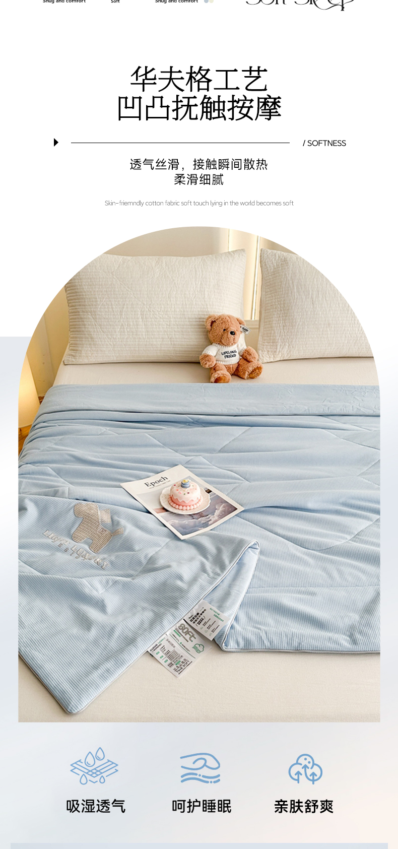 宇淳国际 2026新款华夫格夏凉被 浅蓝灰