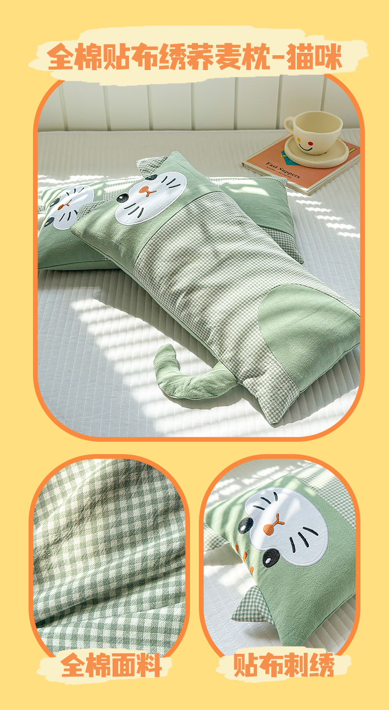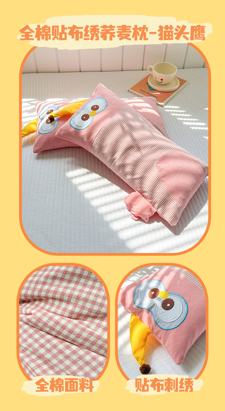 (总)梦叶草 2026新款全棉贴布绣荞麦枕,全棉贴布绣荞麦枕-企鹅,全棉贴布绣荞麦枕-猫咪,全棉贴布绣荞麦枕-猫头鹰,全棉贴布绣荞麦枕-小猴,全棉贴布绣荞麦枕-小熊