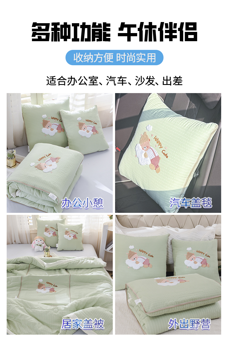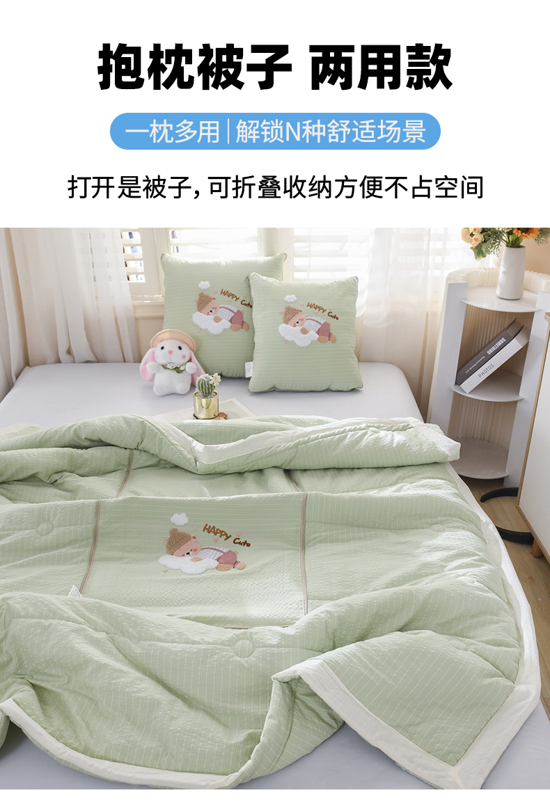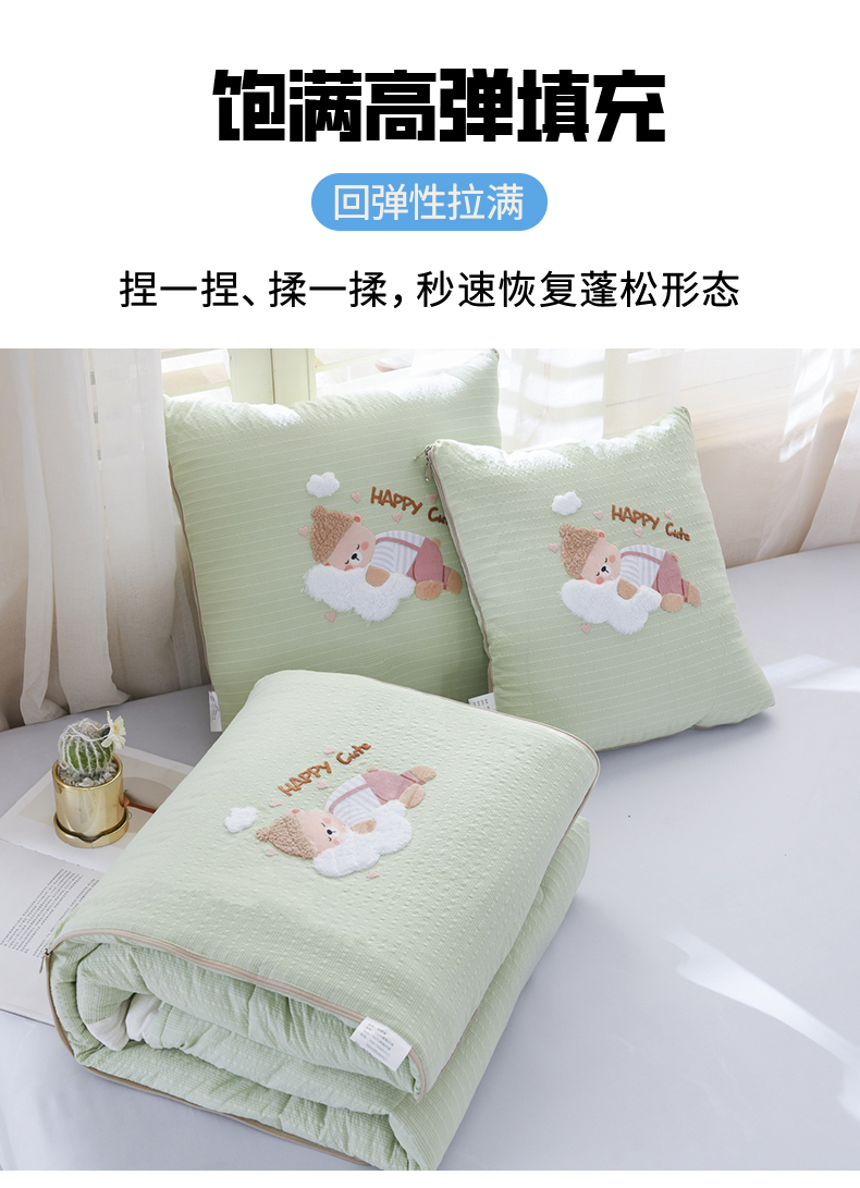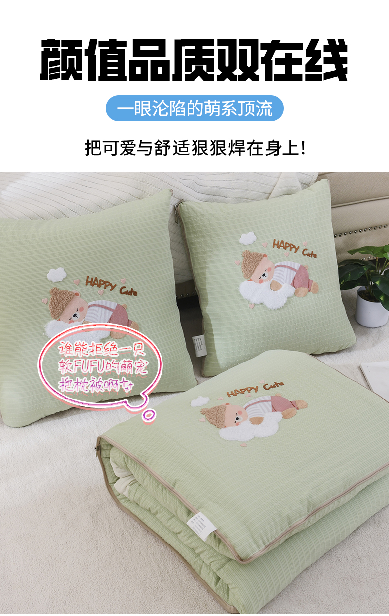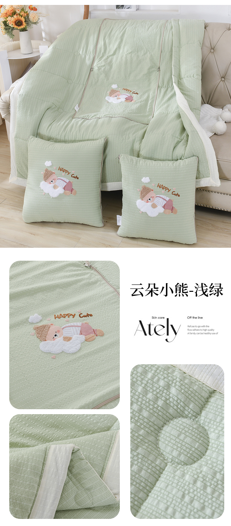 商品名称:恋绒家纺 2026新款四季款贴布绣靠枕被抱枕被飞天萌熊 云朵小熊-浅绿