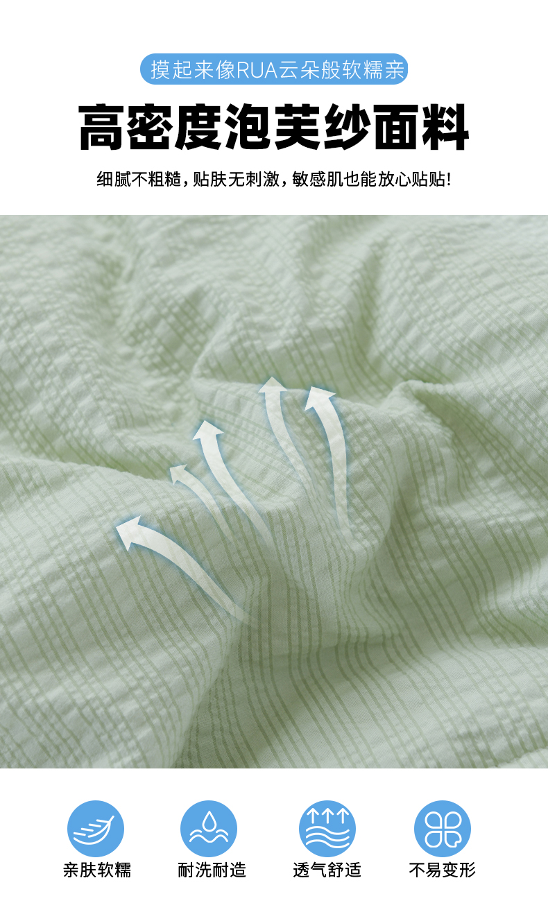 (总)恋绒家纺 2026春夏新款泡芙纱双层纱泡泡提花皱皱纱夏被夏凉被空调被,豆沙,米白色,浅粉,浅灰,浅蓝色,浅绿色