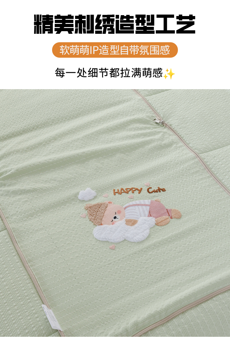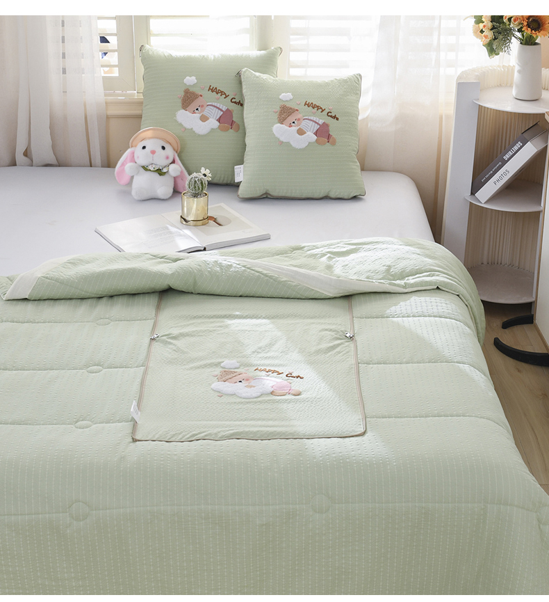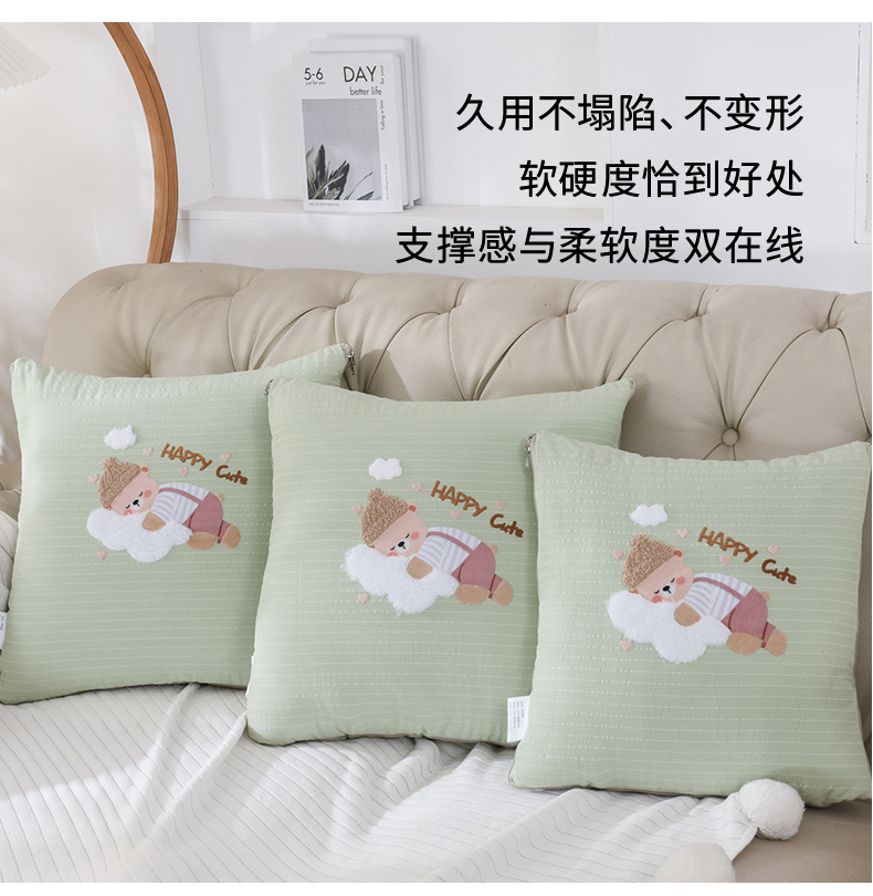 恋绒家纺 2026新款四季款贴布绣靠枕被抱枕被飞天萌熊 云朵小熊-浅绿
