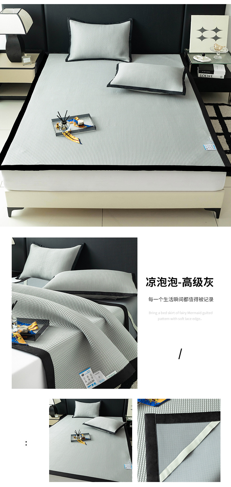 (总)安哆啦家纺 2026新款480克高端PE冰豆豆软凉席席子,华夫格-温柔白,华夫格-冰川蓝,华夫格-高级灰,华夫格-抹茶绿,华夫格-樱花粉
