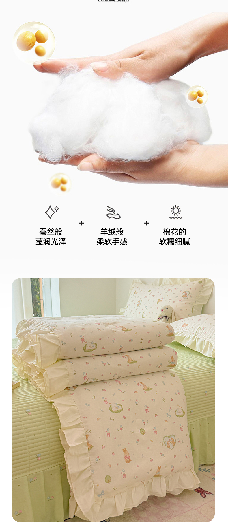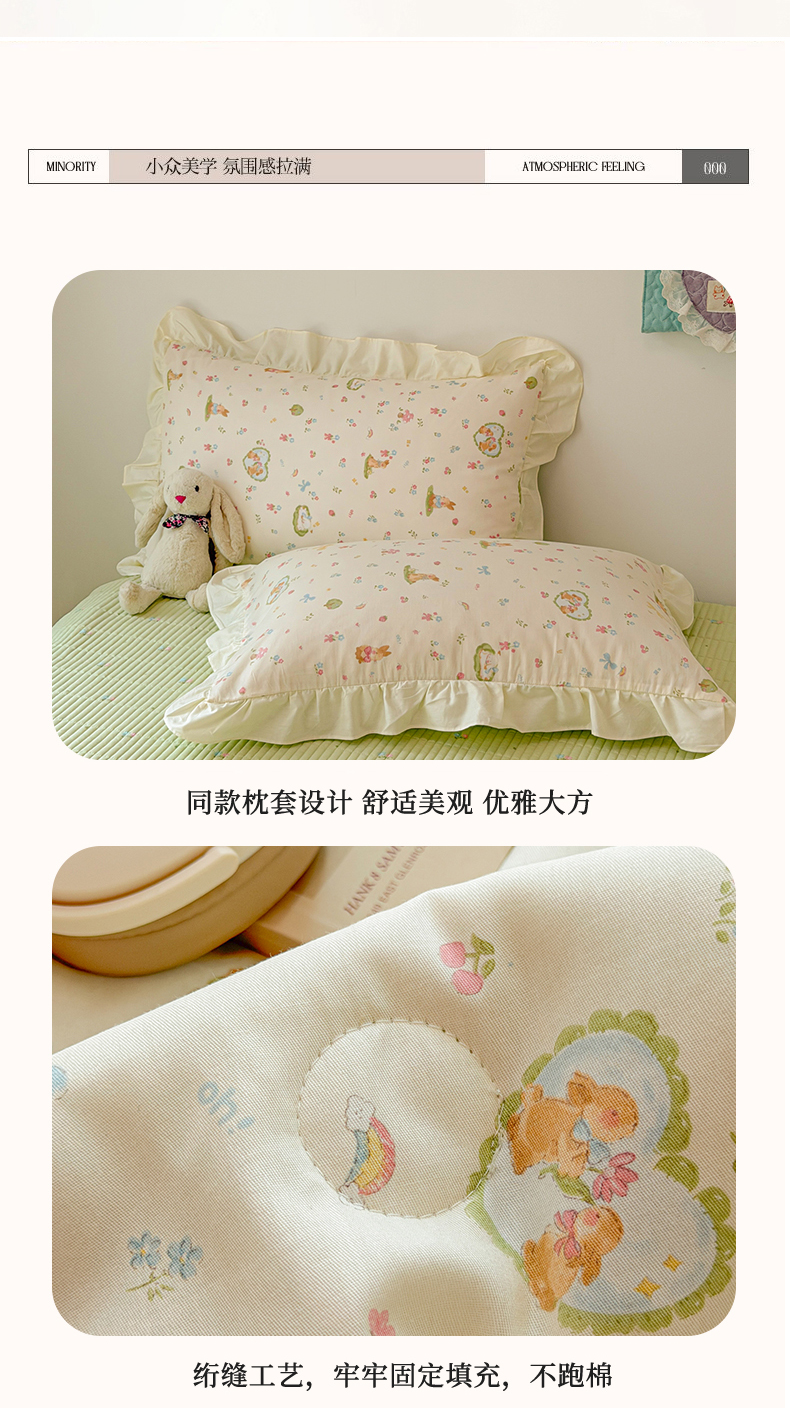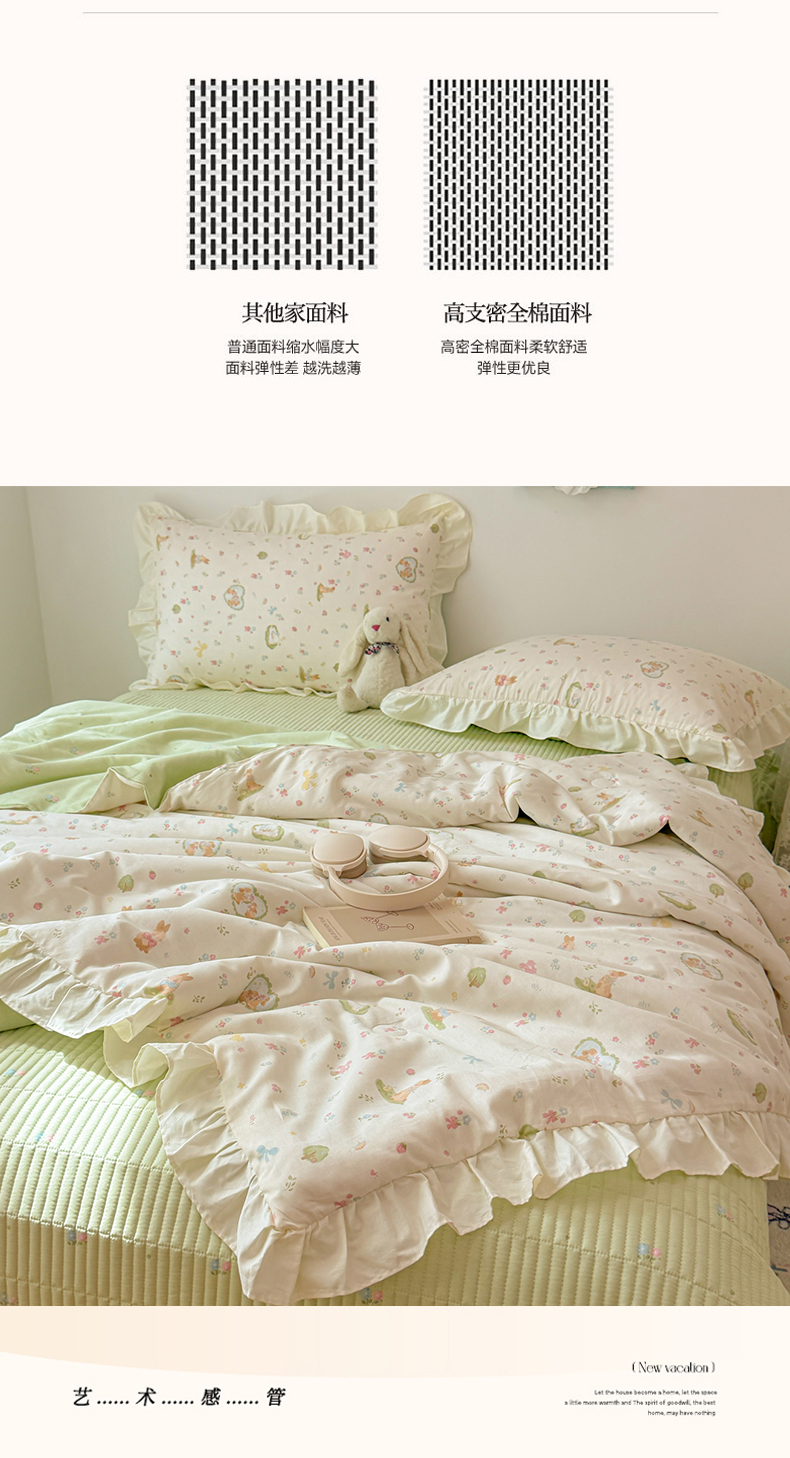 当前位置: 91家纺网 > 商品网购 > 床品套件 > 四件套 > 夏被四件套 > 简宜家居(朝初家纺) 2026新款全棉花边夏被全棉床盖夏被四件套 兔与花笺