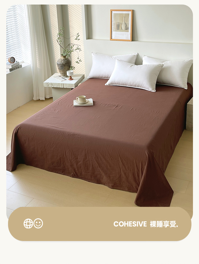 春皖家纺 2026春夏新款全棉纯棉水洗棉单品系列床单单件床单单品-B版单床单 慕斯棕