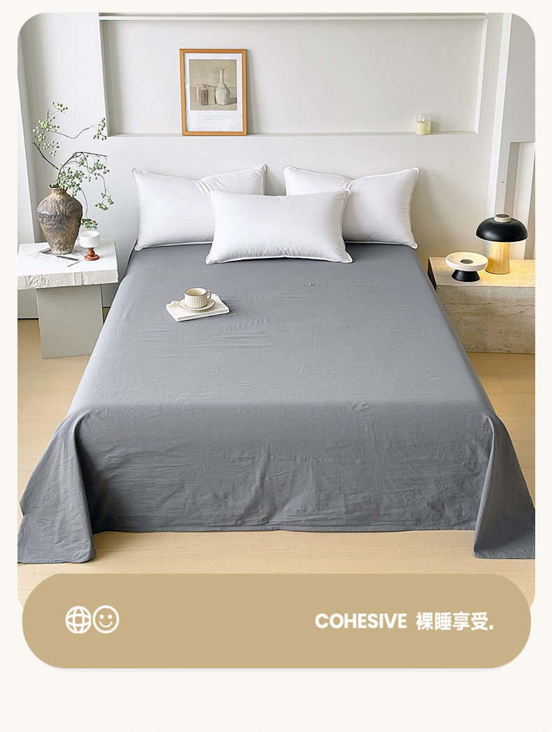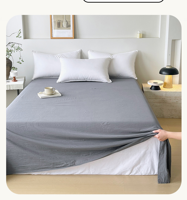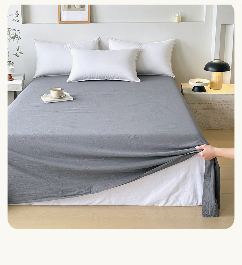 春皖家纺 2026春夏新款全棉纯棉水洗棉单品系列床单单件床单单品-B版单床单 素雅墨灰