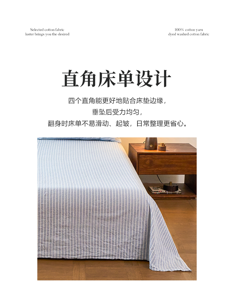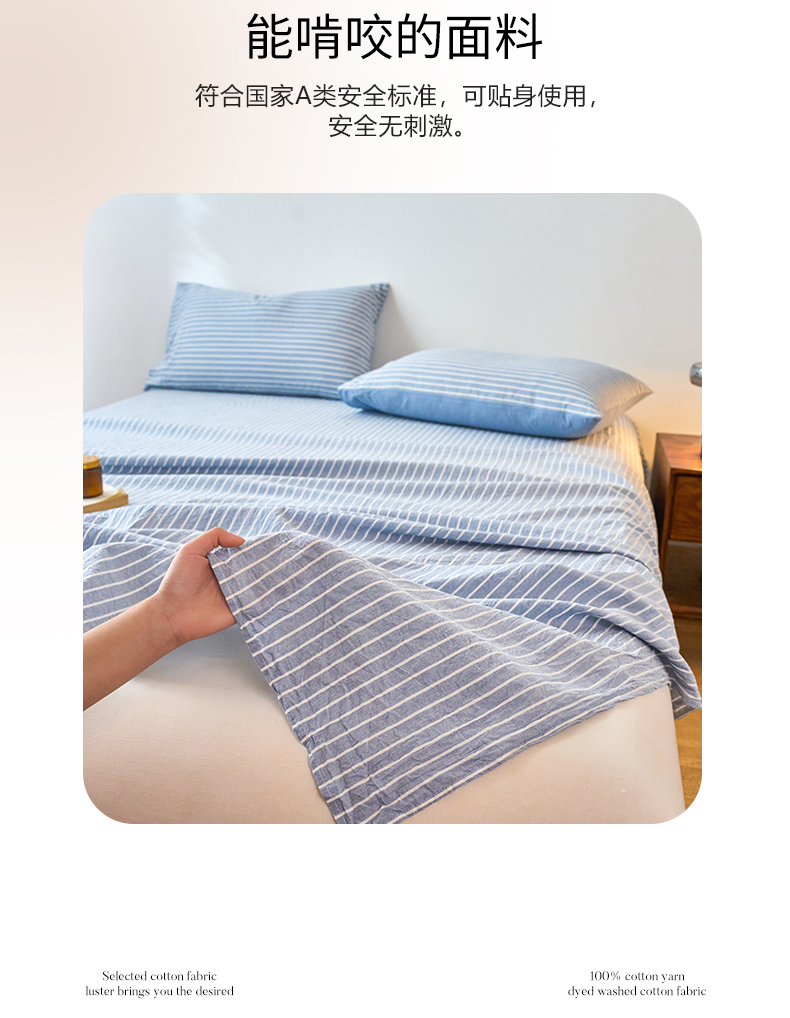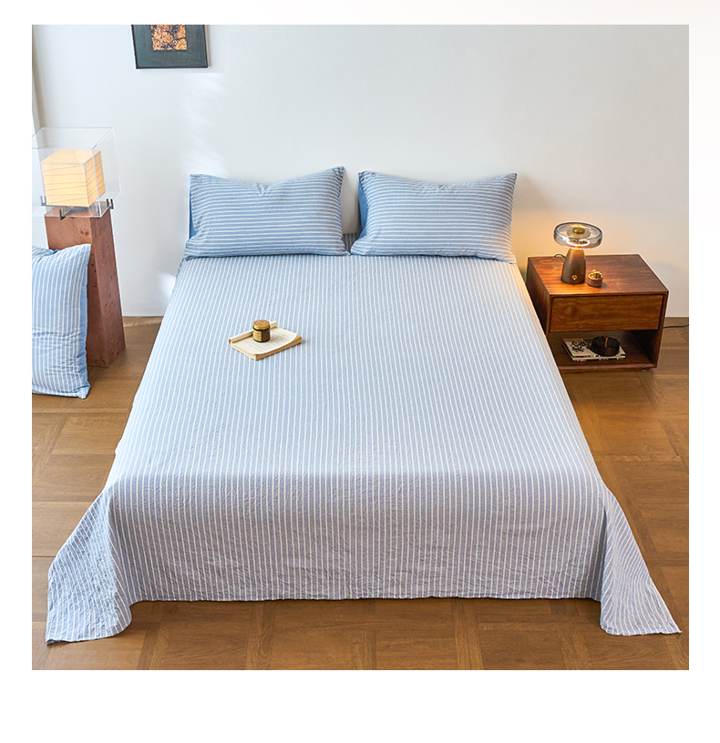 春皖家纺 2026春夏新款全棉纯棉水洗棉单品系列床单单件床单单品-A版单床单 素雅-蓝条