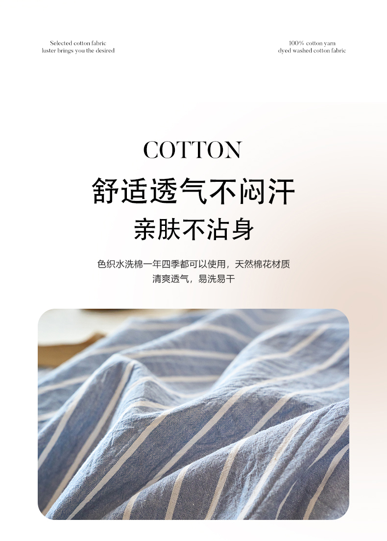 商品名称:春皖家纺 2026春夏新款全棉纯棉水洗棉单品系列床单单件床单单品-A版单床单 素雅-蓝条