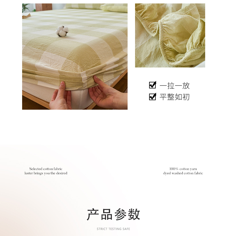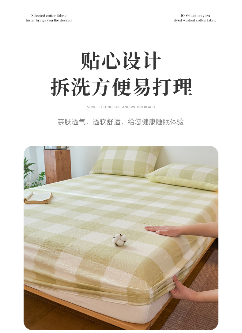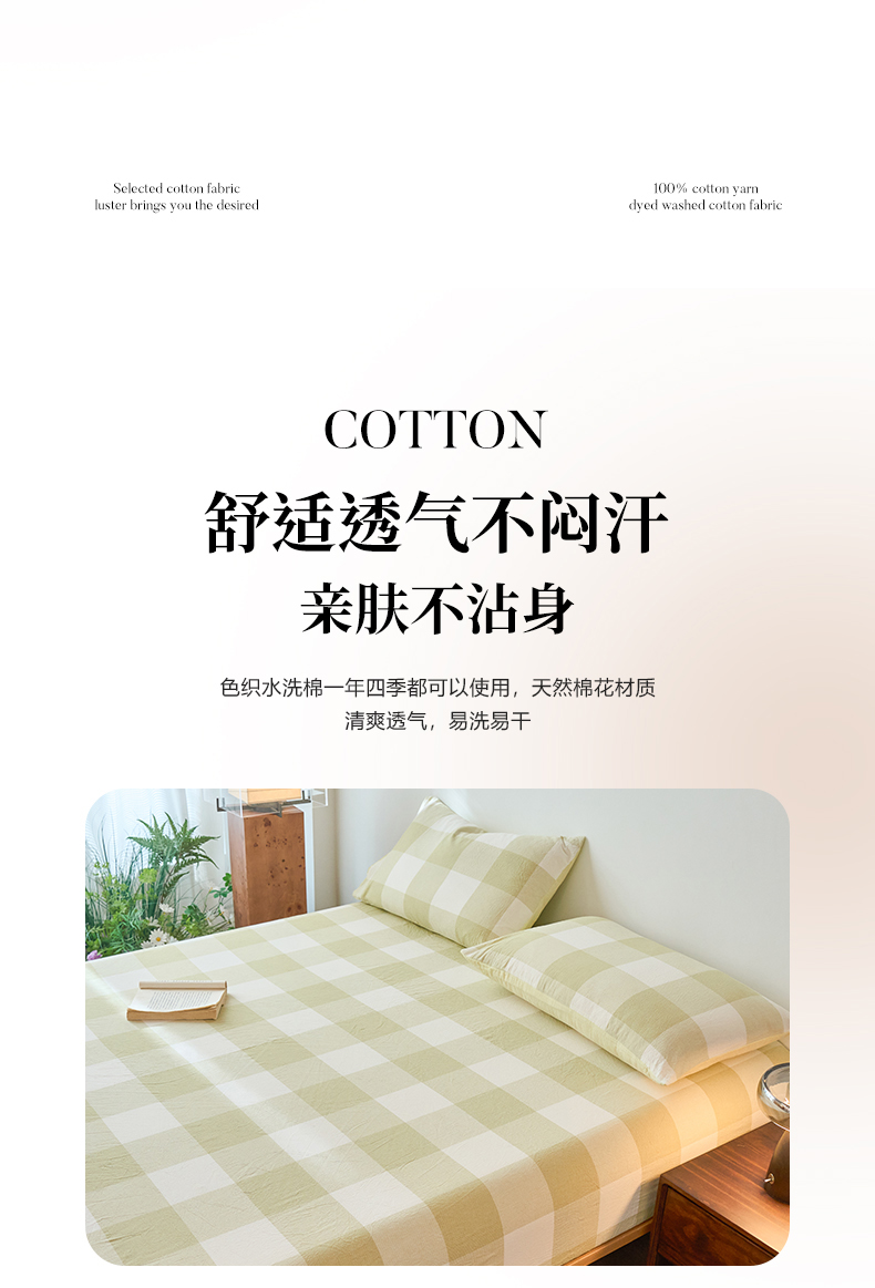 商品名称:春皖家纺 2026春夏新款全棉纯棉水洗棉单品系列床笠单件床笠单品-A版单床笠 素雅-芳绿