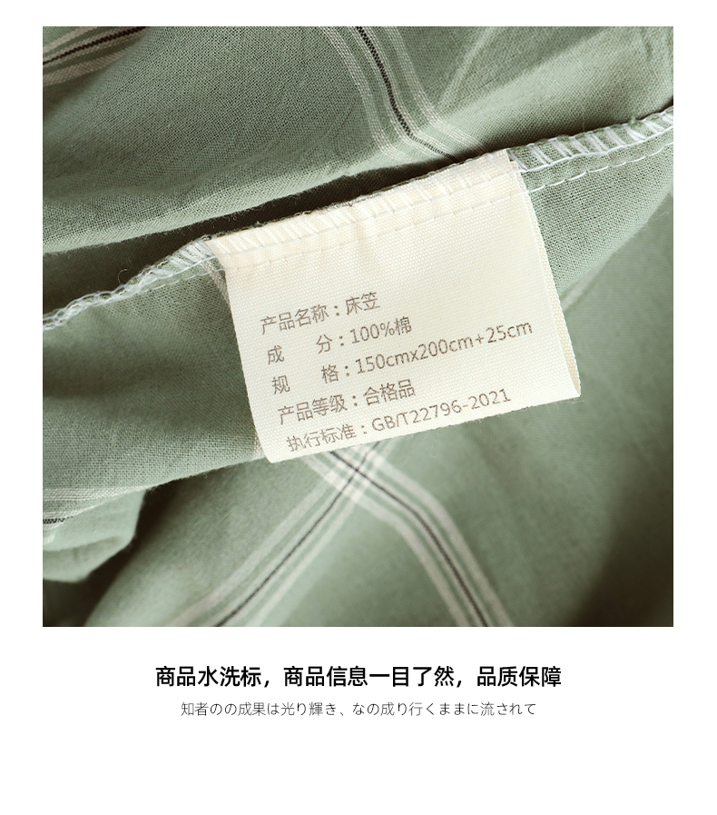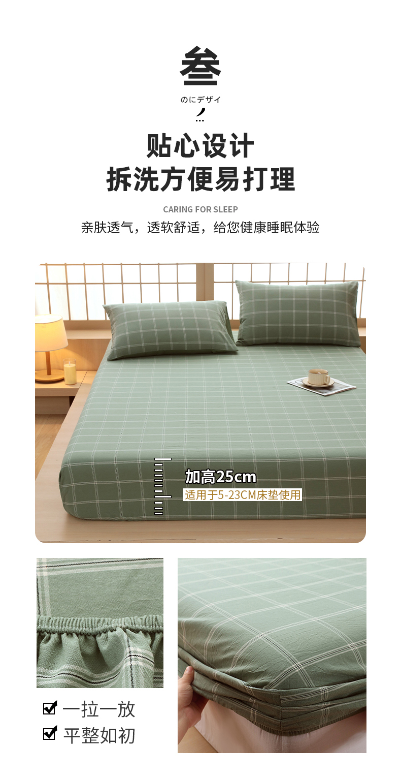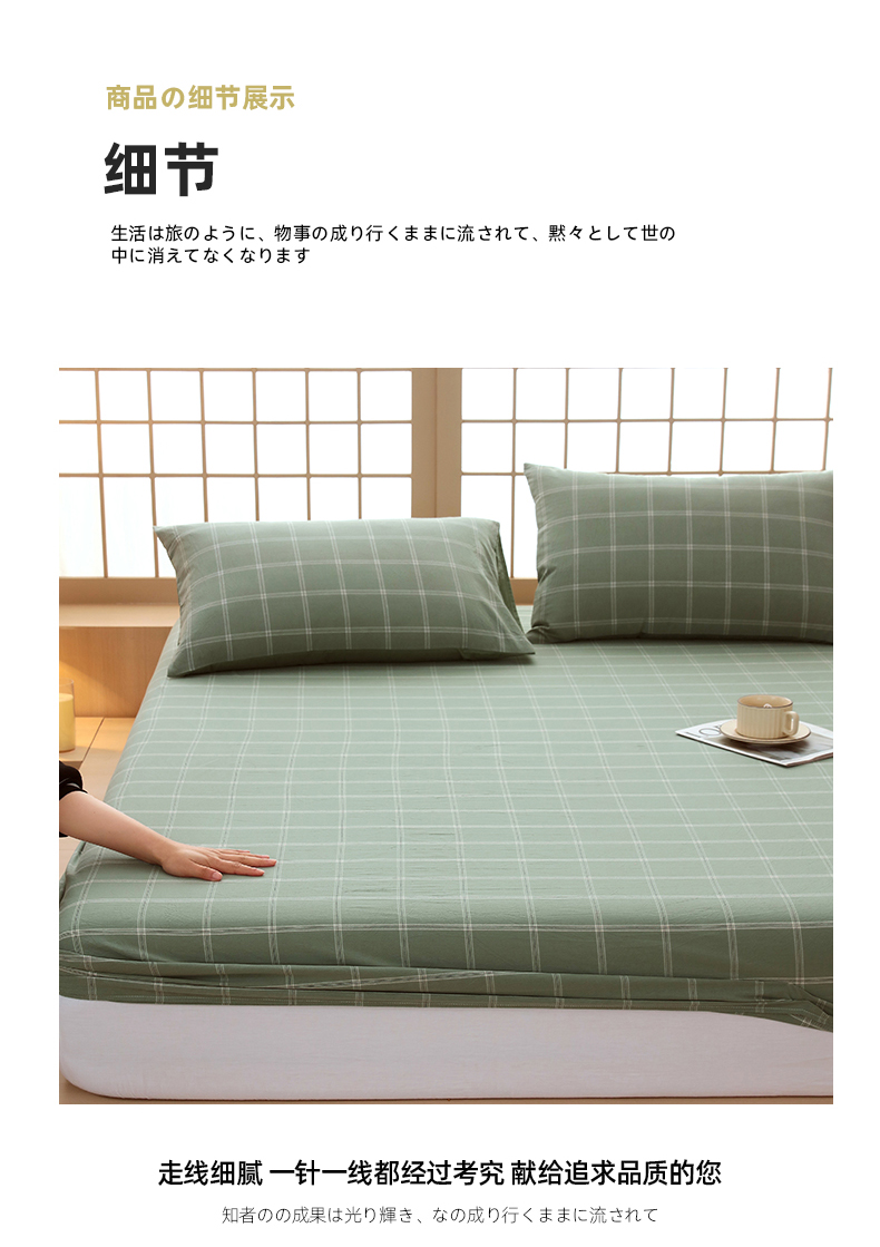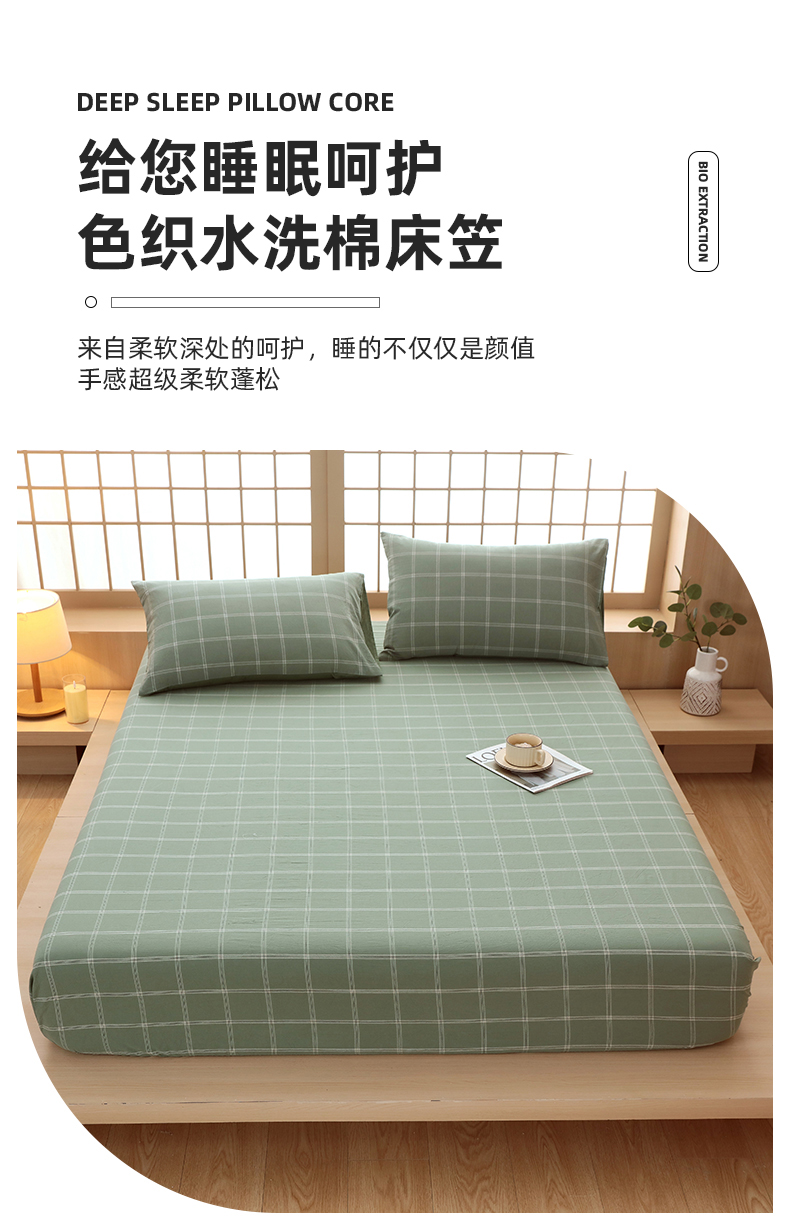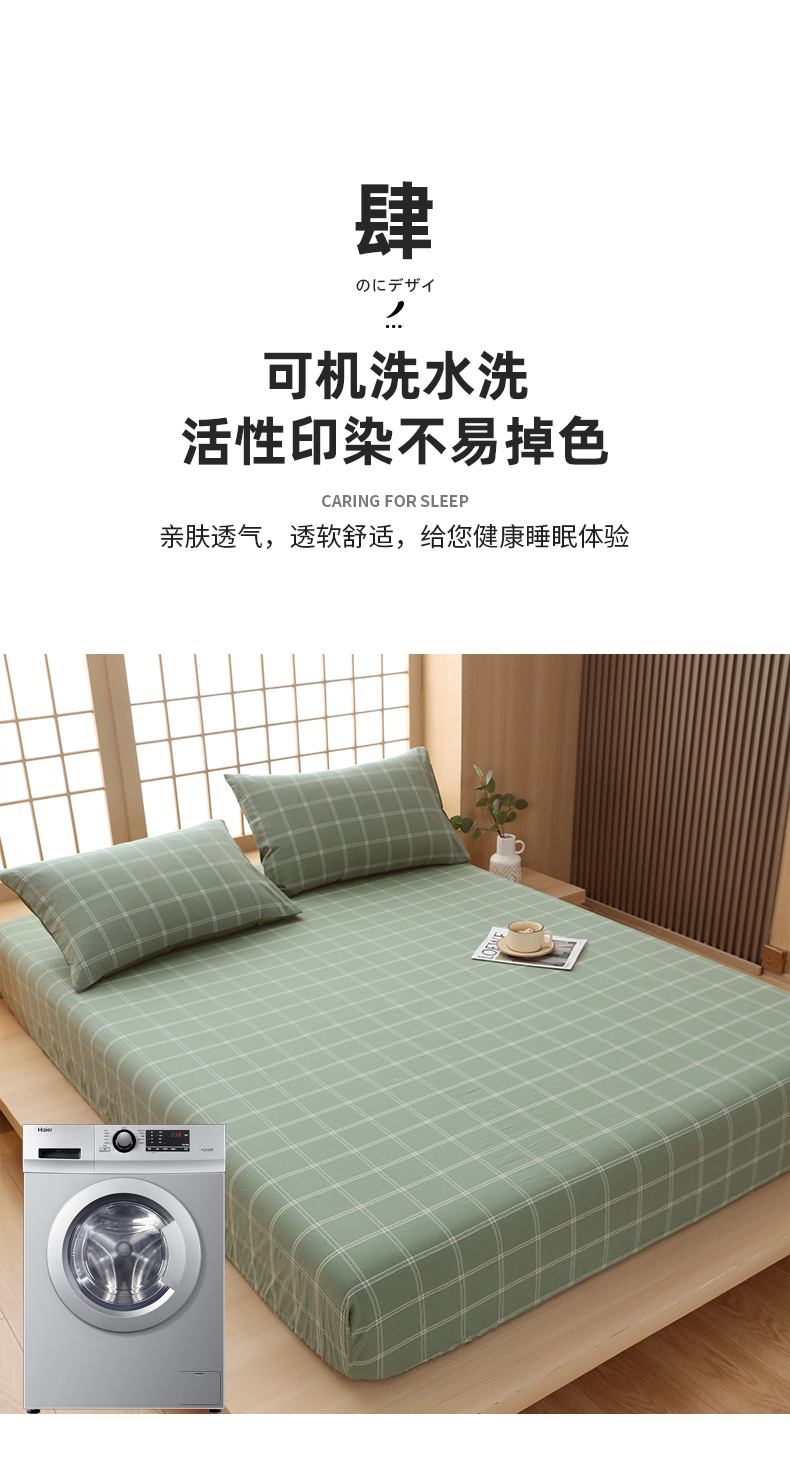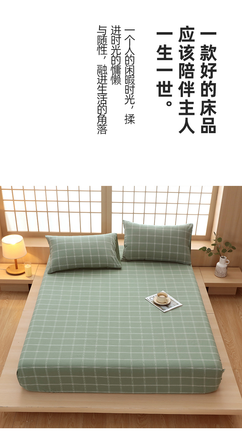 商品名称:春皖家纺 2026春夏新款全棉纯棉水洗棉单品系列床笠单件床笠单品-A版单床笠 素雅-韵绿