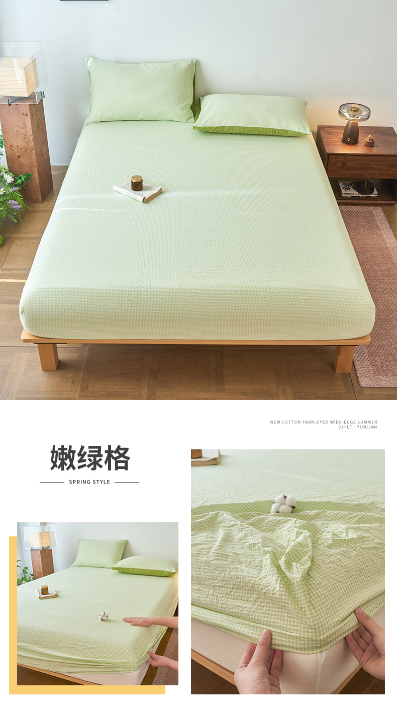 春皖家纺 2026春夏新款全棉纯棉水洗棉单品系列床笠单件床笠单品-A版单床笠 素雅-韵绿