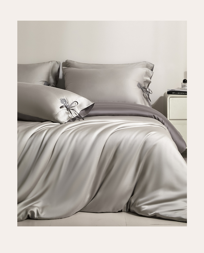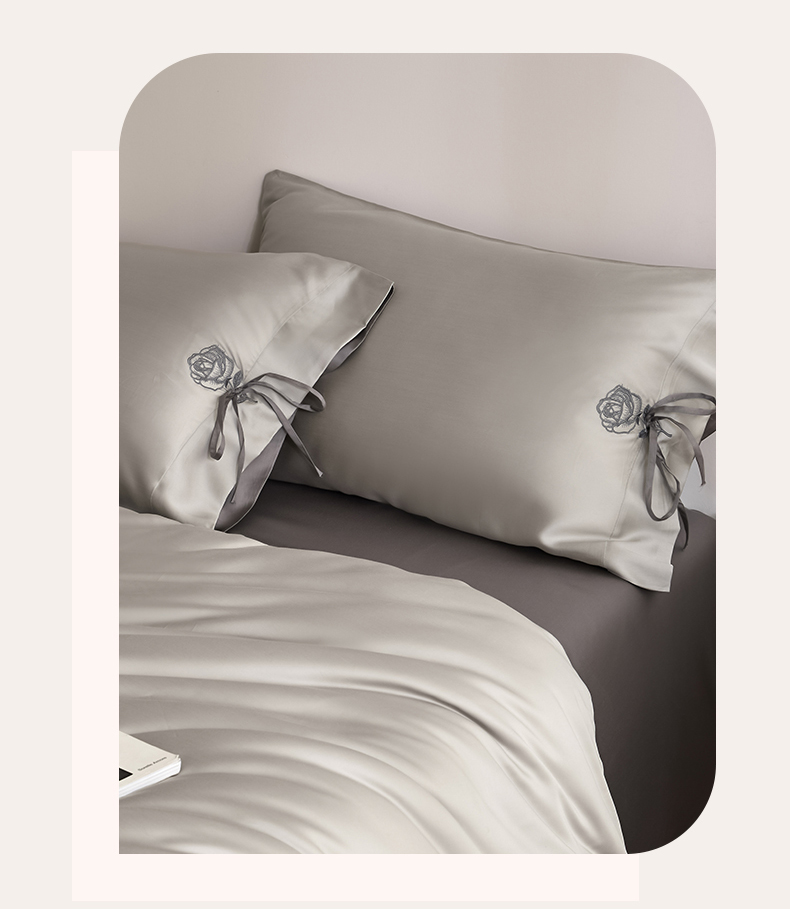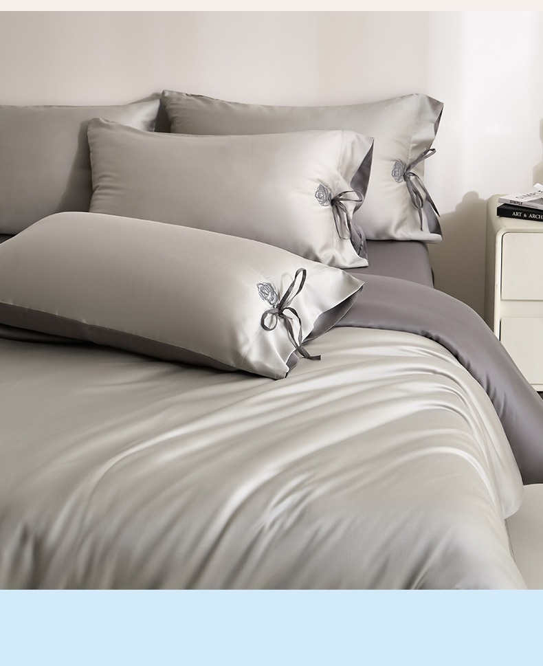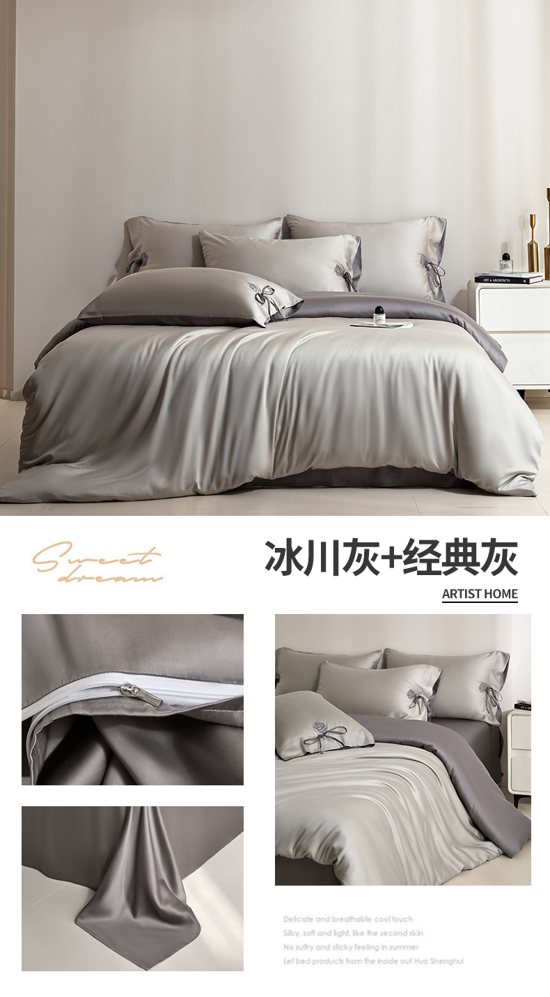 DC 2026新款天丝玫瑰压线抽绳四件套--日落玫瑰系列 冰川灰+经典灰