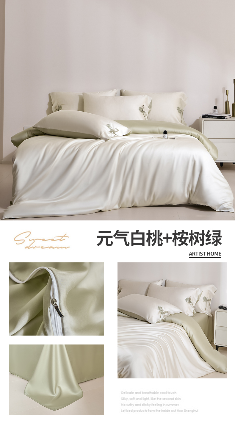 (总)DC 2024新款60S天丝印花刺绣四件套-雪莉系列,半熟蜜桃,冰川蓝,香谷槟,星辰绿,椰子灰,元气白桃