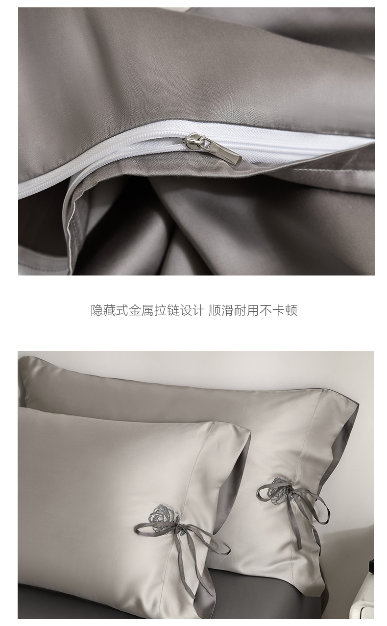 商品名称:DC 2026新款天丝玫瑰压线抽绳四件套--日落玫瑰系列 冰川灰+经典灰