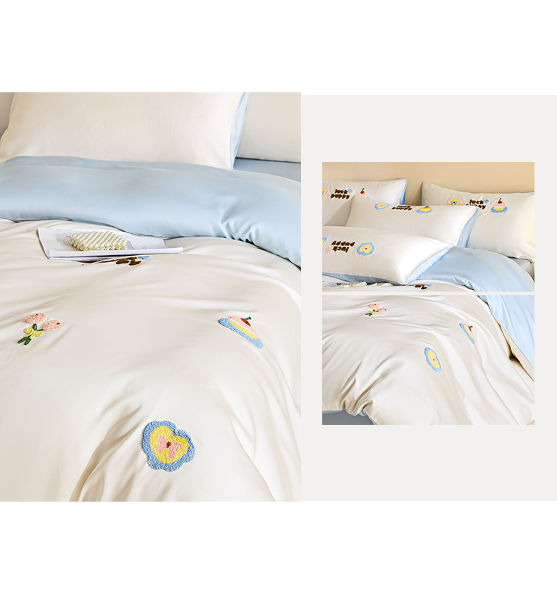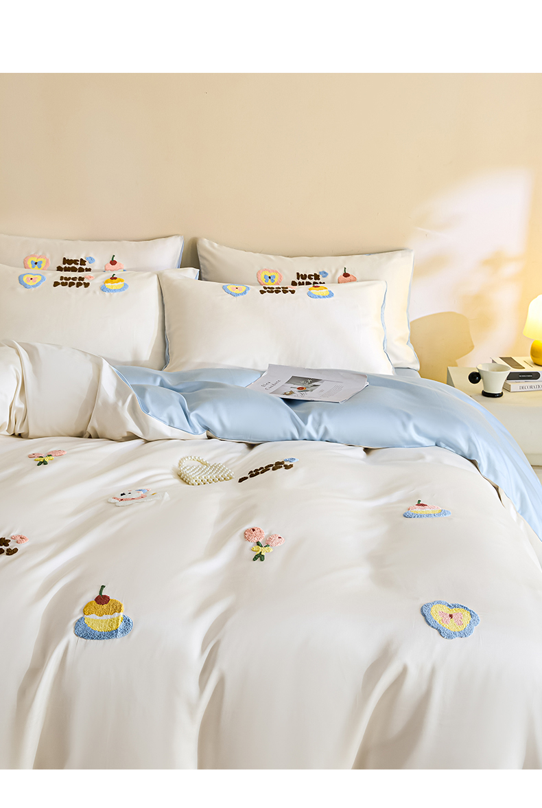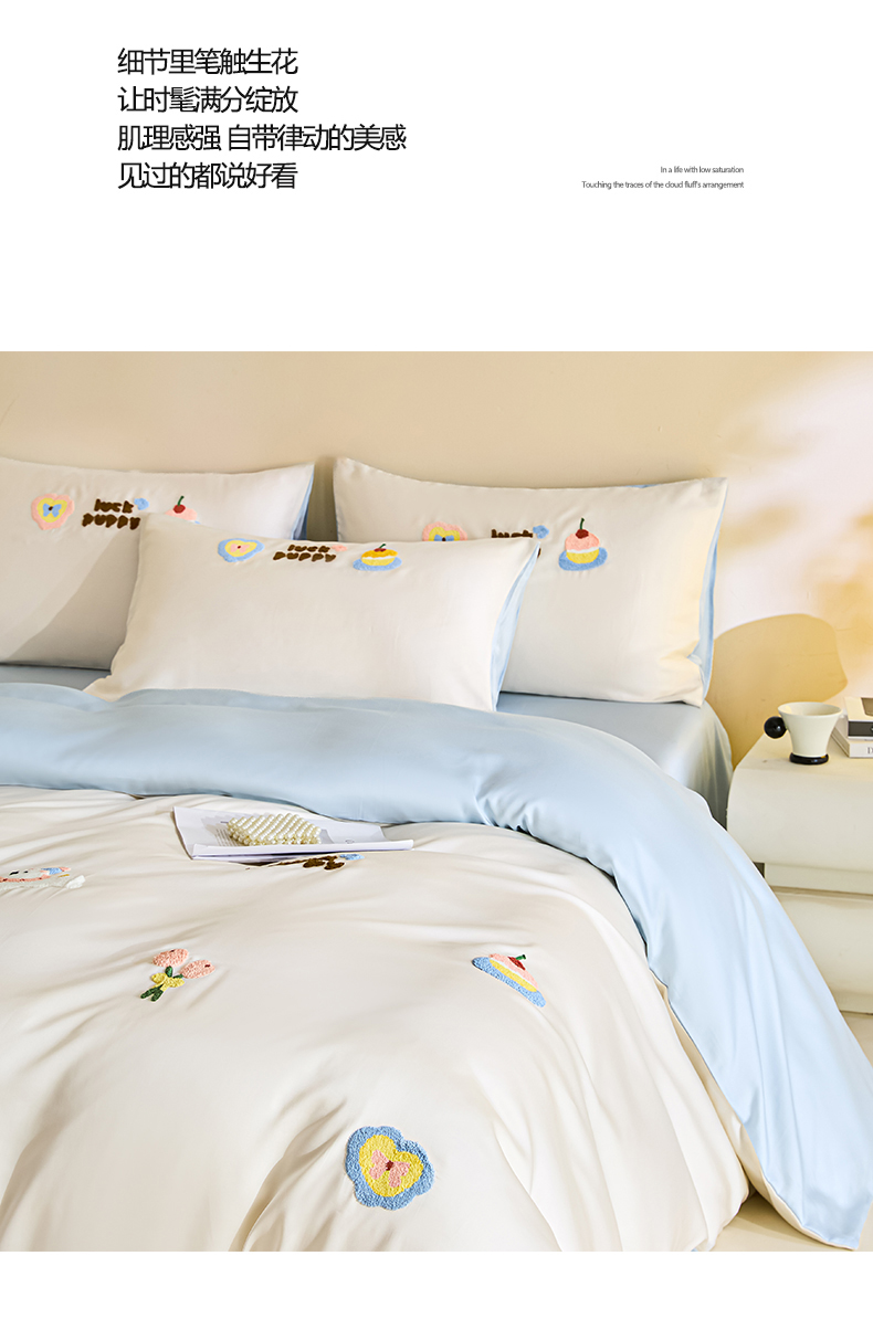 (总)DC 2024新款60S天丝印花刺绣四件套-雪莉系列,半熟蜜桃,冰川蓝,香谷槟,星辰绿,椰子灰,元气白桃