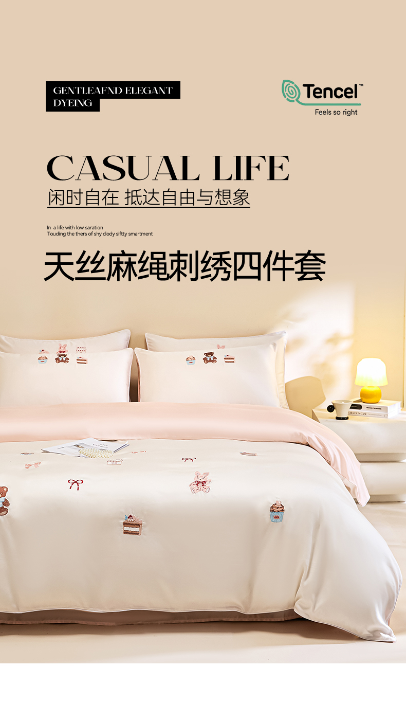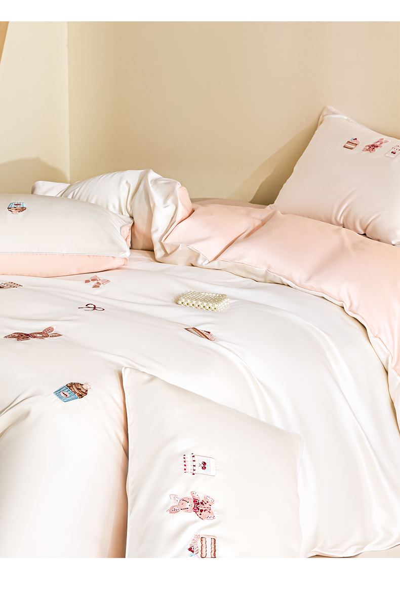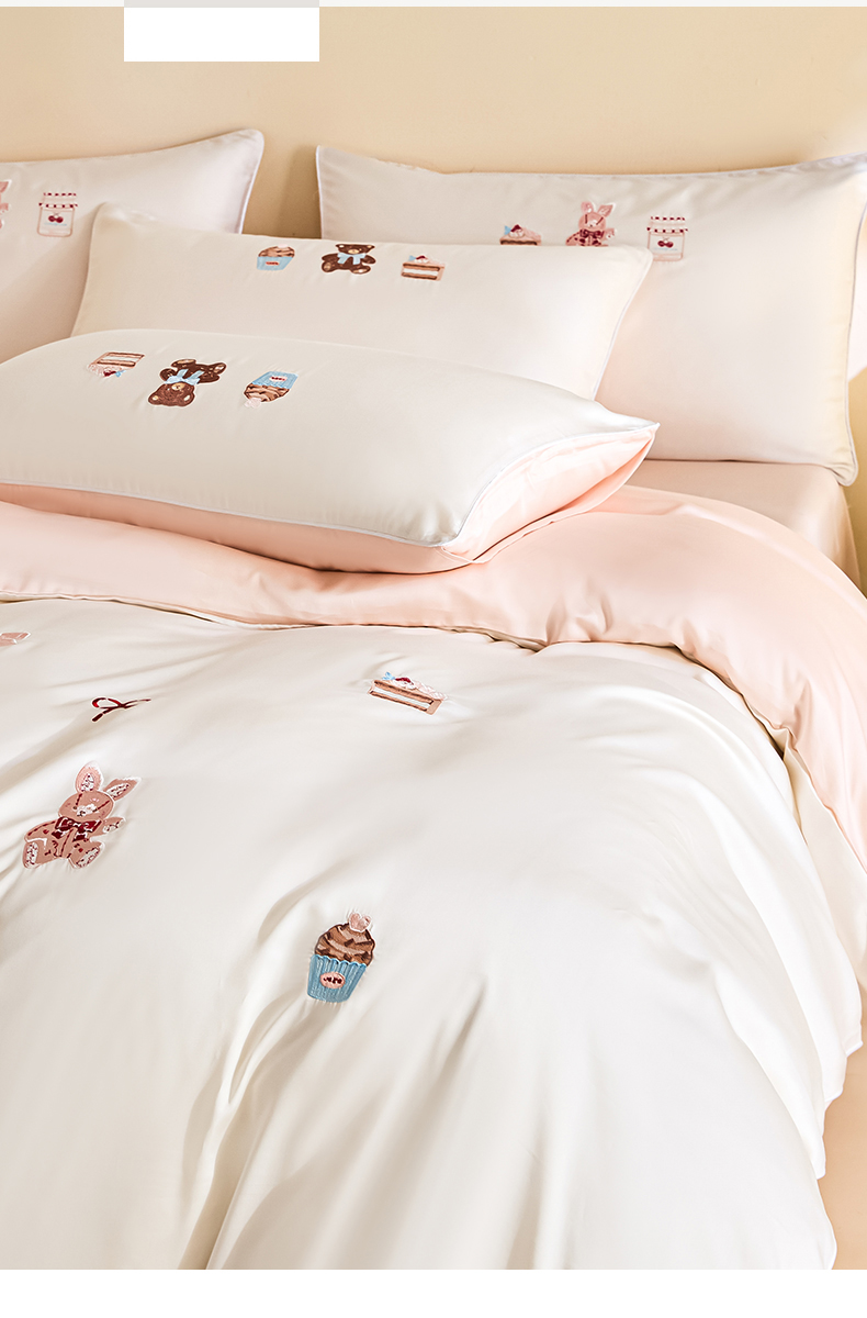当前位置: 91家纺网 > 商品网购 > 床品套件 > 四件套 > 莱赛尔四件套 > DC 2026新款天丝刺绣麻绳平绣系列四件套 麻绳平绣-元气白桃+半熟蜜桃(焦糖小熊)