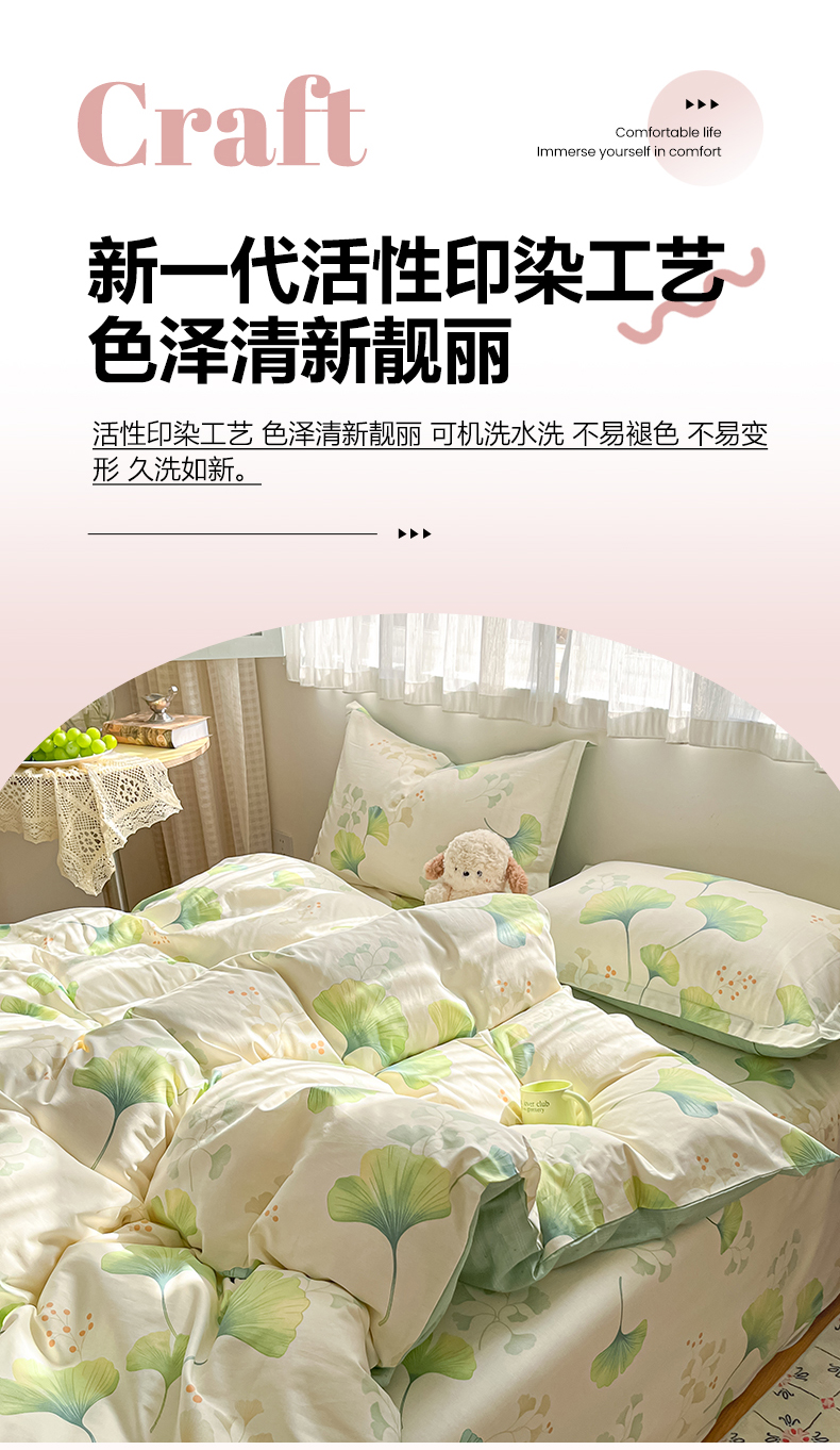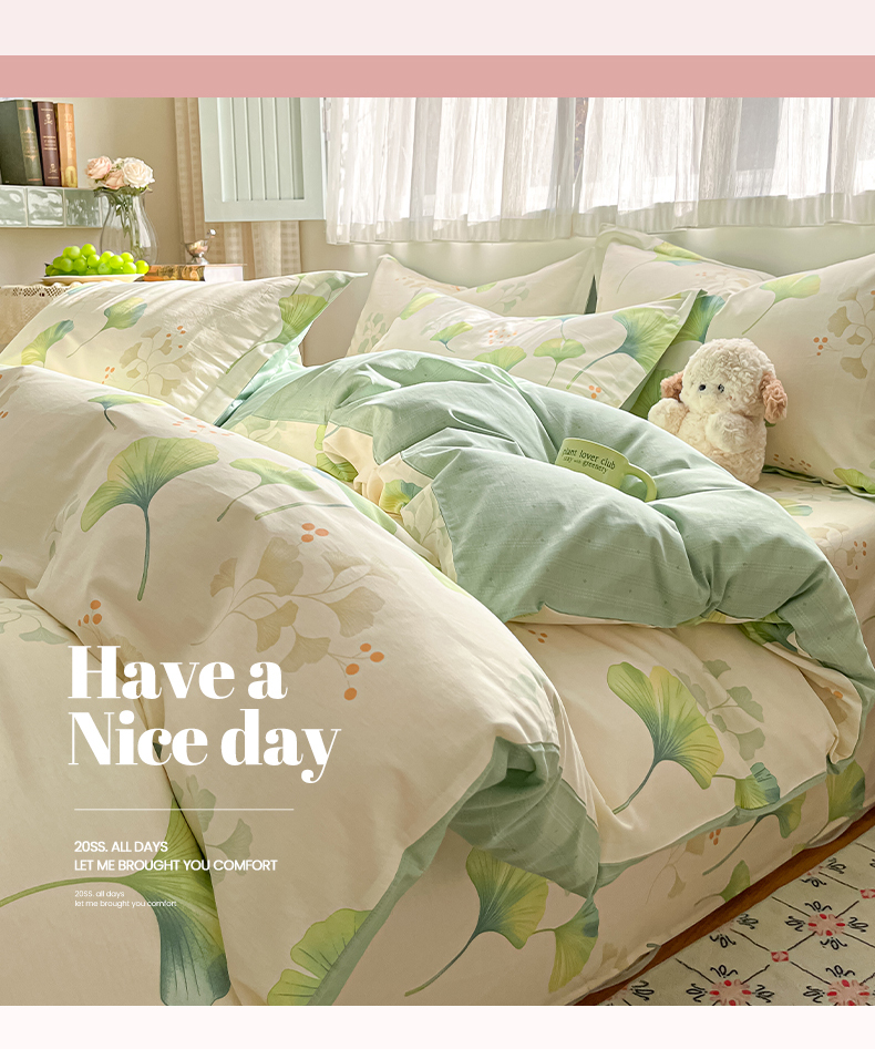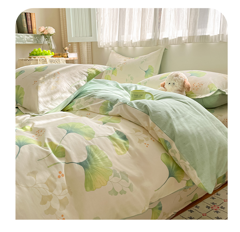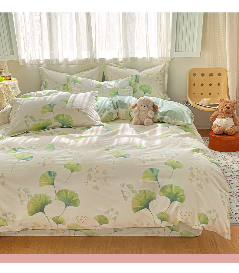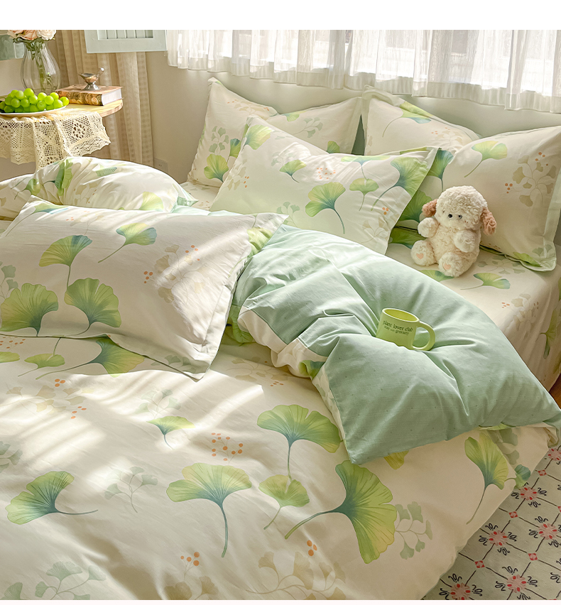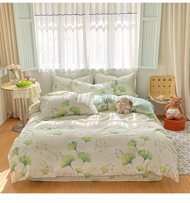 当前位置: 91家纺网 > 商品网购 > 床品套件 > 四件套 > 全棉普通四件套 > 女子家纺 2026新款全棉纯棉印花单品系列花卉款四件套 青绿银杏