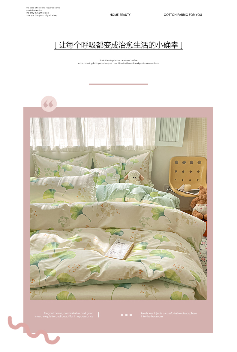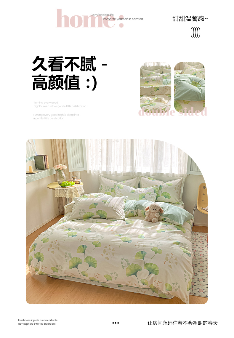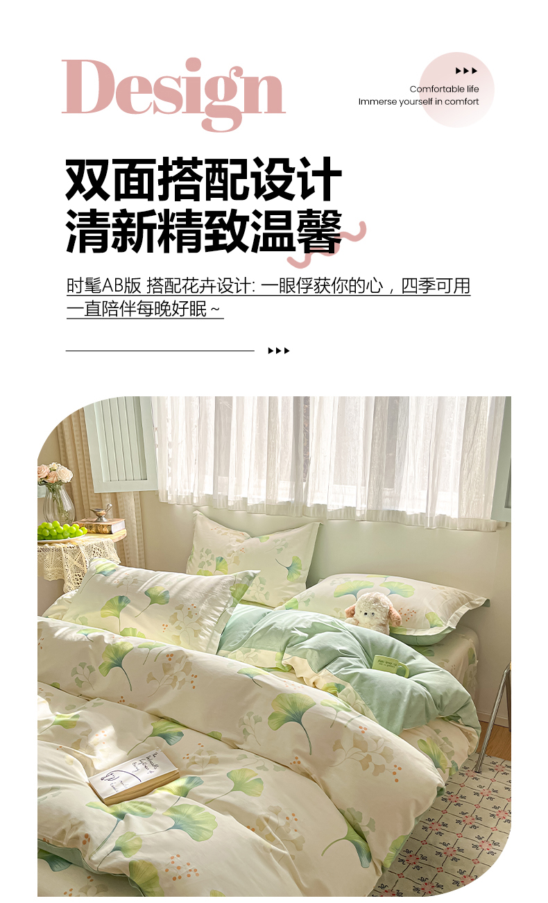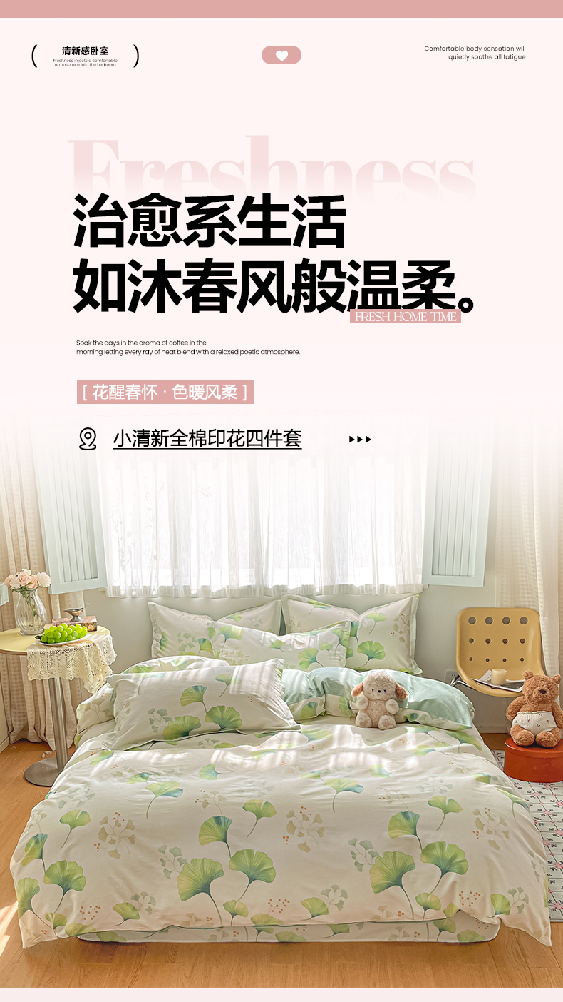 当前位置: 91家纺网 > 商品网购 > 床品套件 > 四件套 > 全棉普通四件套 > 女子家纺 2026新款全棉纯棉印花单品系列花卉款四件套 青绿银杏