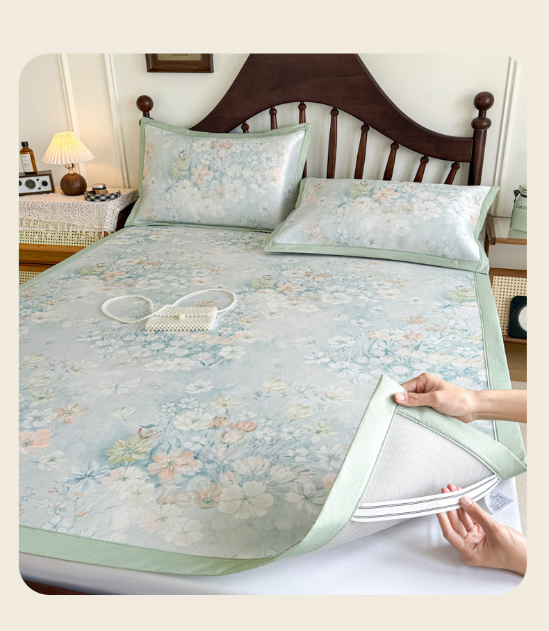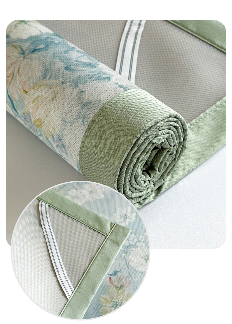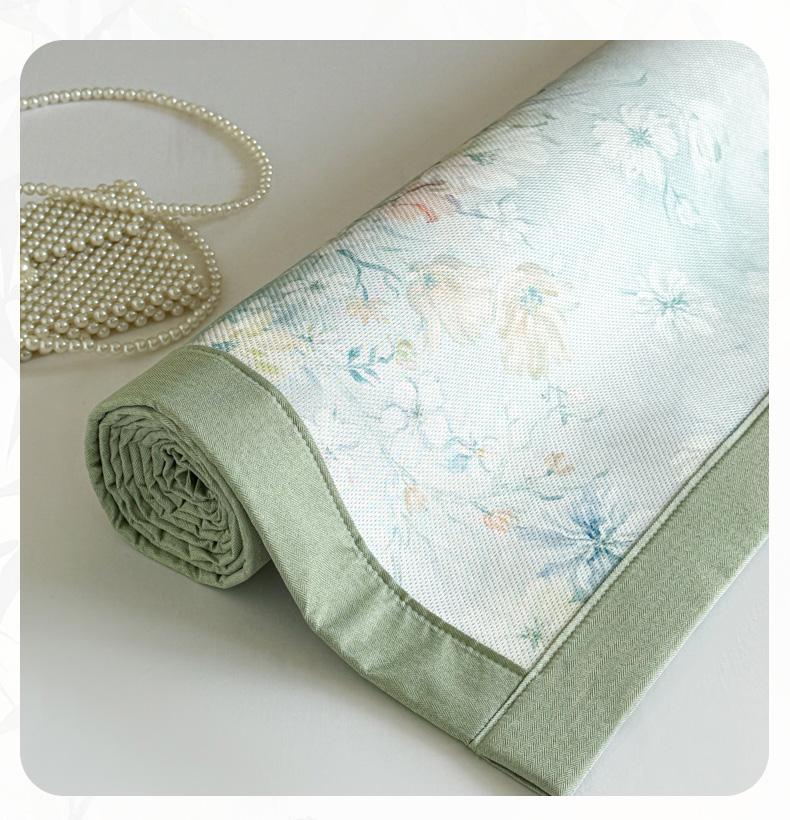 倾慕家纺 2026新款A类数码印花冰泉丝凉席 玉兰花绿