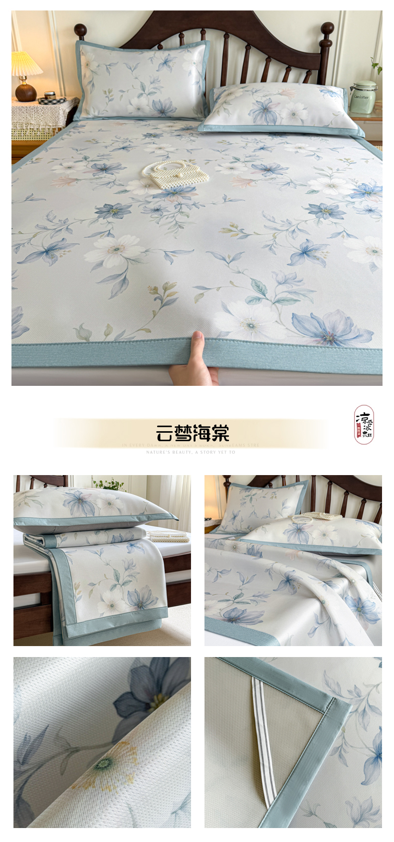 (总)倾慕家纺 2026新款PE50提花凉感冰丝凉席,花星点点粉,花星点点灰,花星点点绿,简蝶粉,简蝶蓝,叶繁粉,叶繁灰,叶繁蓝,叶繁绿,针叶粉,针叶蓝,针叶绿,组合