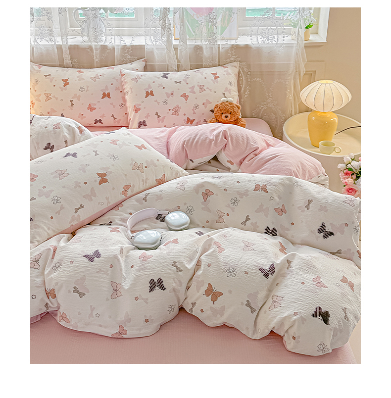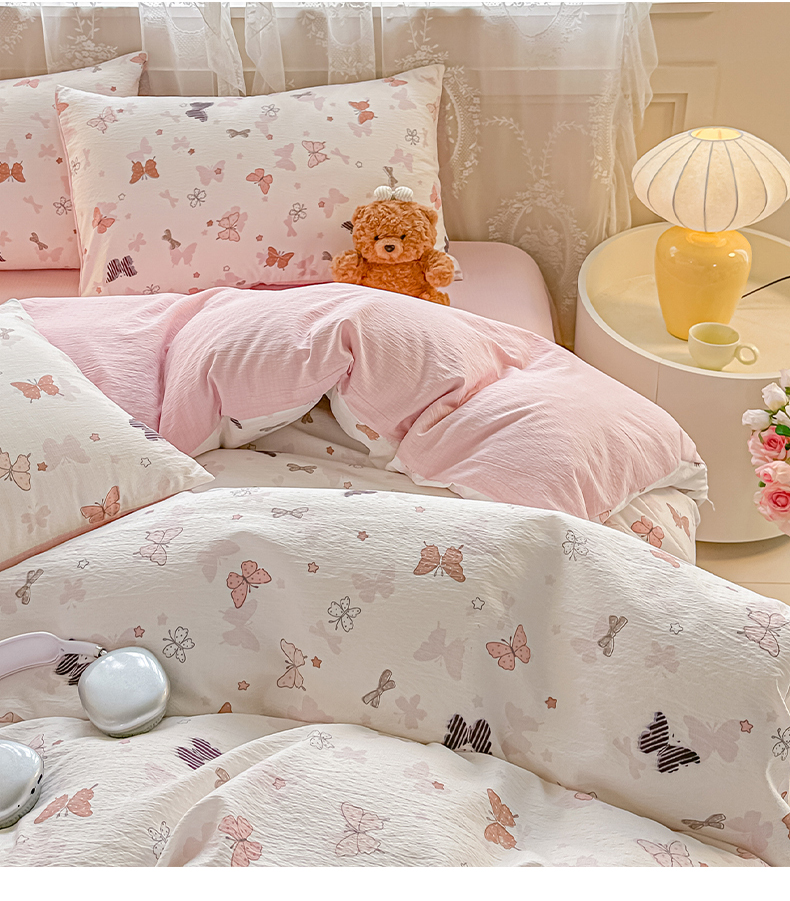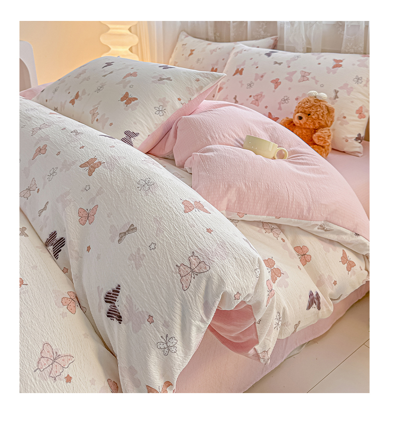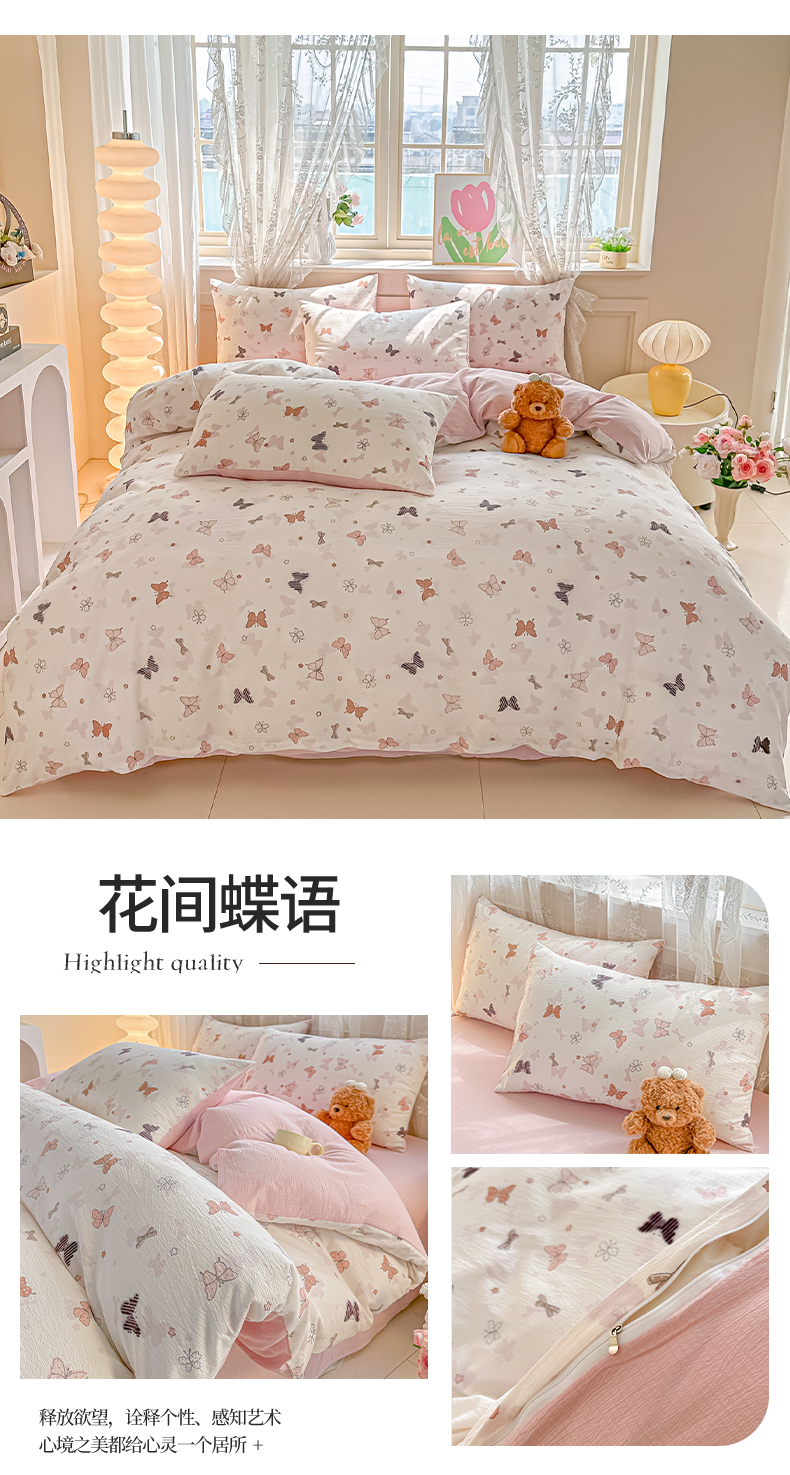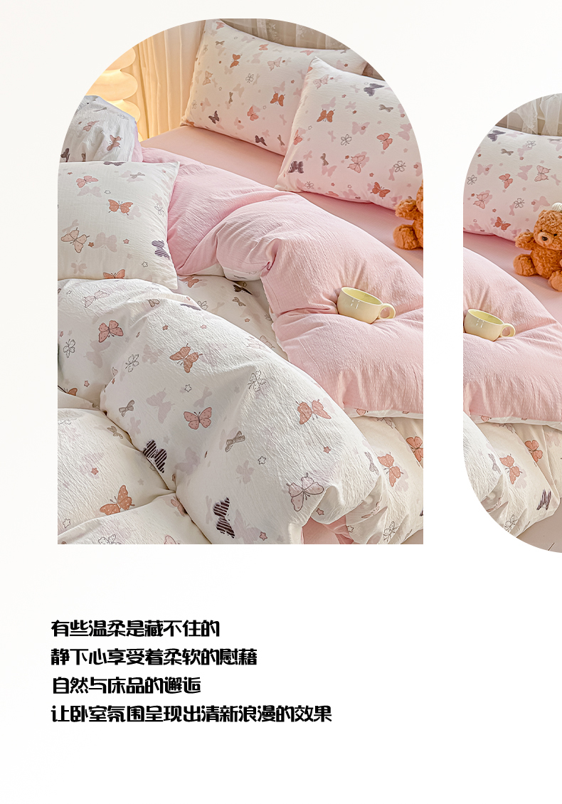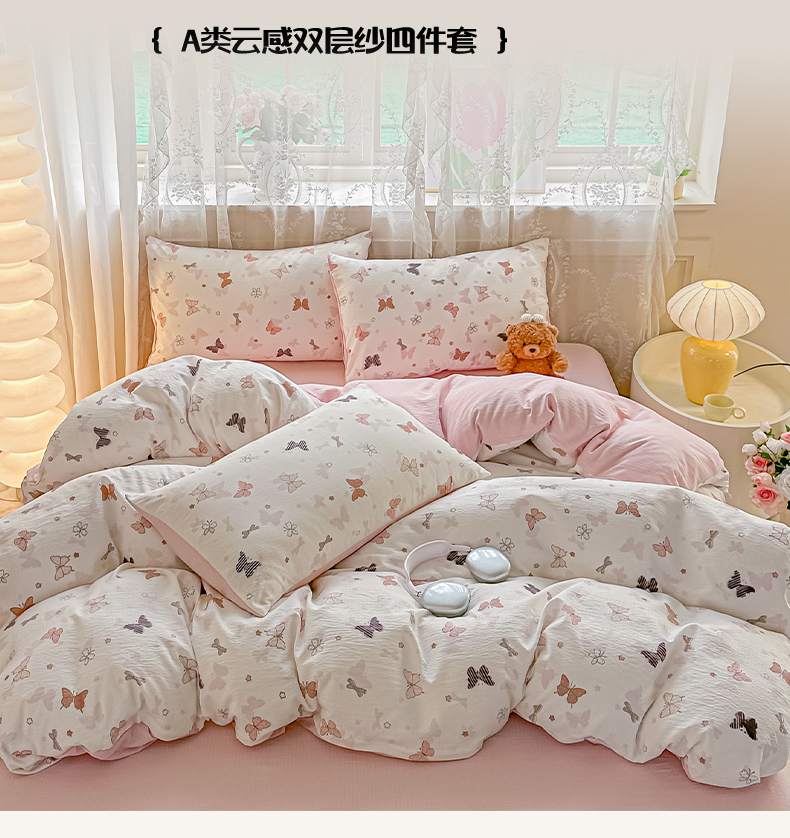 当前位置: 91家纺网 > 商品网购 > 床品套件 > 四件套 > 其它四件套 > 侯先生家纺新款直播爆款云感双层纱皱皱纱四件套小清新水洗棉床笠 花间蝶语