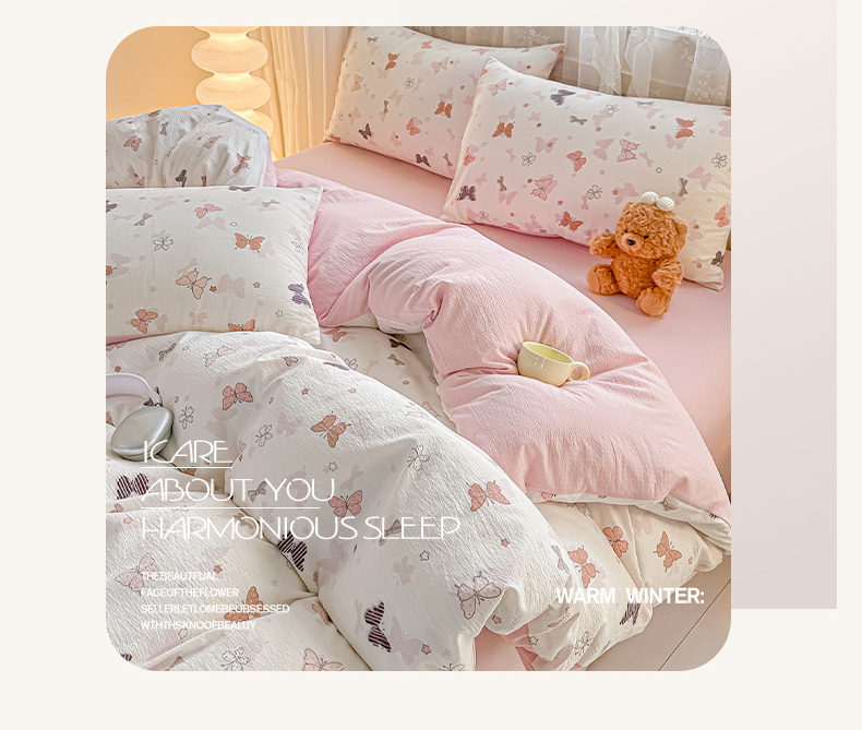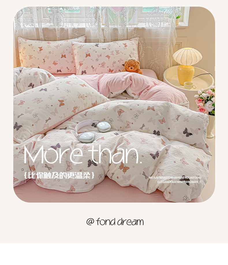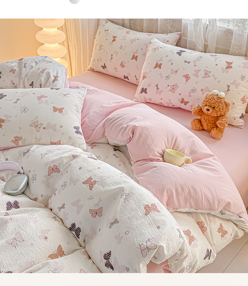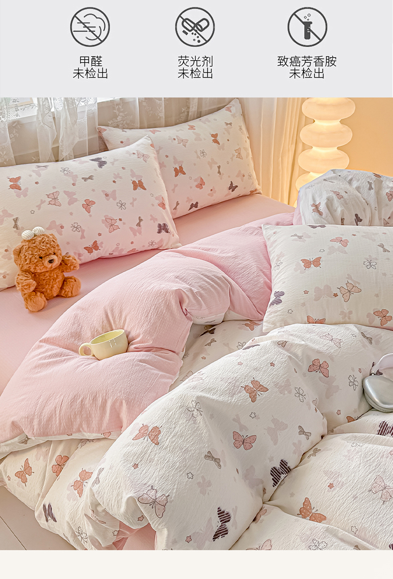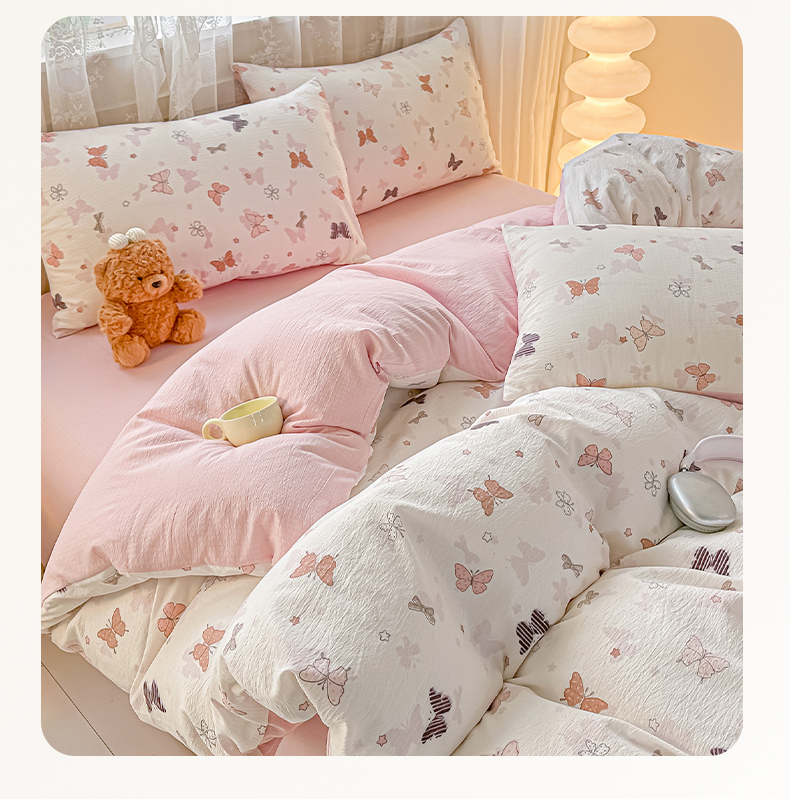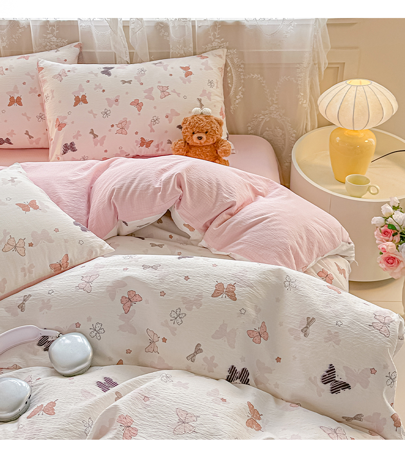 当前位置: 91家纺网 > 商品网购 > 床品套件 > 四件套 > 其它四件套 > 侯先生家纺新款直播爆款云感双层纱皱皱纱四件套小清新水洗棉床笠 花间蝶语