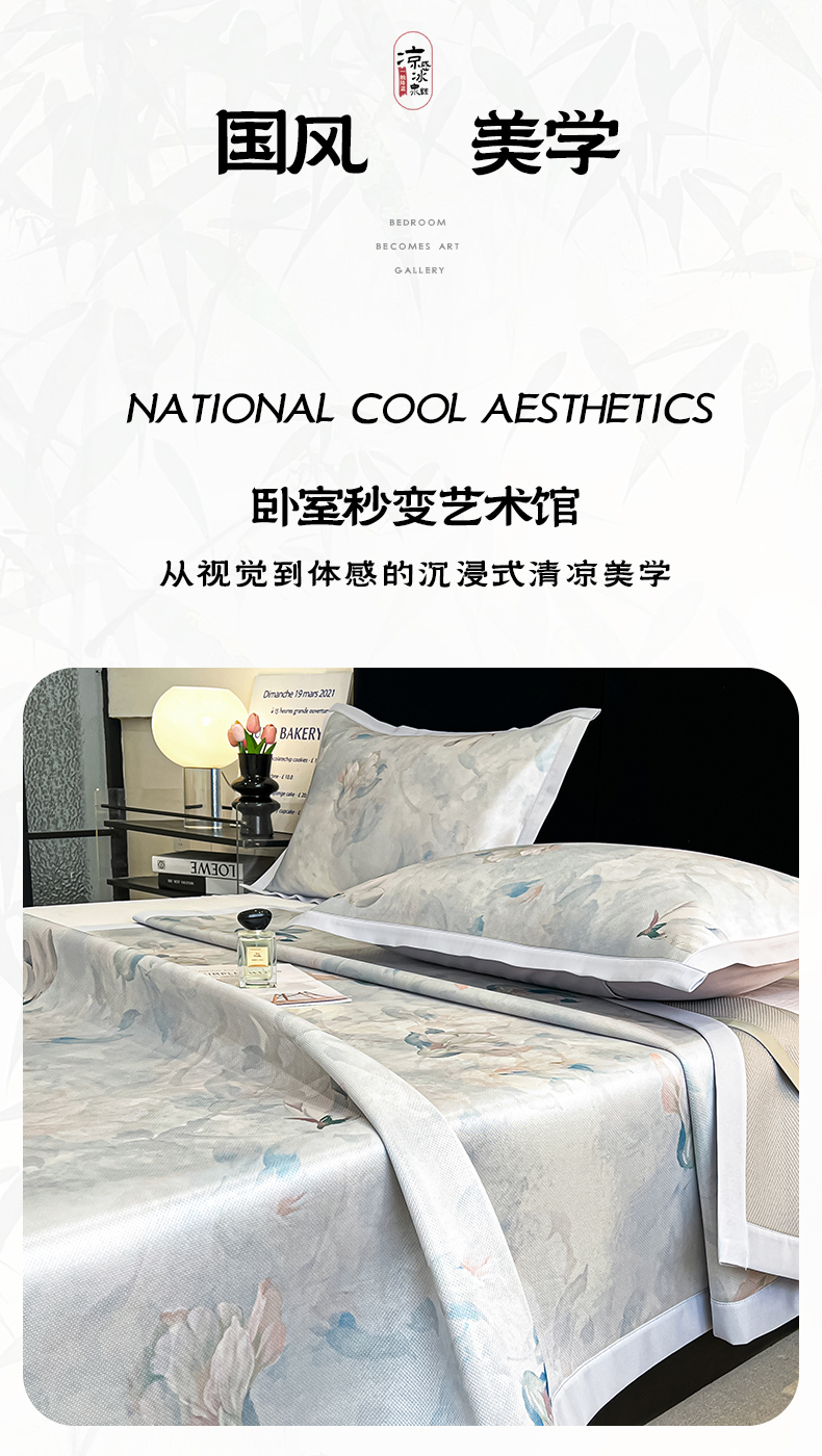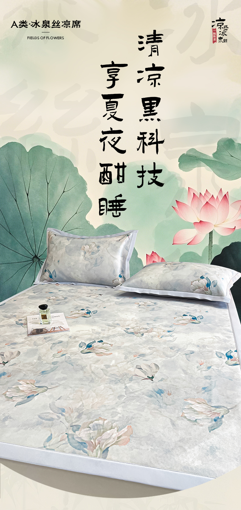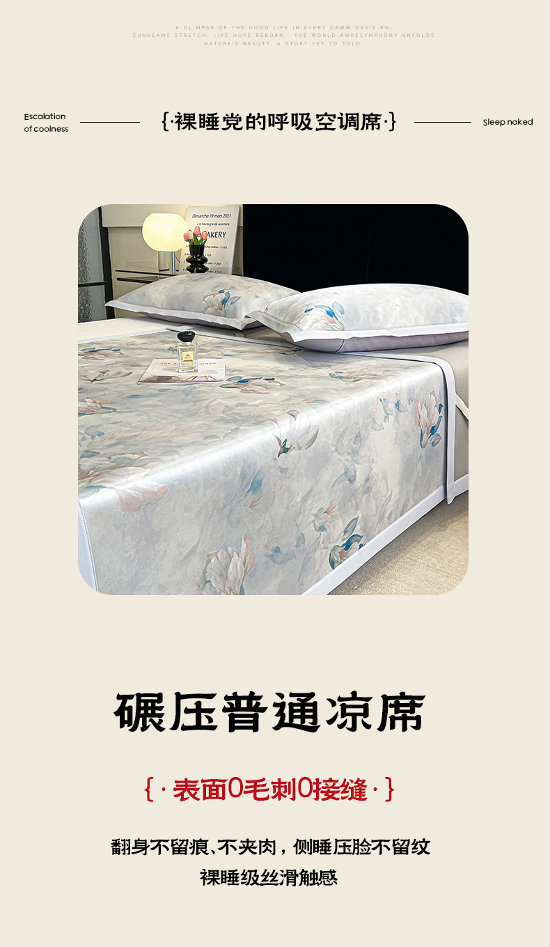(总)倾慕家纺 2026新款A类数码印花冰泉丝凉席,蝴蝶之舞粉,蝴蝶之舞绿,花艺绿,摩尼粉,摩尼紫,水墨江南绿,素情,鲜花小镇,玉兰花绿,玉兰花紫,云梦海棠,竹潇潇绿,组合,玉兰雅韵蓝,玉兰雅韵青