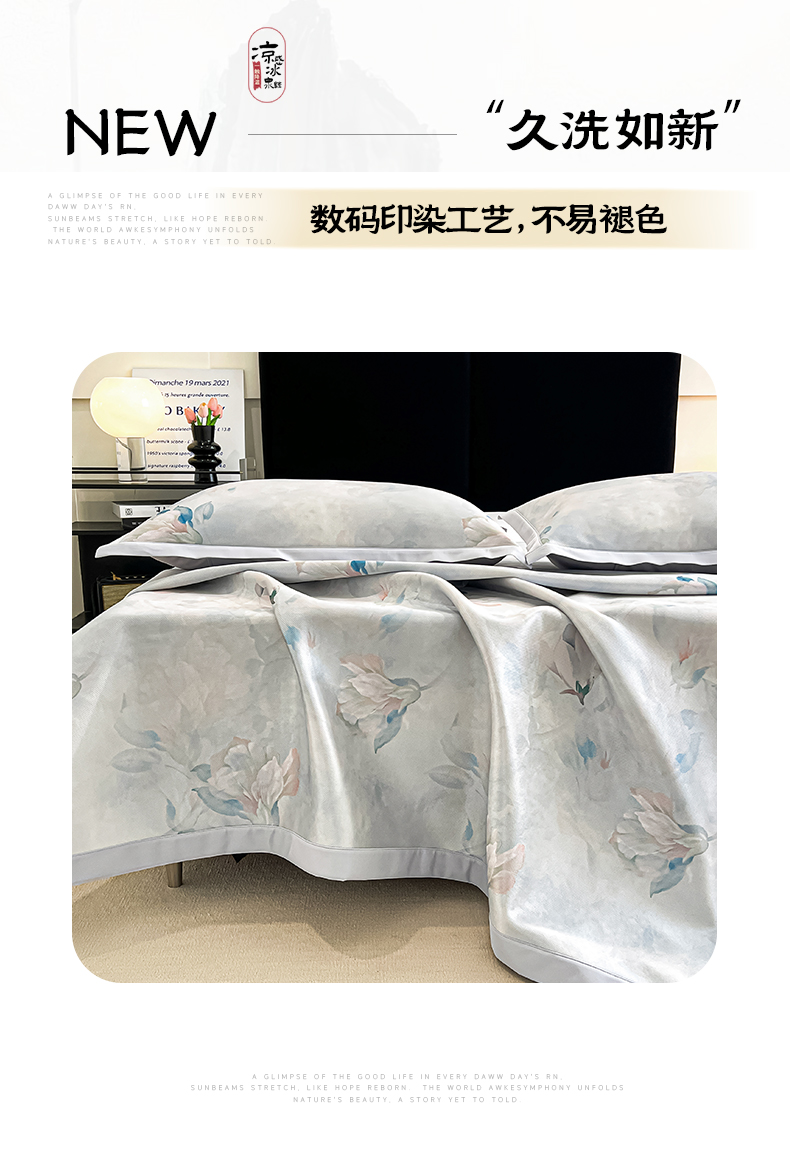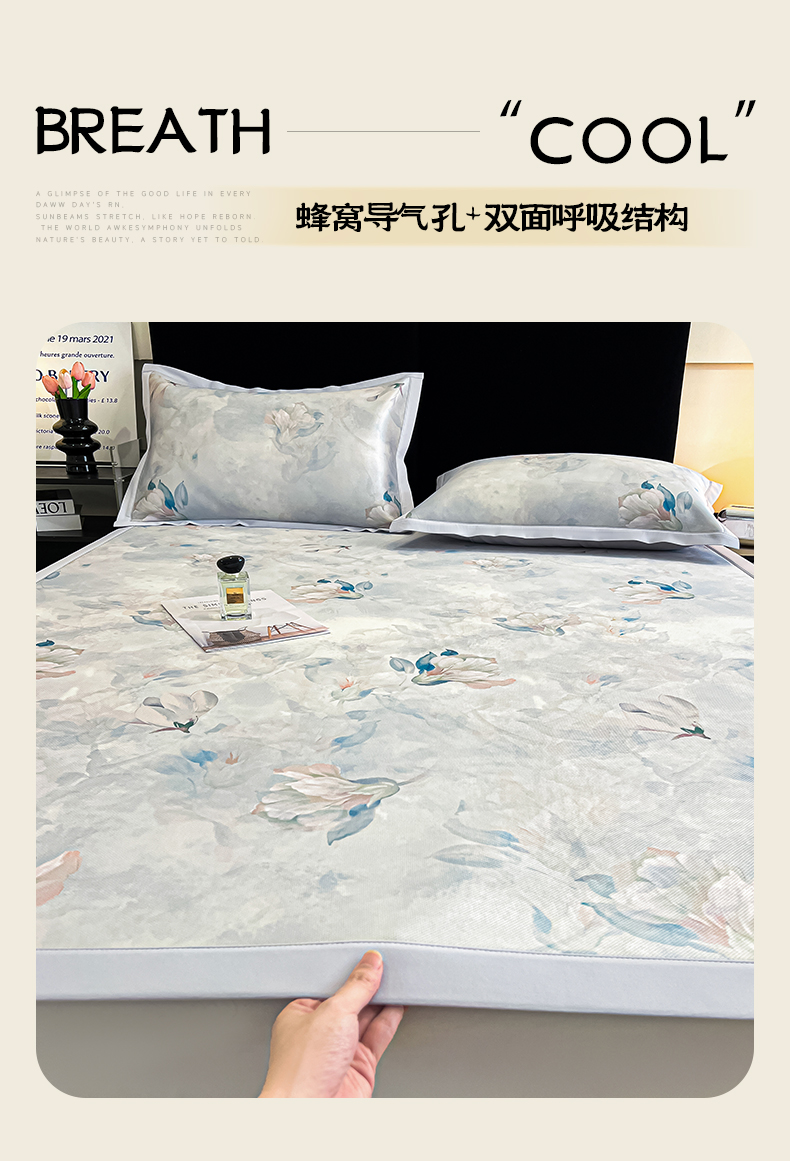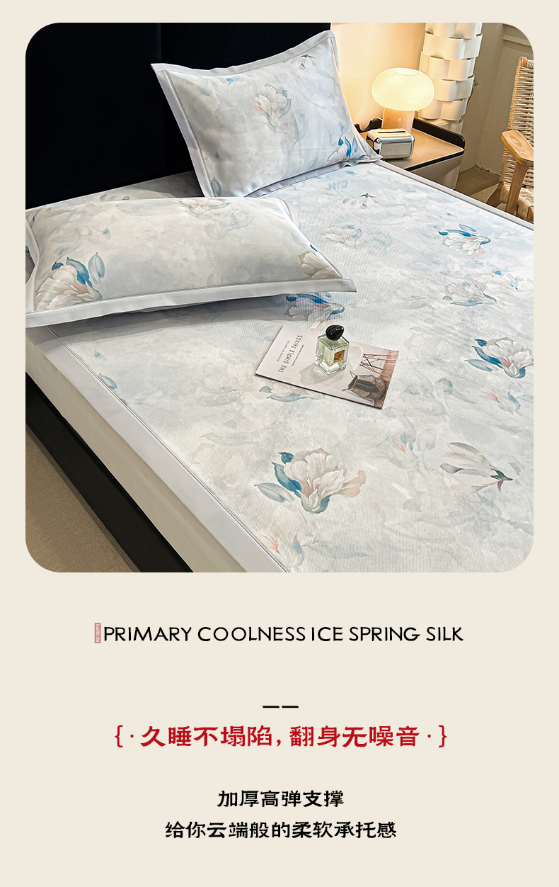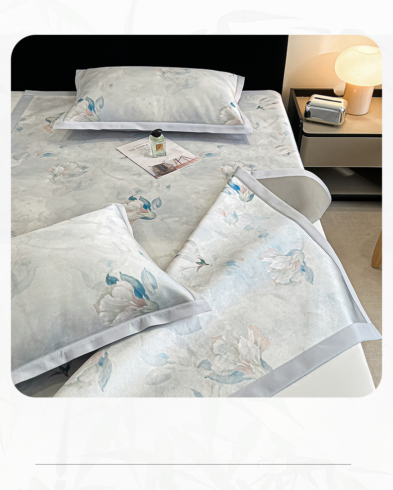 倾慕家纺 2026新款A类数码印花冰泉丝凉席 玉兰雅韵蓝