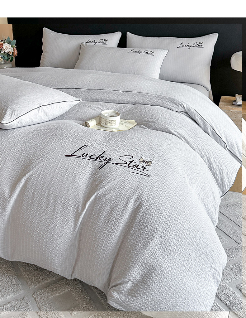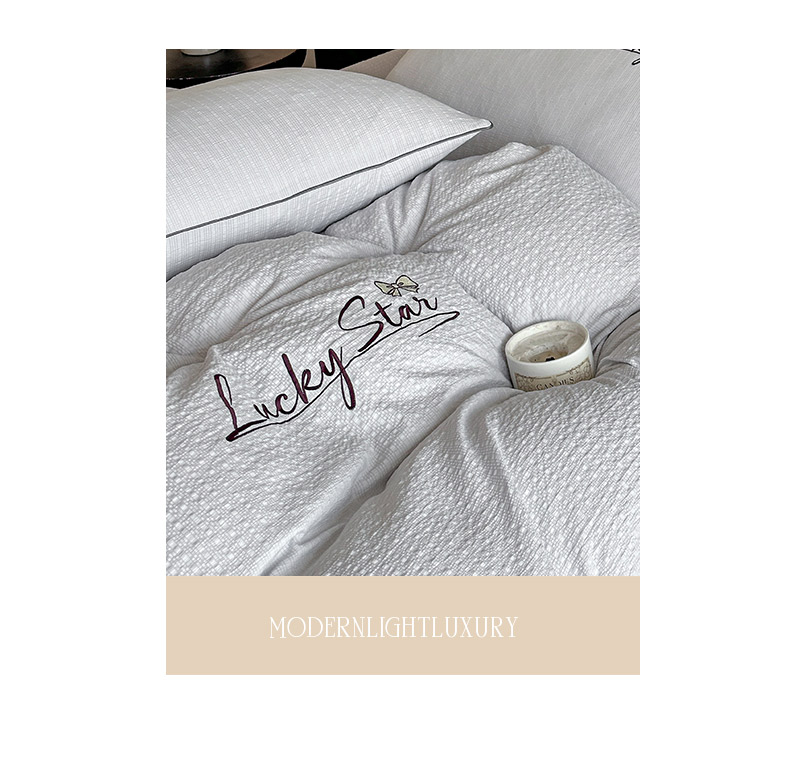 利欧 2026新款水洗棉四件套提花四件套刺绣四件套-幸运 幸运灰