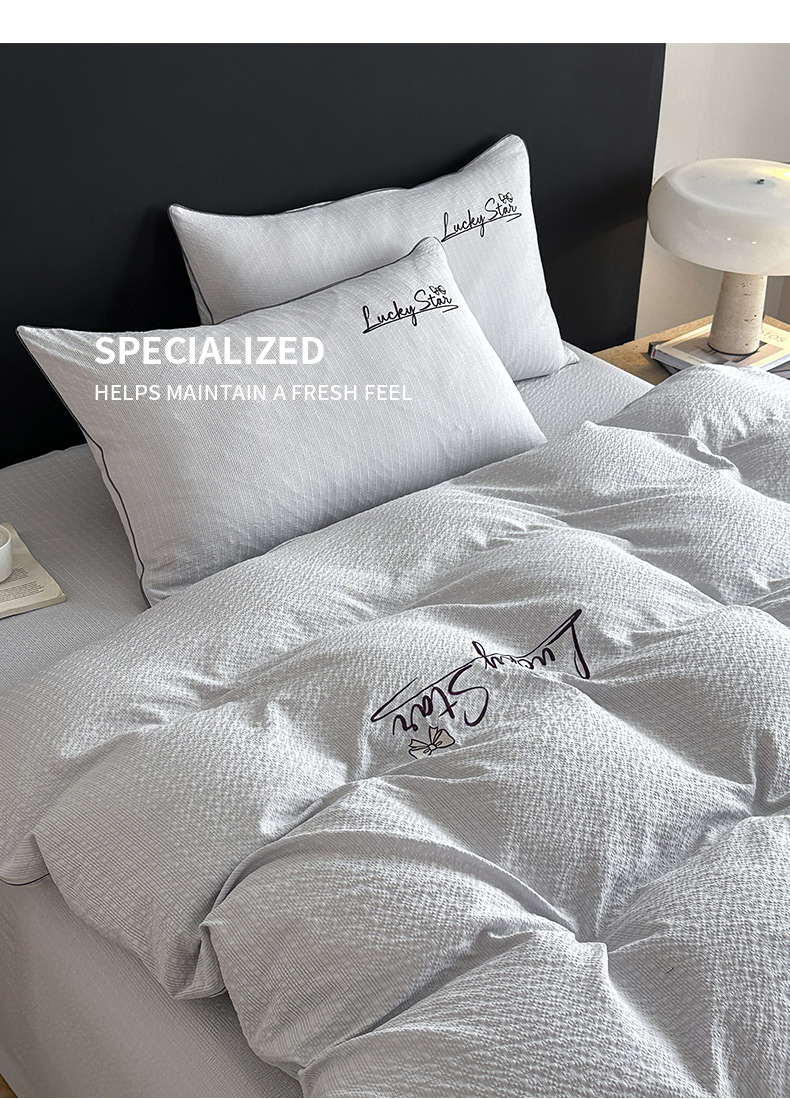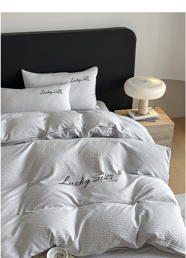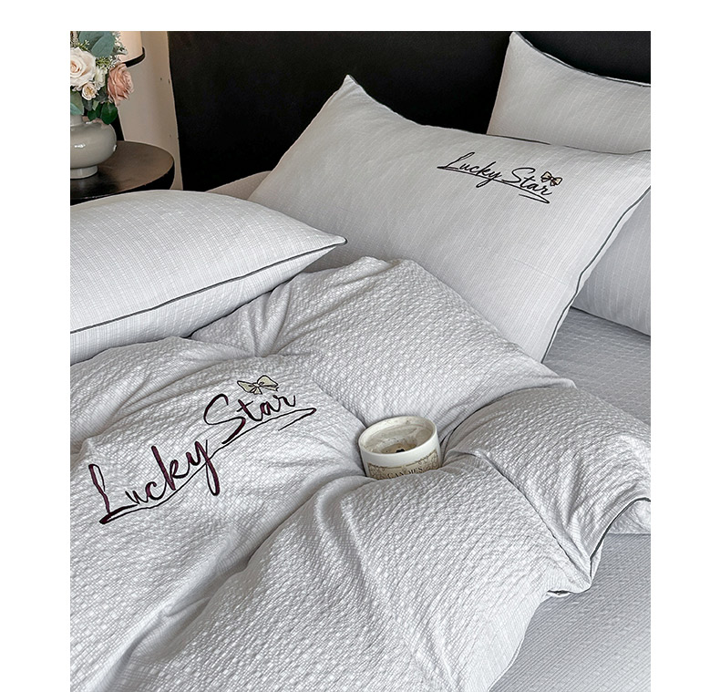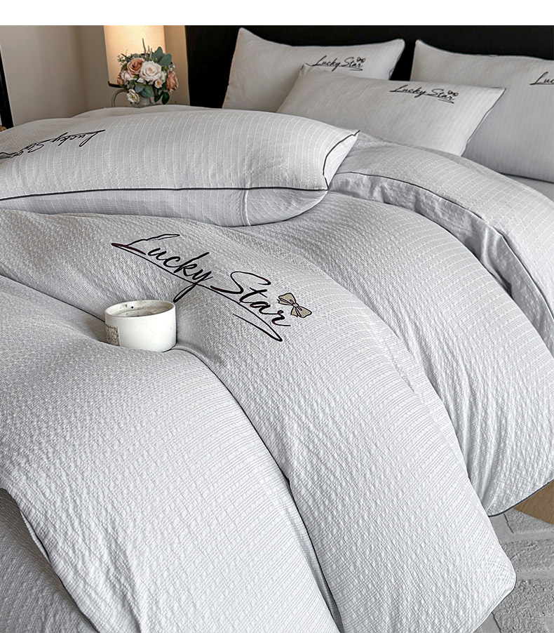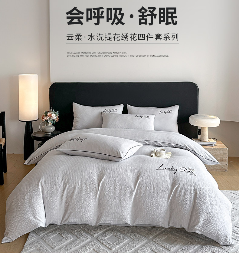 商品名称:利欧 2026新款水洗棉四件套提花四件套刺绣四件套-幸运 幸运灰
