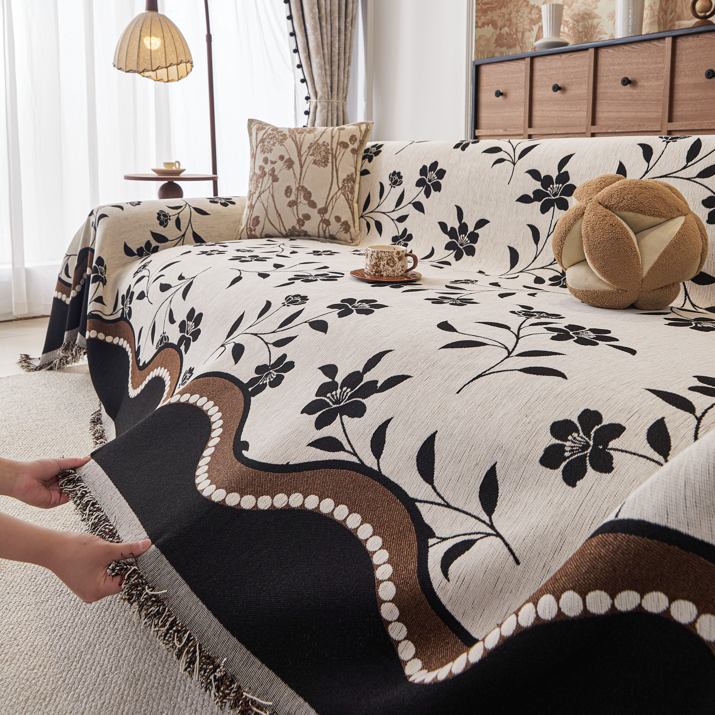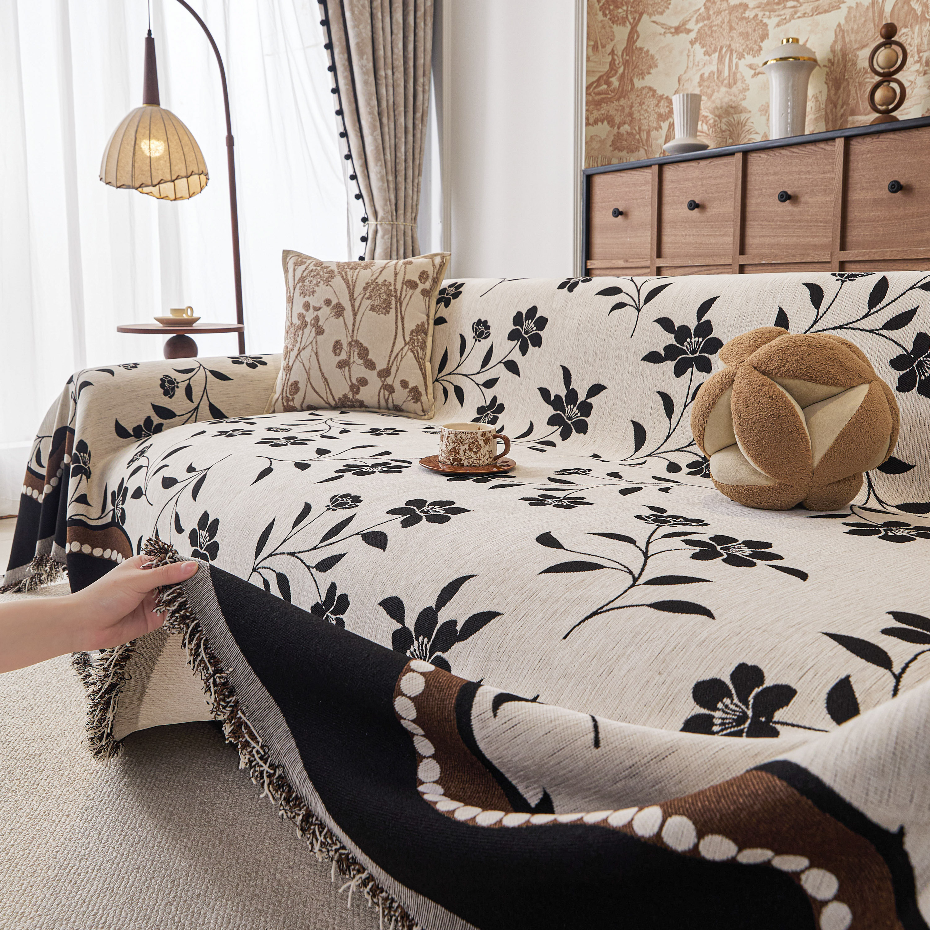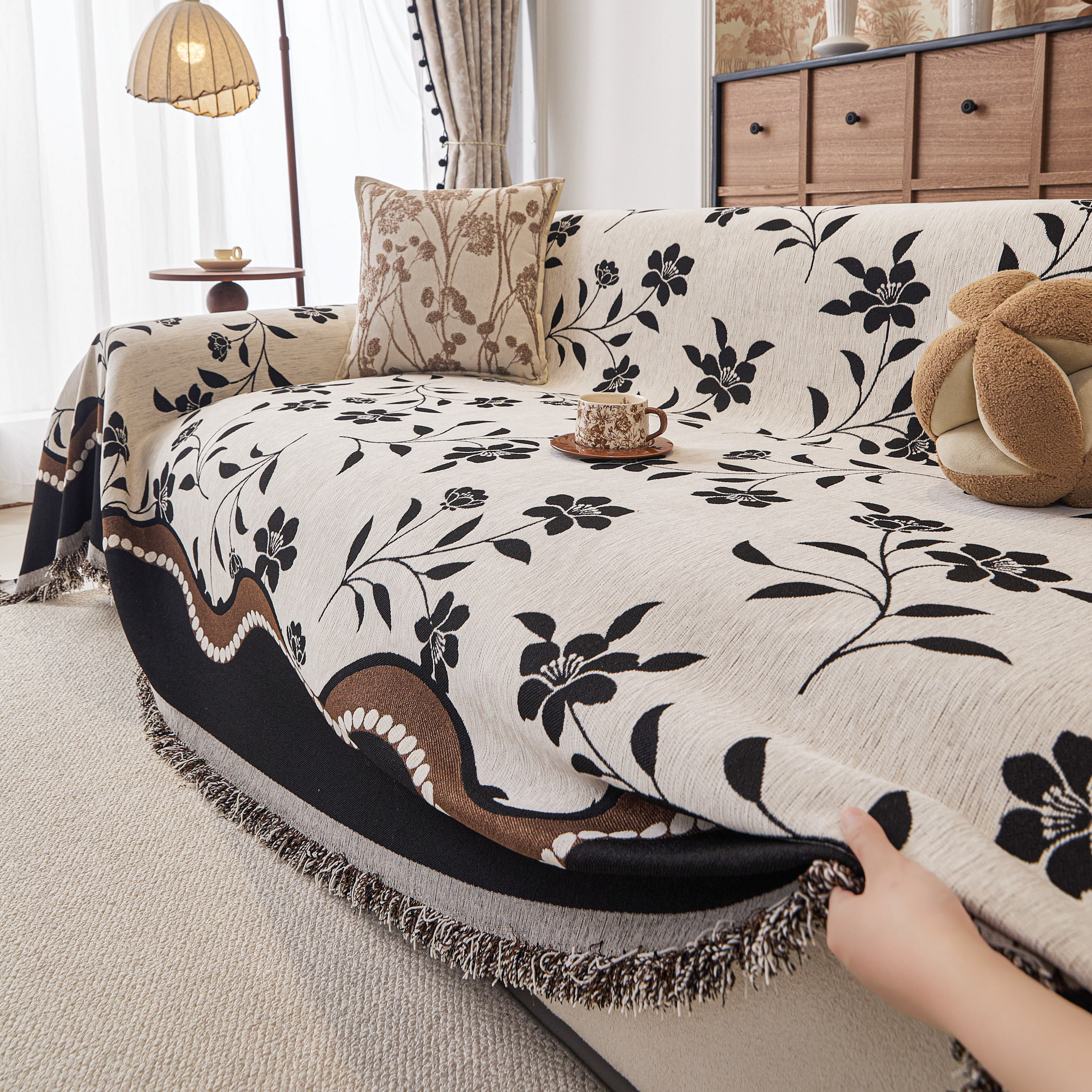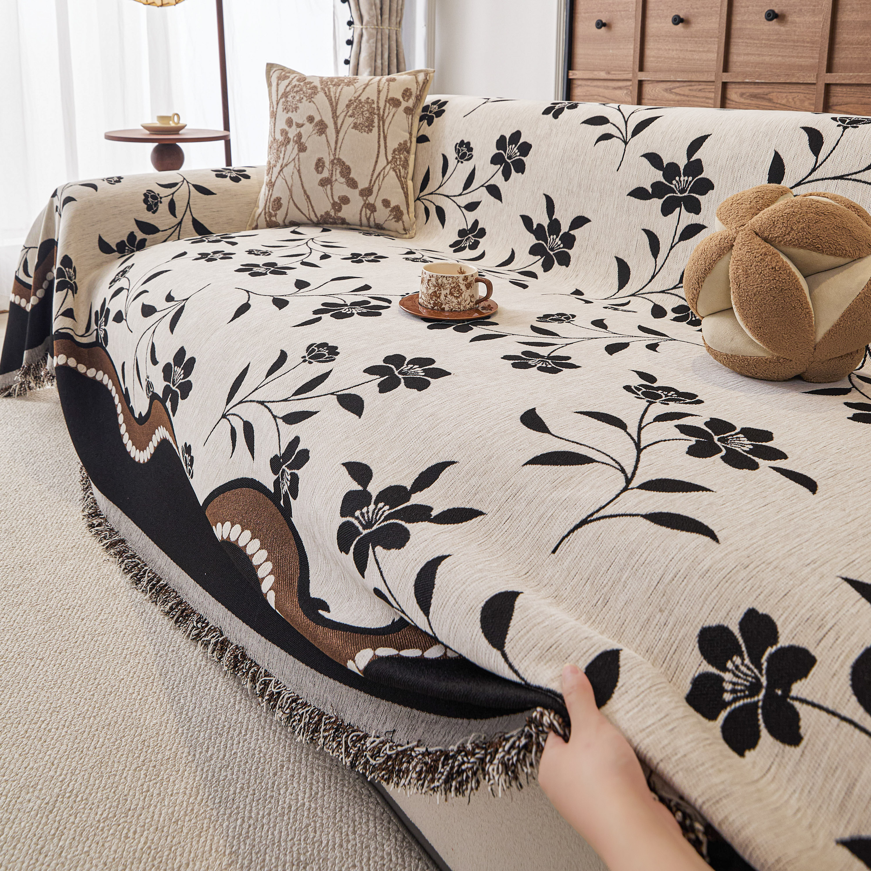 当前位置: 91家纺网 > 商品网购 > 居家布艺 > 坐垫/椅垫/沙发垫 > 沙发垫 > 逐日沙发套 2026新款加厚雪尼尔-沙发巾 黑影繁花