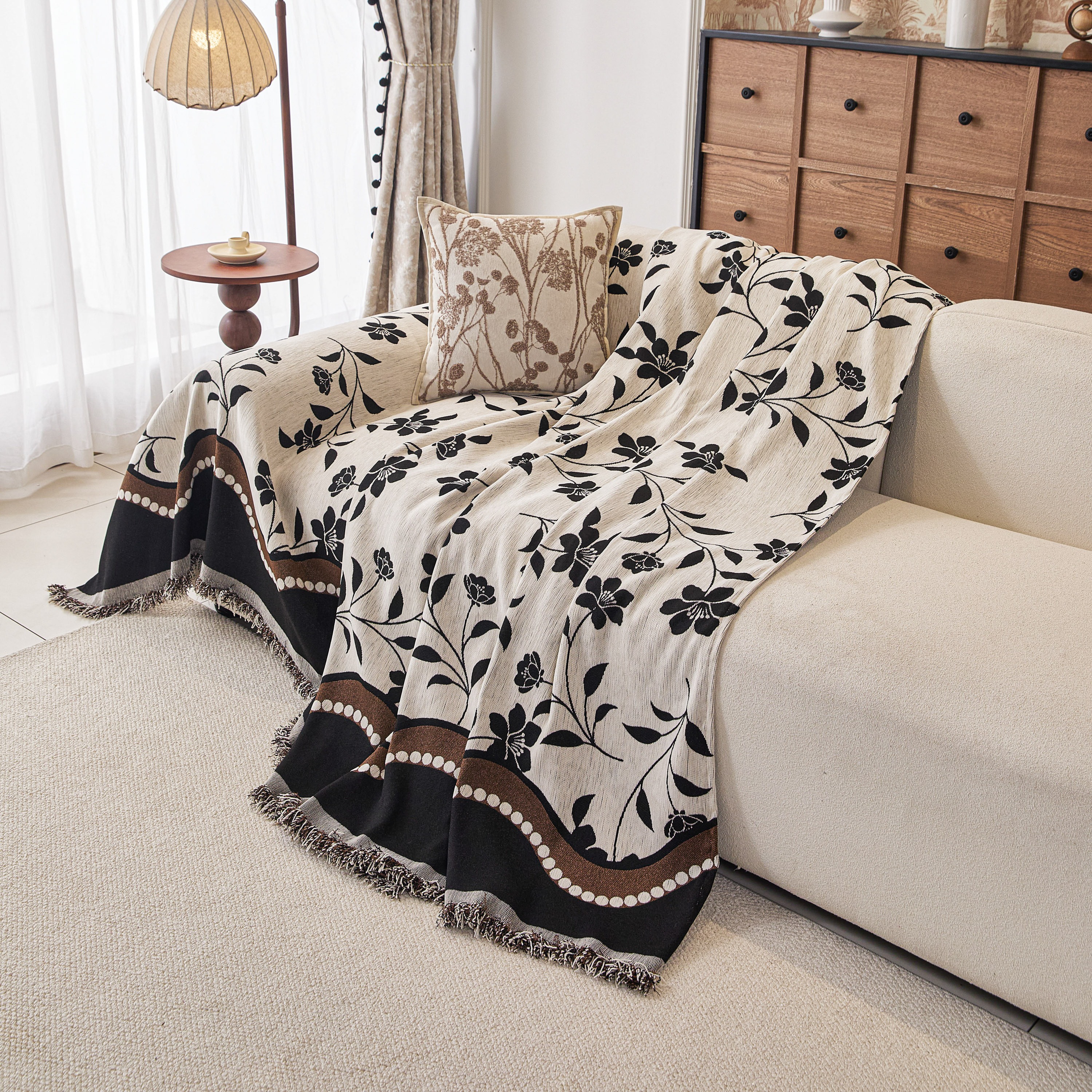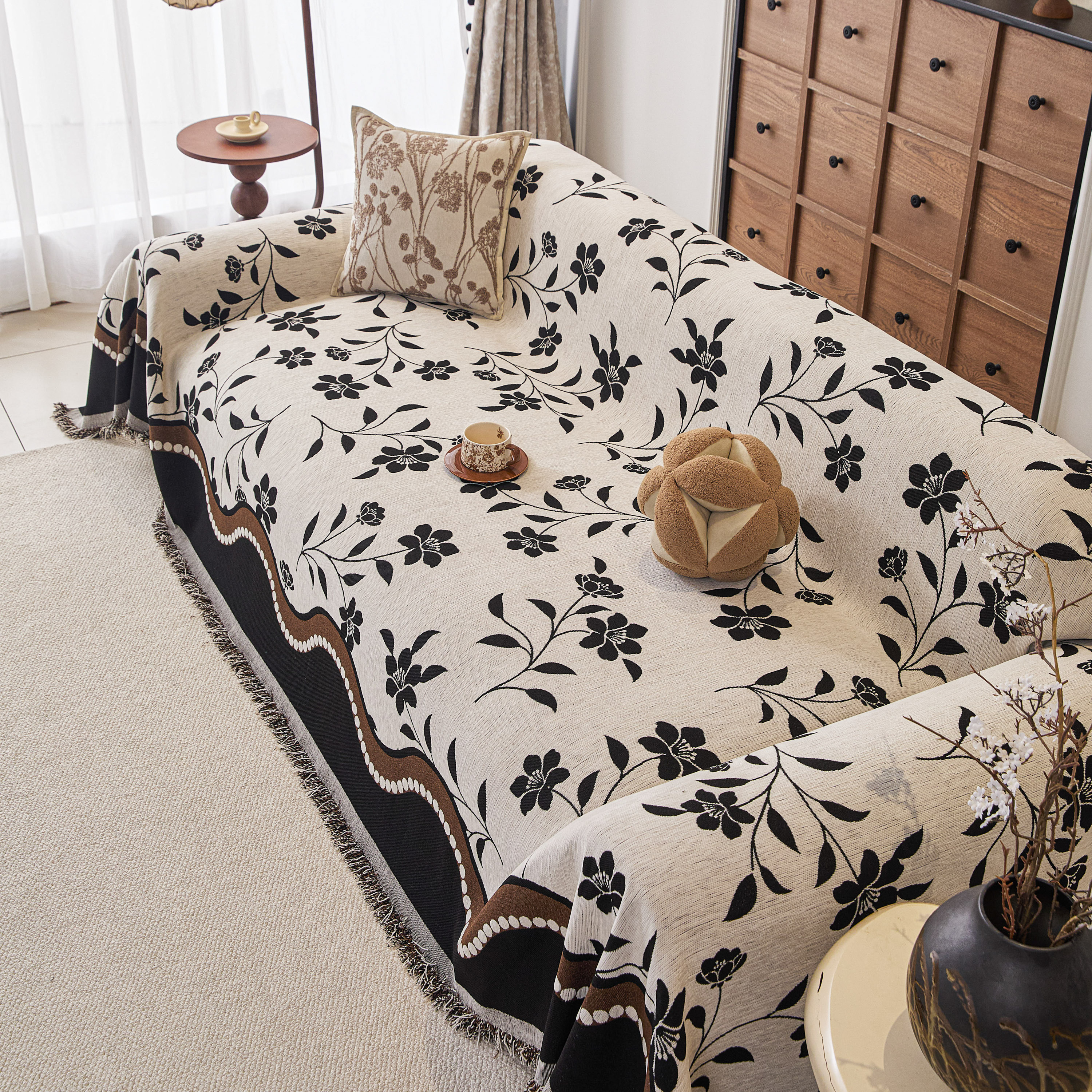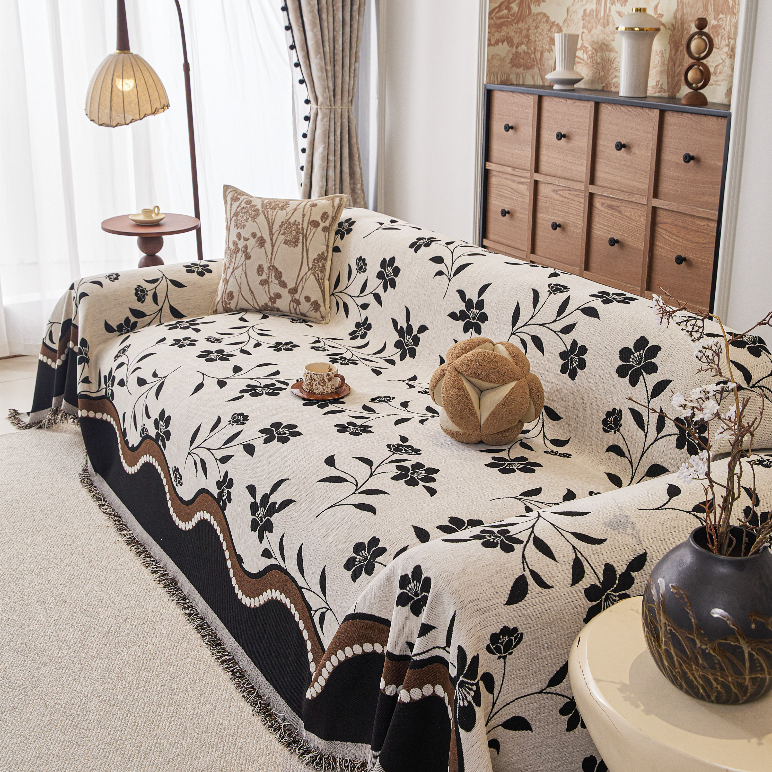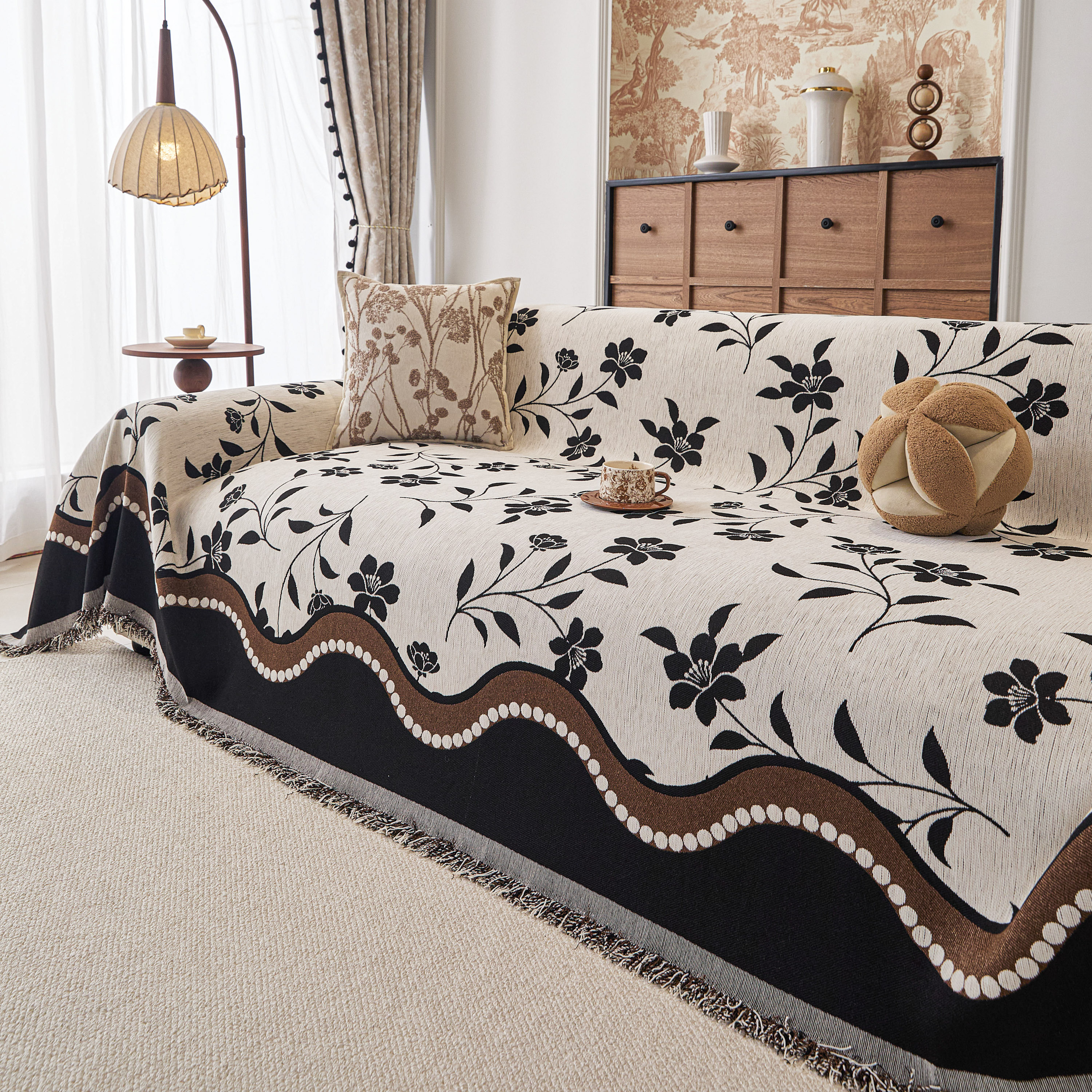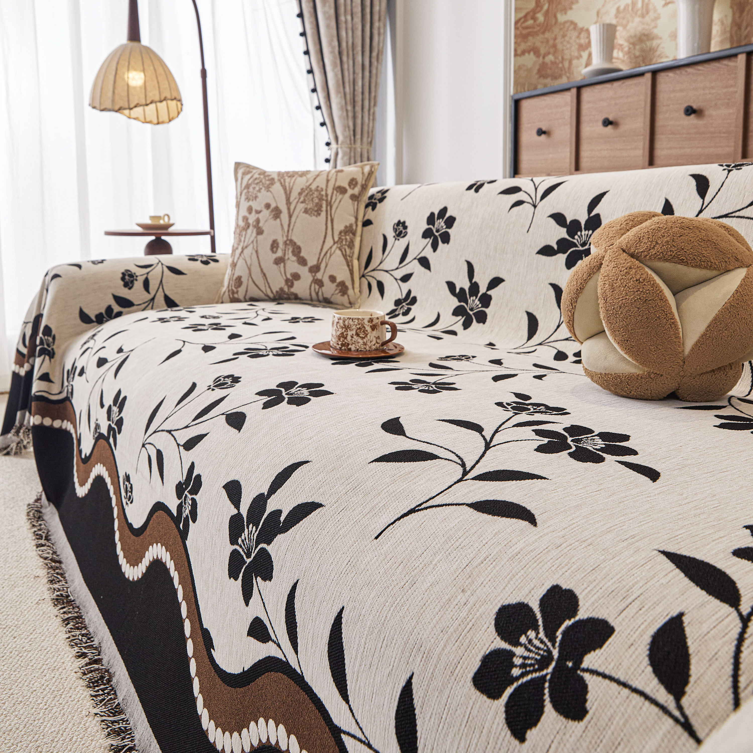 当前位置: 91家纺网 > 商品网购 > 居家布艺 > 坐垫/椅垫/沙发垫 > 沙发垫 > 逐日沙发套 2026新款加厚雪尼尔-沙发巾 黑影繁花
