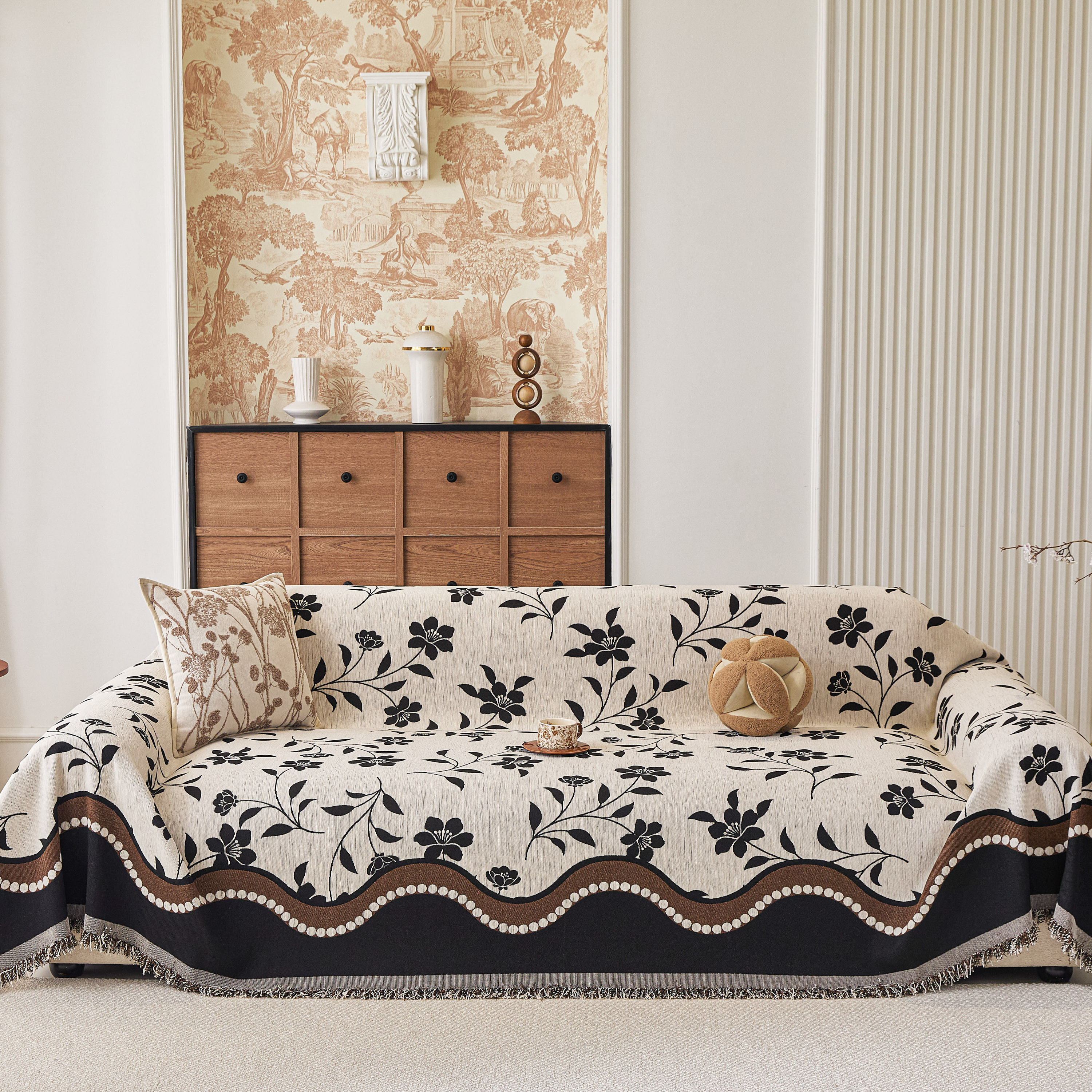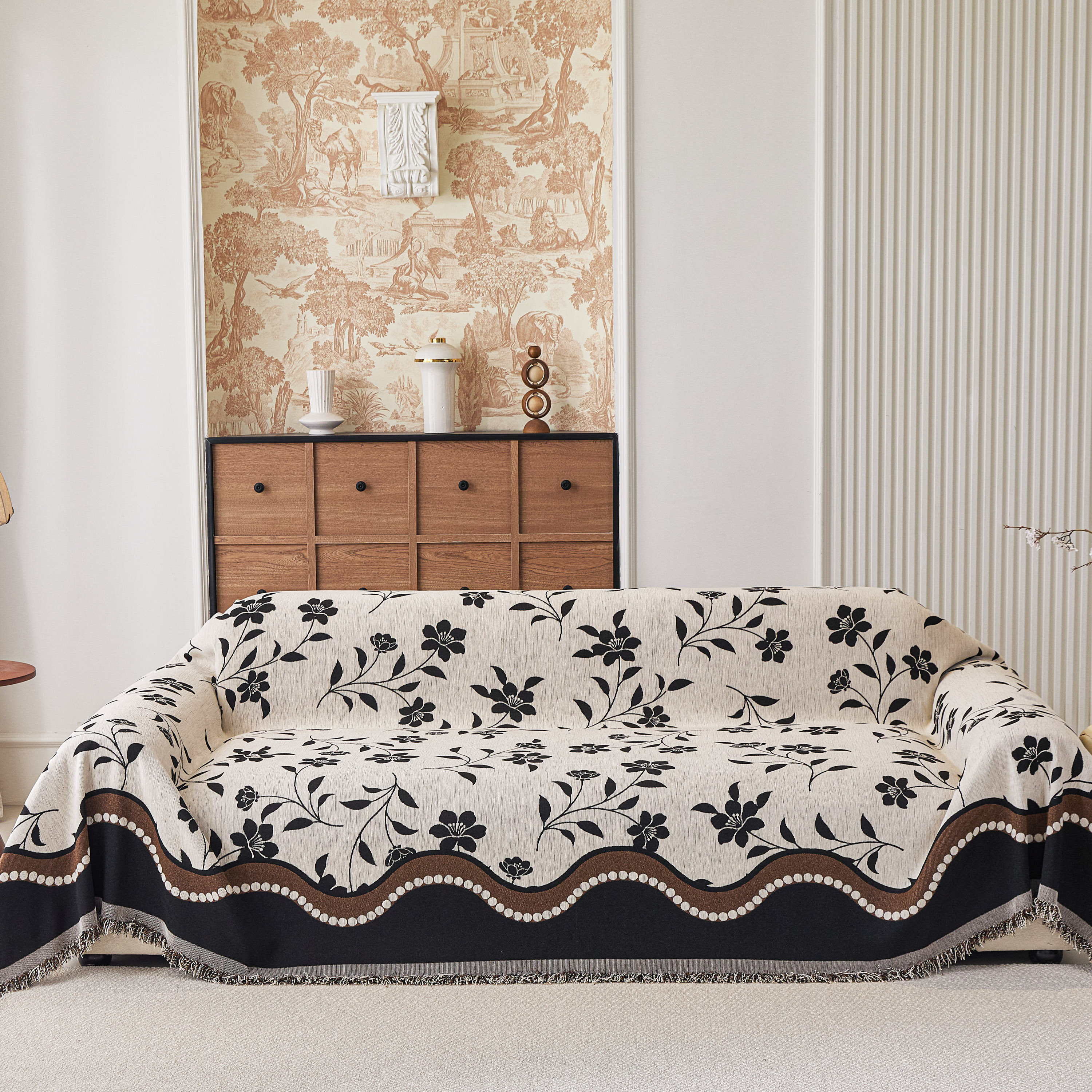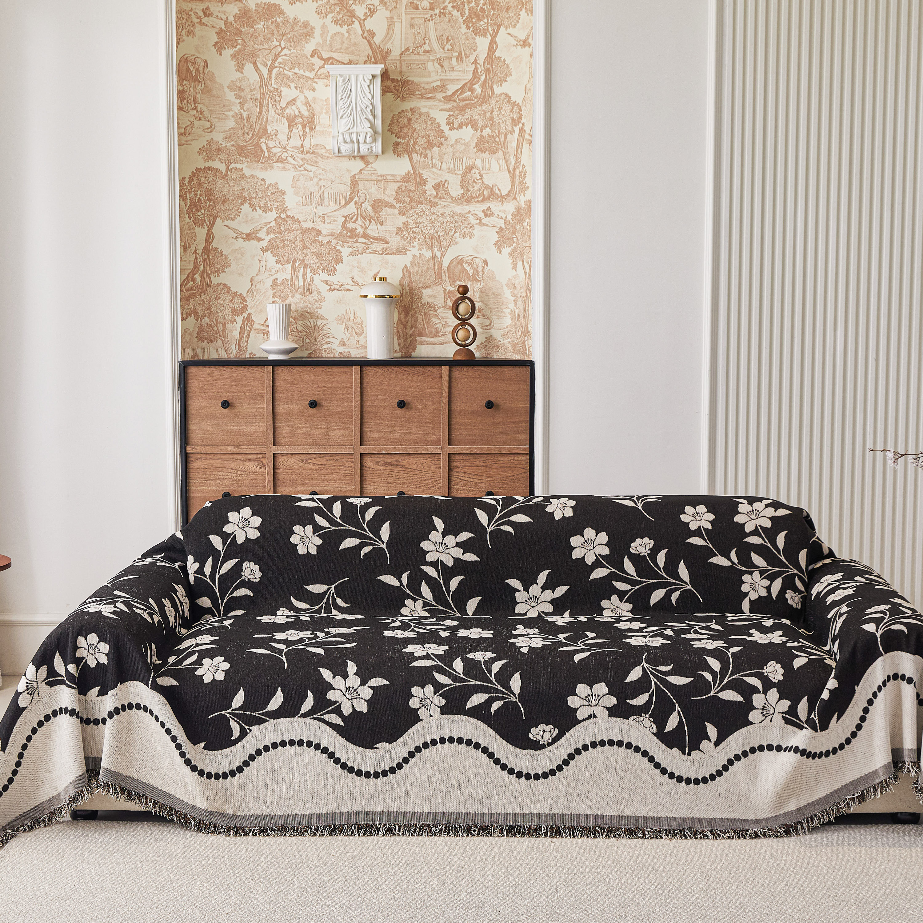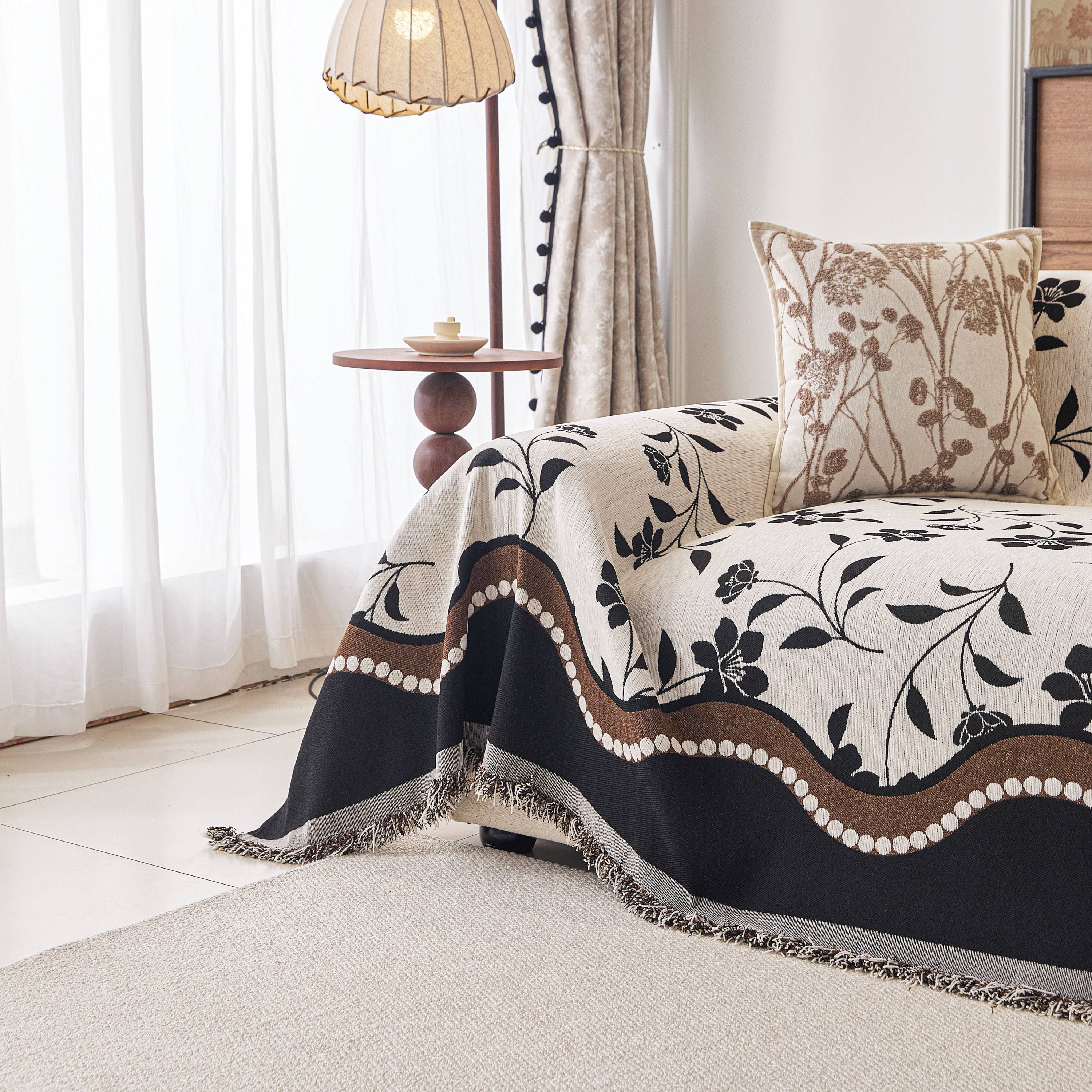 当前位置: 91家纺网 > 商品网购 > 居家布艺 > 坐垫/椅垫/沙发垫 > 沙发垫 > 逐日沙发套 2026新款加厚雪尼尔-沙发巾 黑影繁花