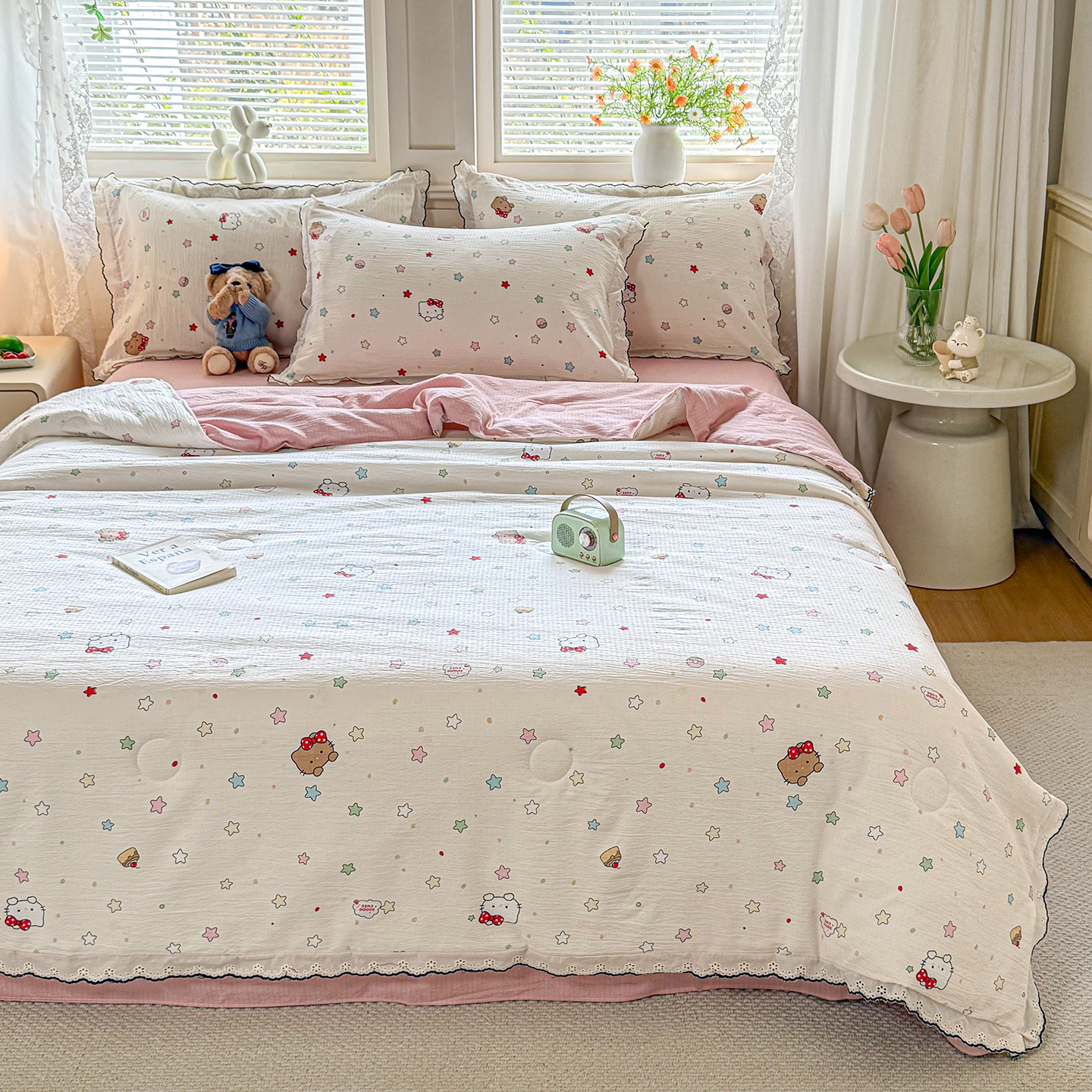 (总)梦纤绒 2026新款法式全棉花边夏被夏凉被空调被四件套,星织甜梦,豆蔻,蔷薇花,半岛玫瑰,粉黛,红樱桃,花间语,米朵,莫奈花园,奶狗乐园,浅夏,花园兔,童趣梦,星星人