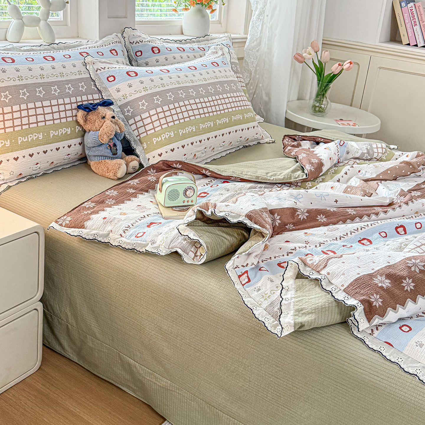 (总)梦纤绒 2026新款云感皱皱纱花边款夏被夏凉被空调被四件套,百福兰,春晓,可颂,太妃糖,小黑兔,春不晚,春日小熊,陌上花开,莫奈,若欢-绿,若欢紫色,舒芙蕾,田园拾趣-黄,兔小姐,郁金香小兔,波点小兔粉,波点小兔兰,情人节,十里桃花粉,十里桃花紫,夏天,运动健将熊,白茶-绿,桃花诺,白月光,缤纷几何,格格西高地,海盐蓝小格,黎漫,木槿绿,奶油泡芙,欧若拉,桃夭,甜茶,小晴天,芋泥紫小格,紫色蝴蝶结,心意,心意紫,小美满,乖乖象,一束温柔,半夏,春风里,豆蔻,蝴蝶梦,兰黛,山野栀子,素颜,微凉薄荷,心动,遇见,芝士奶酪,紫爱心,紫苏,花园兔,蜡笔画,初恋,莱茵河畔