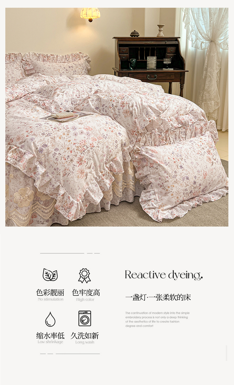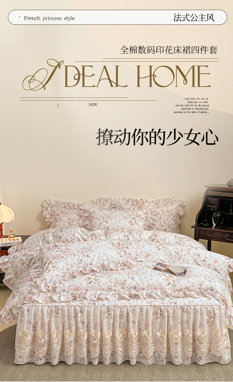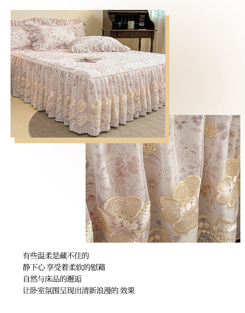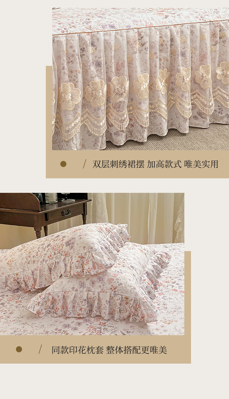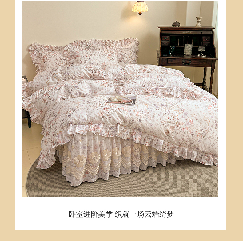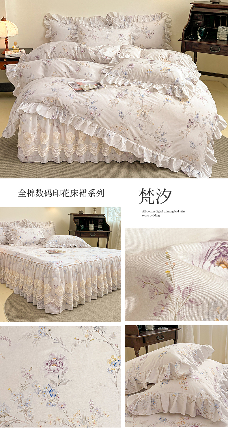 当前位置: 91家纺网 > 商品网购 > 床品套件 > 四件套 > 全棉普通四件套 > 宜凡家纺 2026新款全棉数码印花单层床裙四件套③号系列 漫枝
