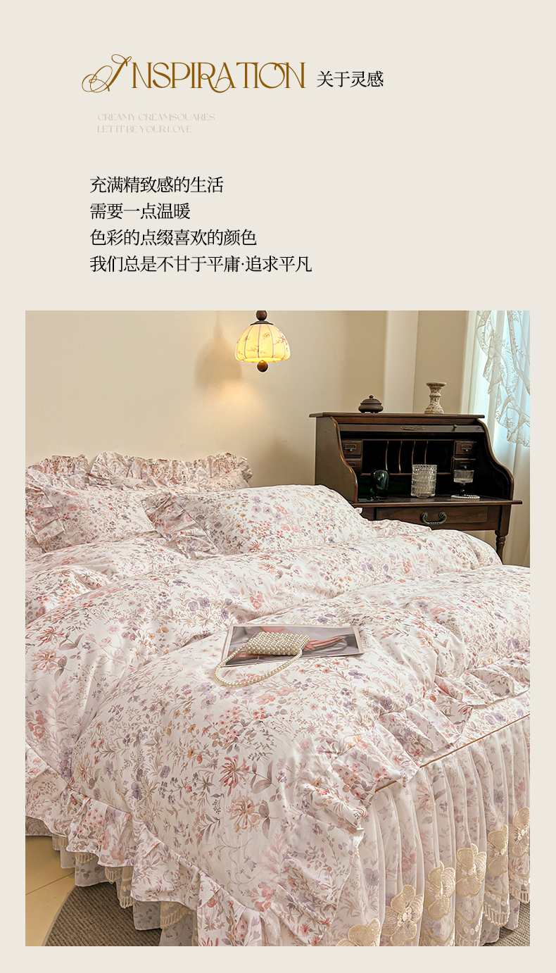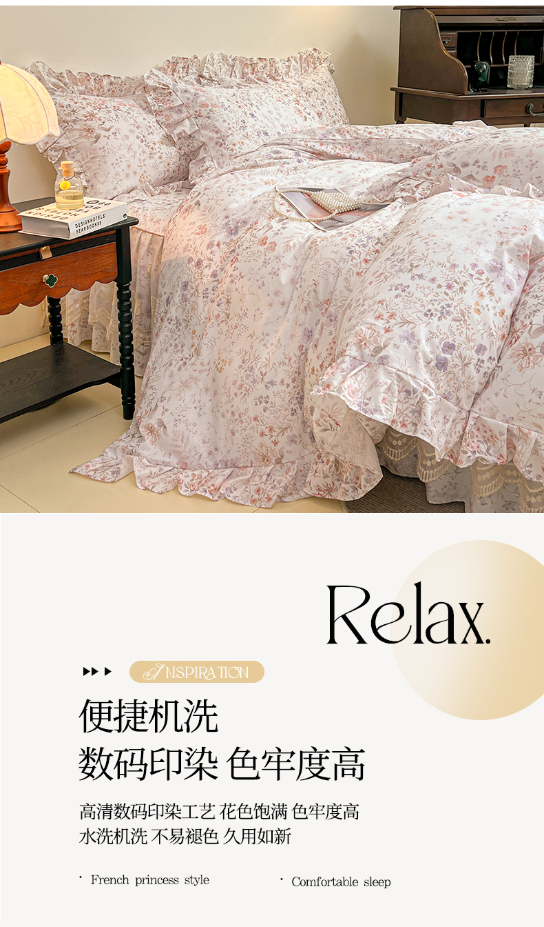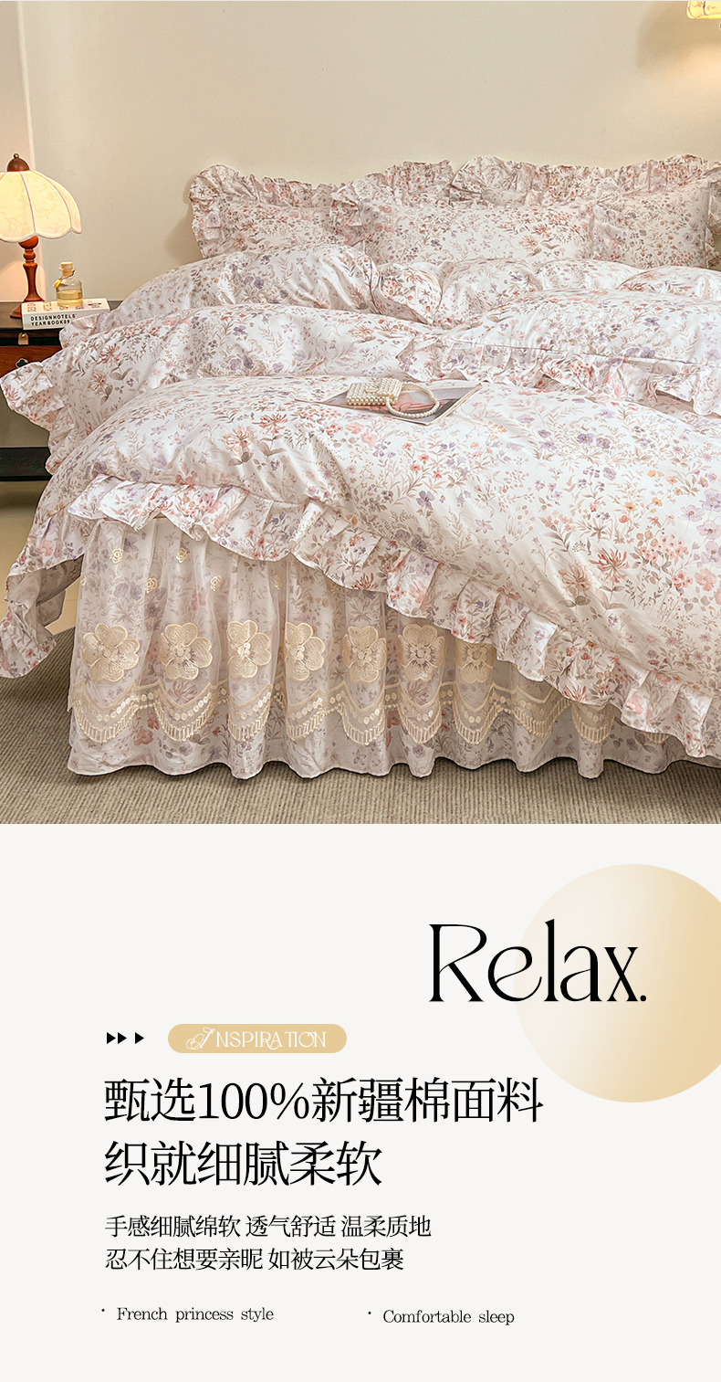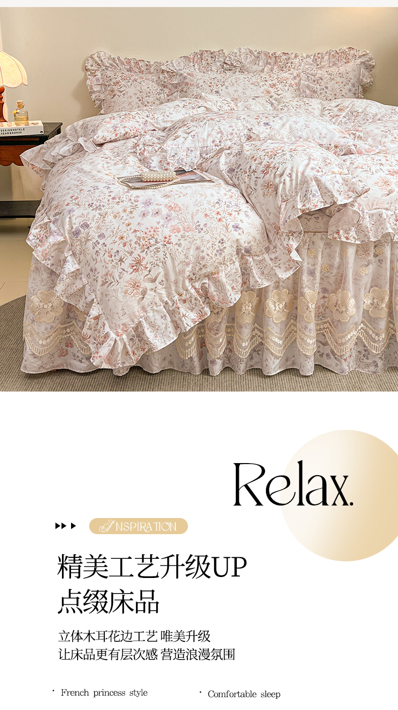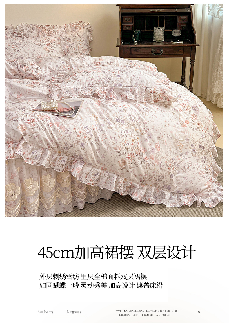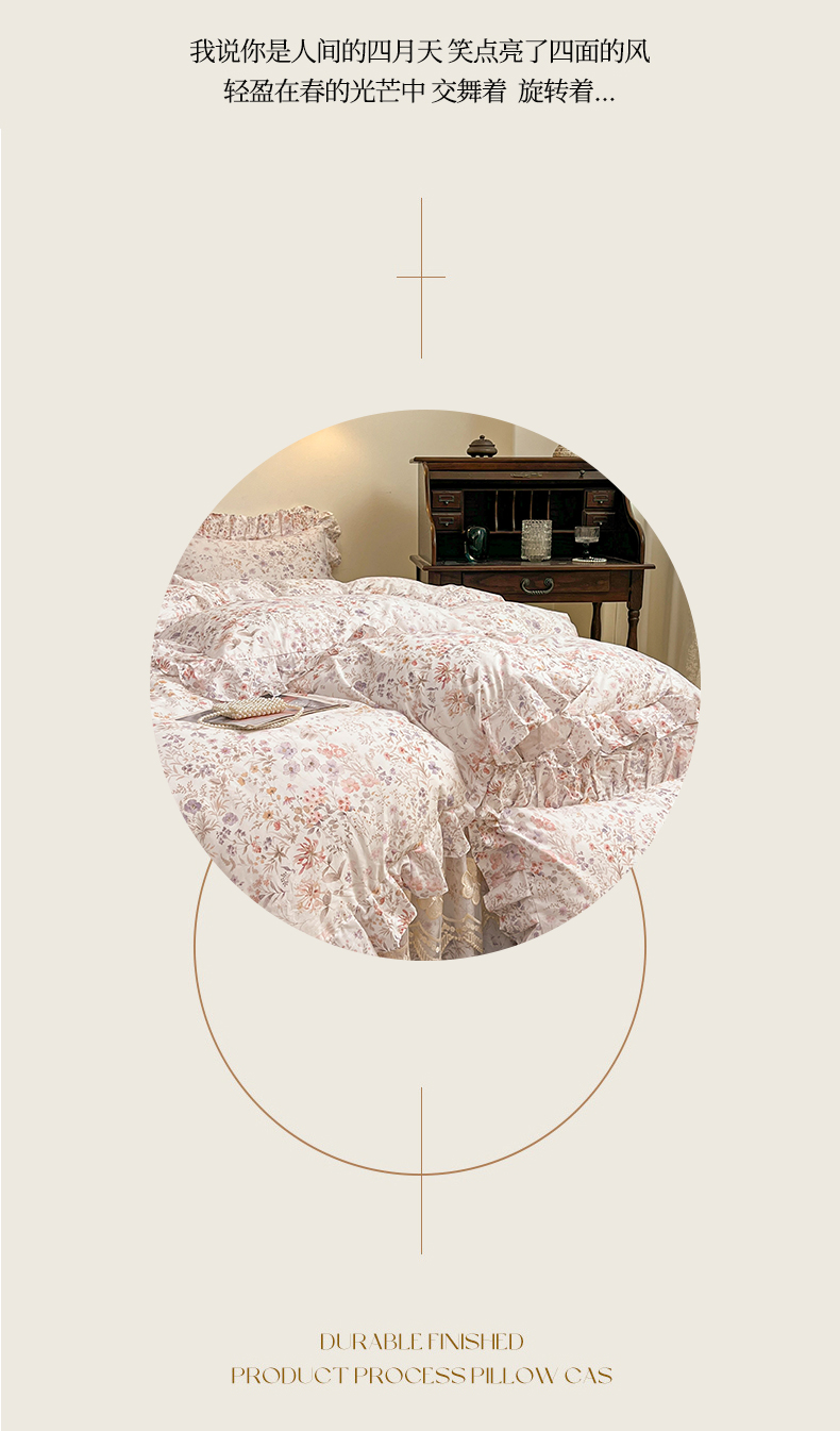 当前位置: 91家纺网 > 商品网购 > 床品套件 > 四件套 > 全棉普通四件套 > 宜凡家纺 2026新款全棉数码印花单层床裙四件套③号系列 漫枝