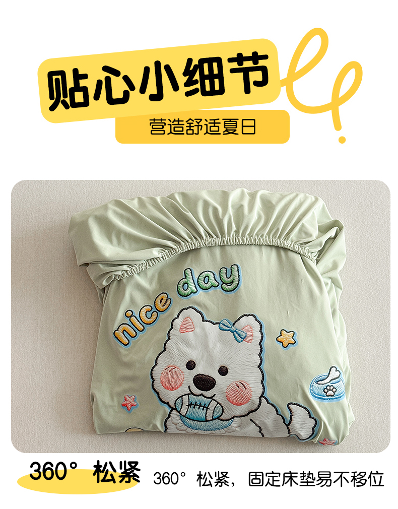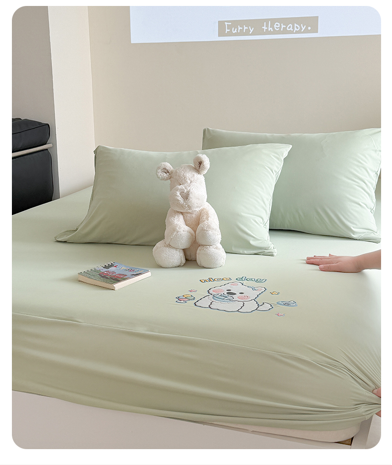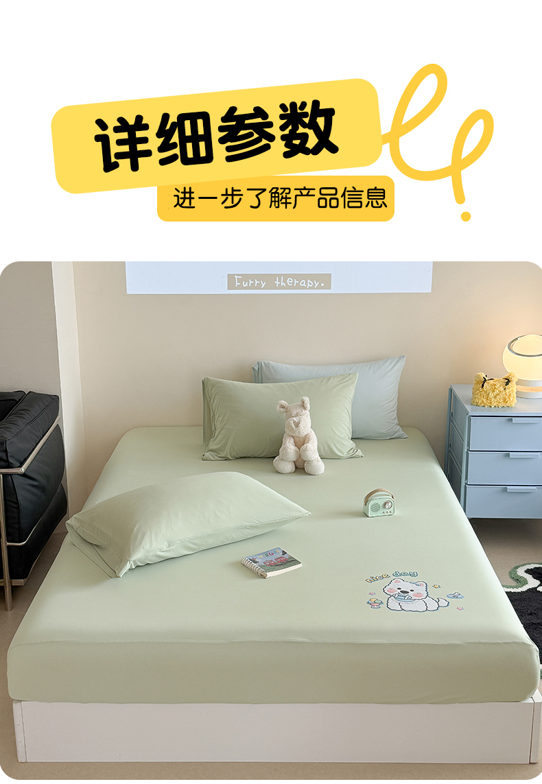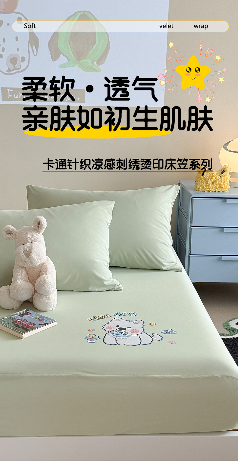 • 91家纺网 家纺一手货源 找家纺 TT.one 塔塔家居 2026新款A类卡通针织凉感刺绣烫印床笠 米多多-薄荷绿