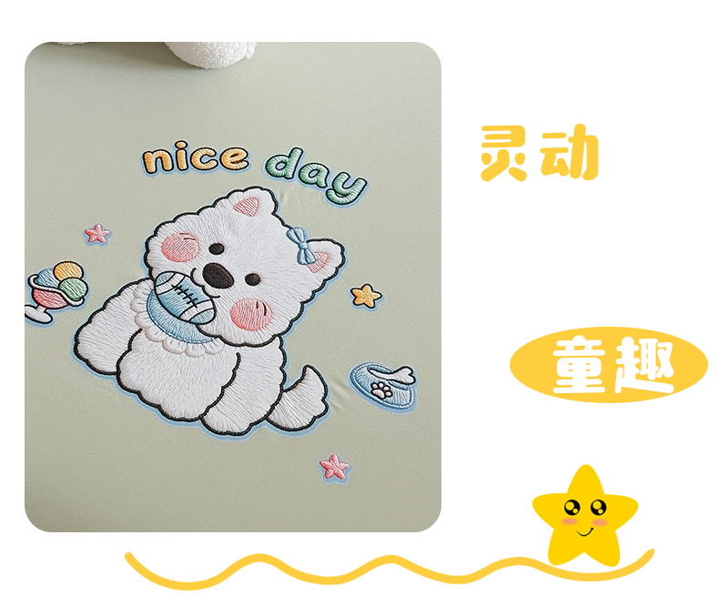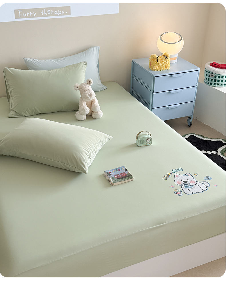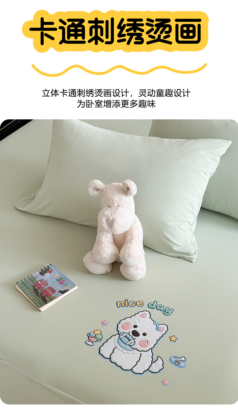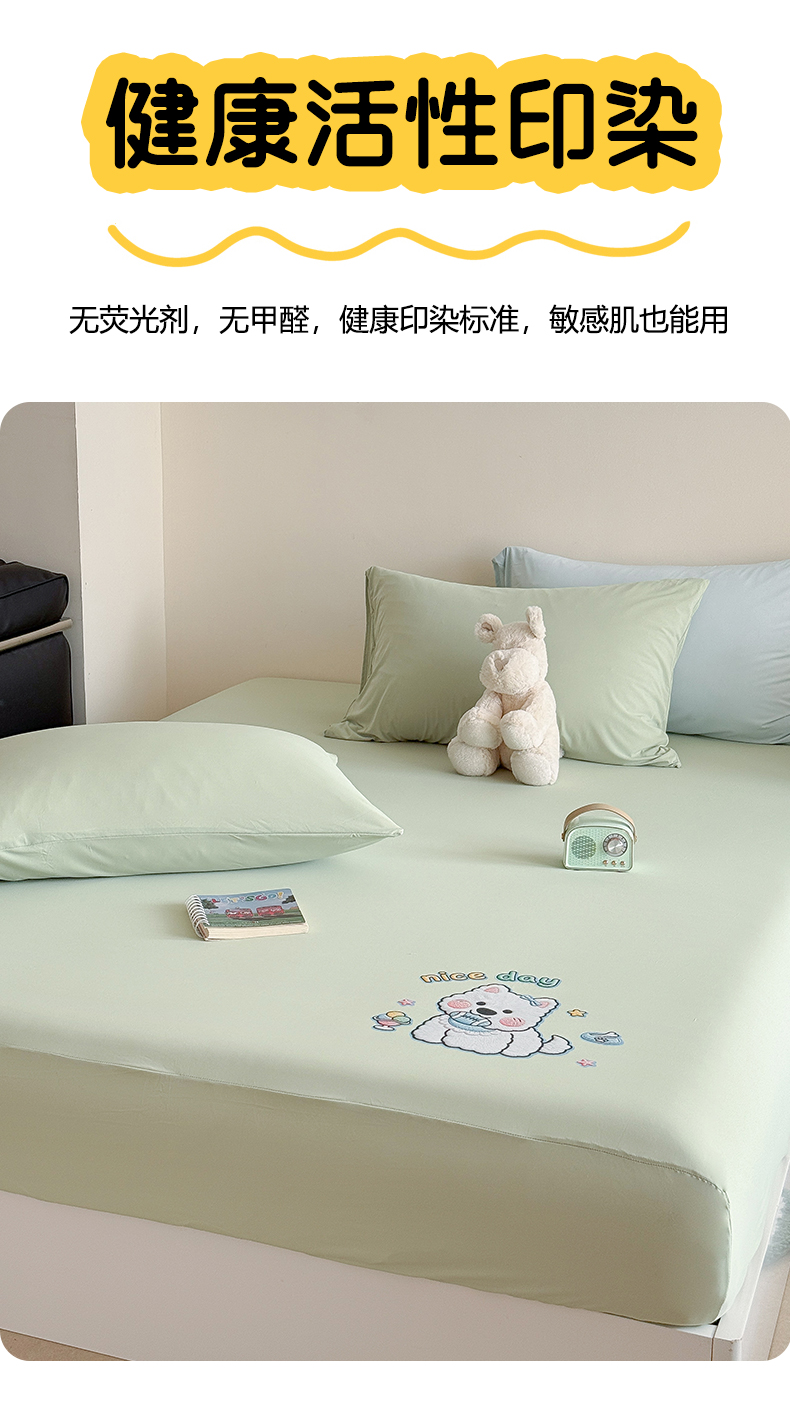 • 91家纺网 家纺一手货源 找家纺 TT.one 塔塔家居 2026新款A类卡通针织凉感刺绣烫印床笠 米多多-薄荷绿