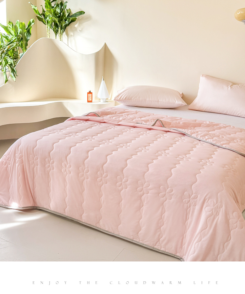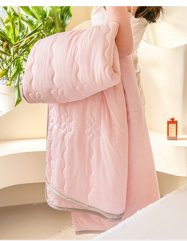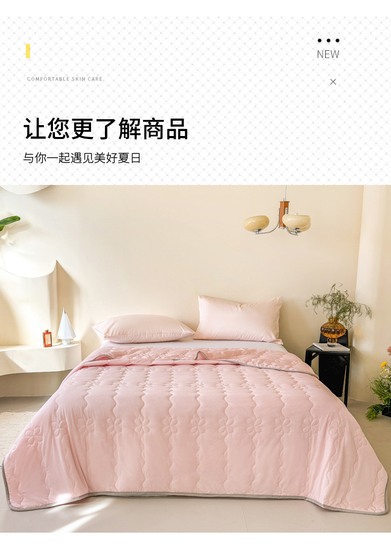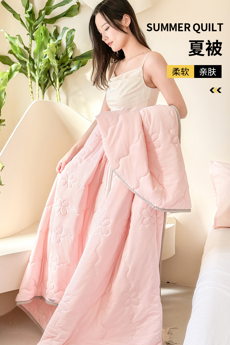 商品名称:丹本家纺 2026新款凉感夏被空调被凉席空调席冰丝席纯色床裙乳胶席三件套四件套菱形格 夏被-粉色
